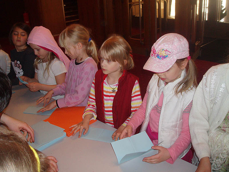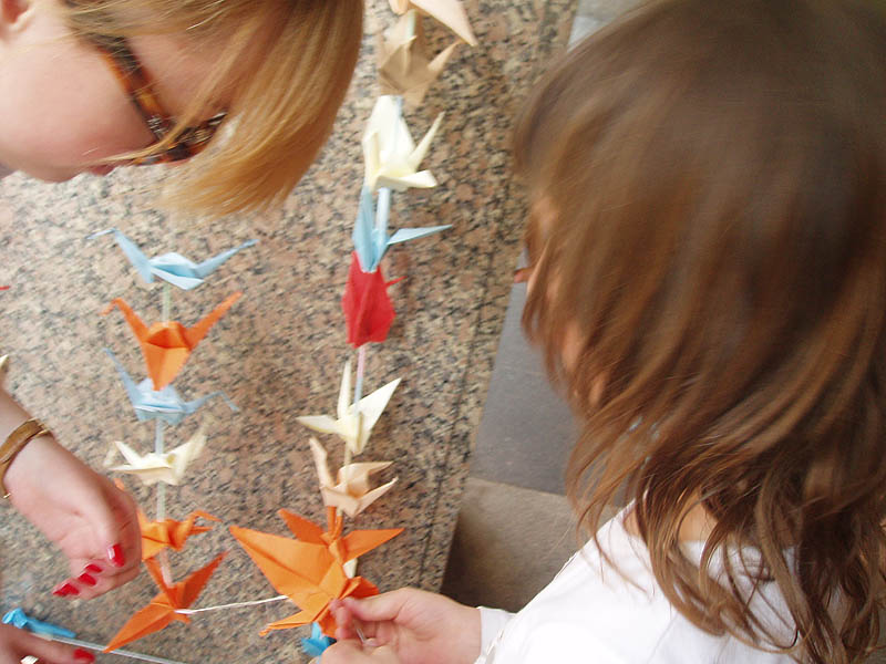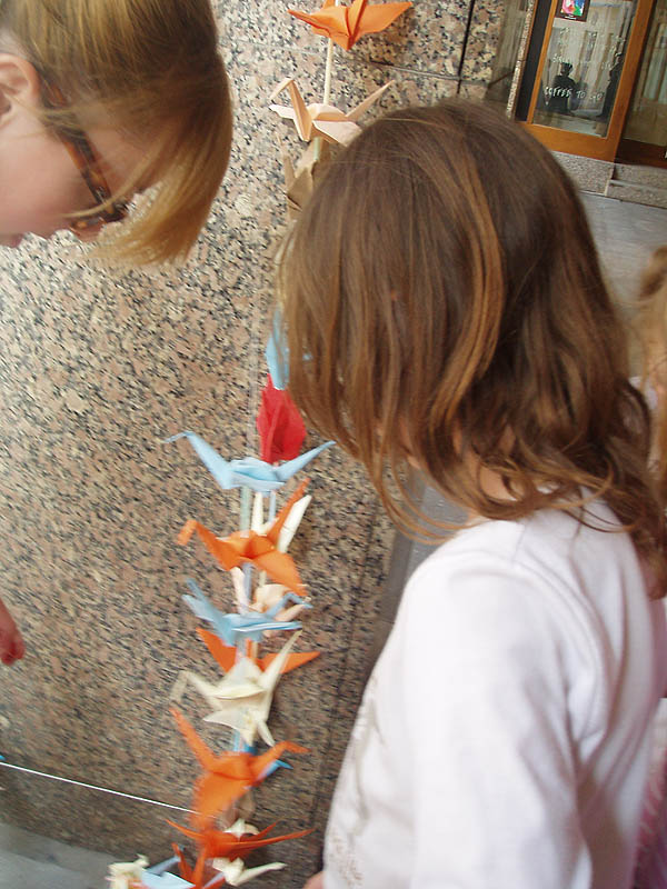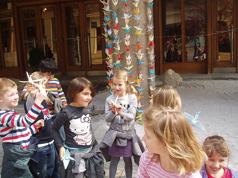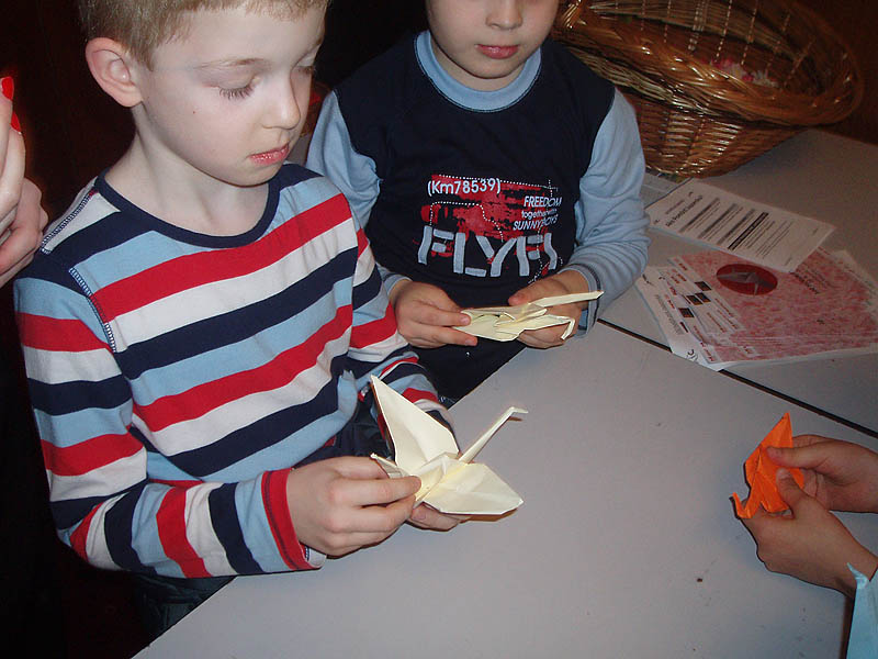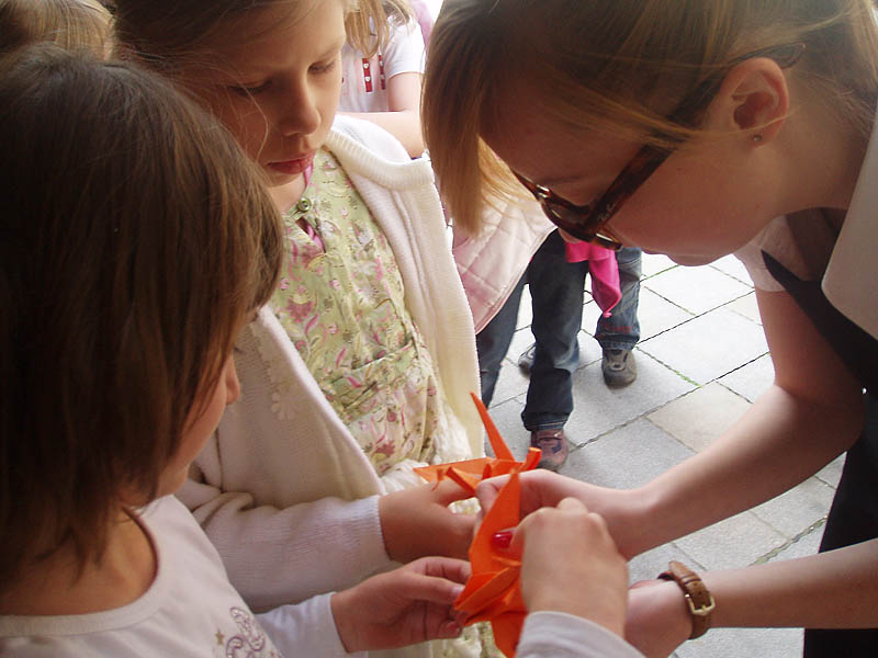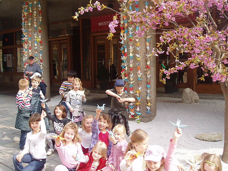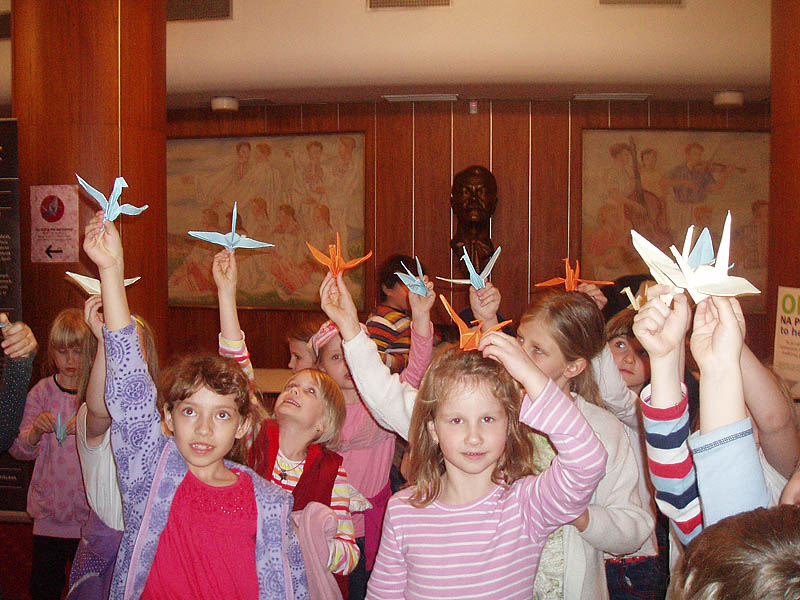 Deti zo školského klubu sa zúčastnili na tomto podujatí a vytvorili papierové origami vtáka – žeriava, ktoré zavesili pred divadlom.
