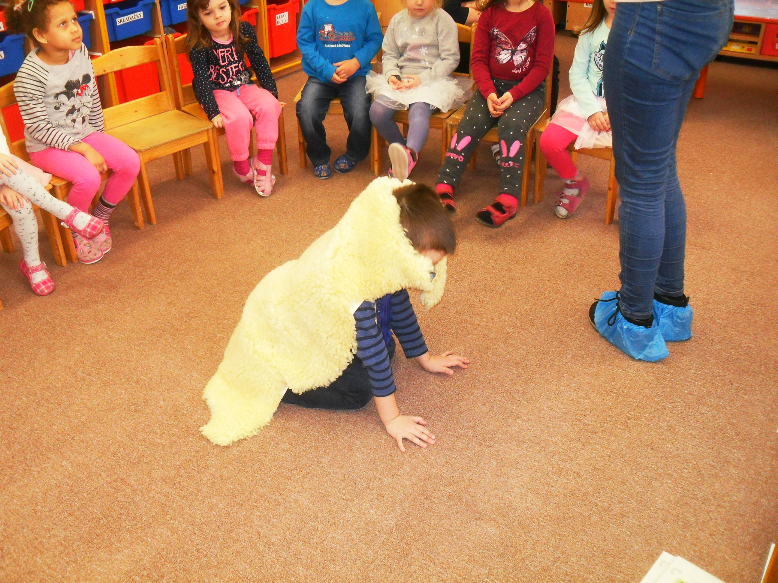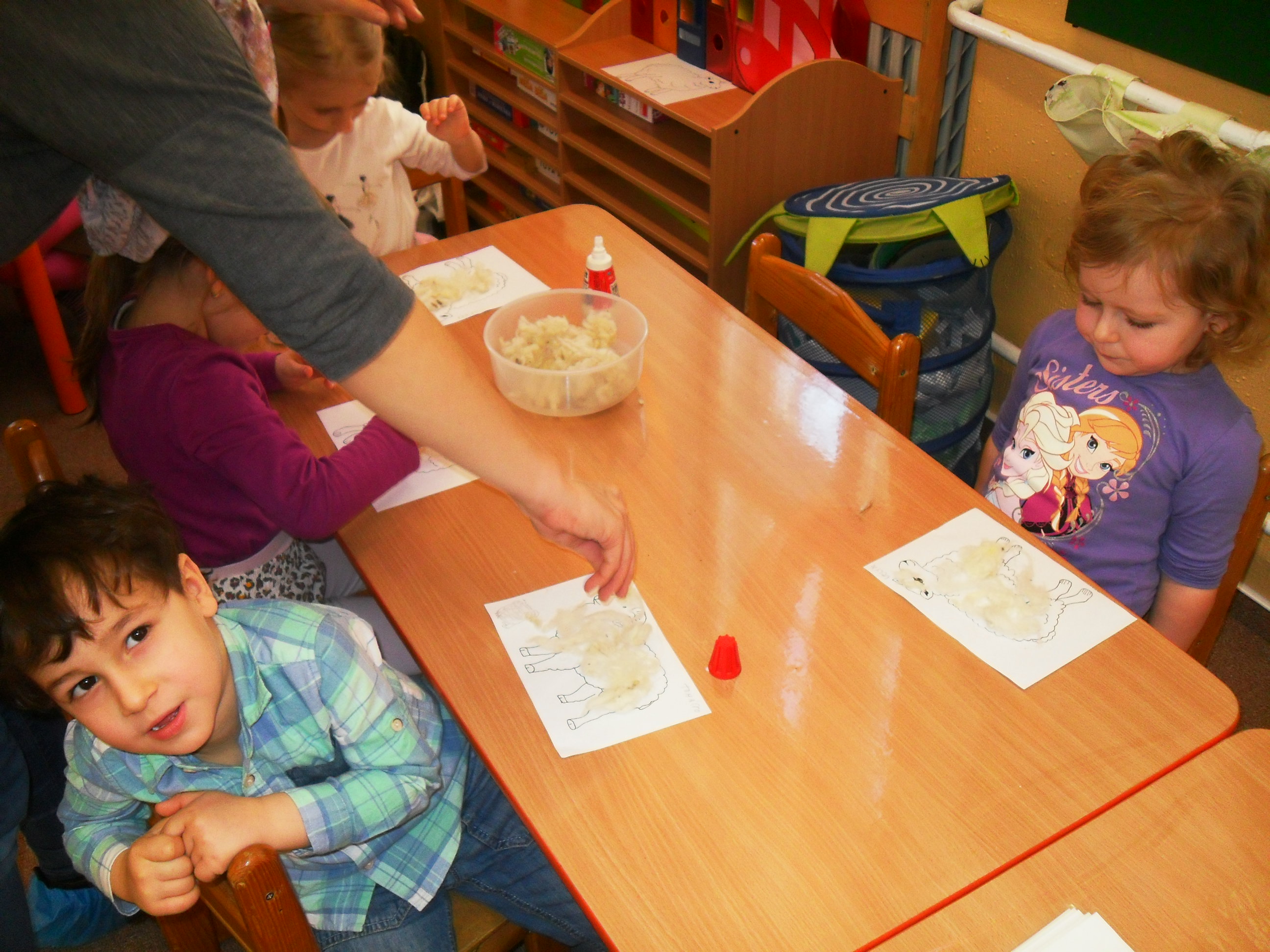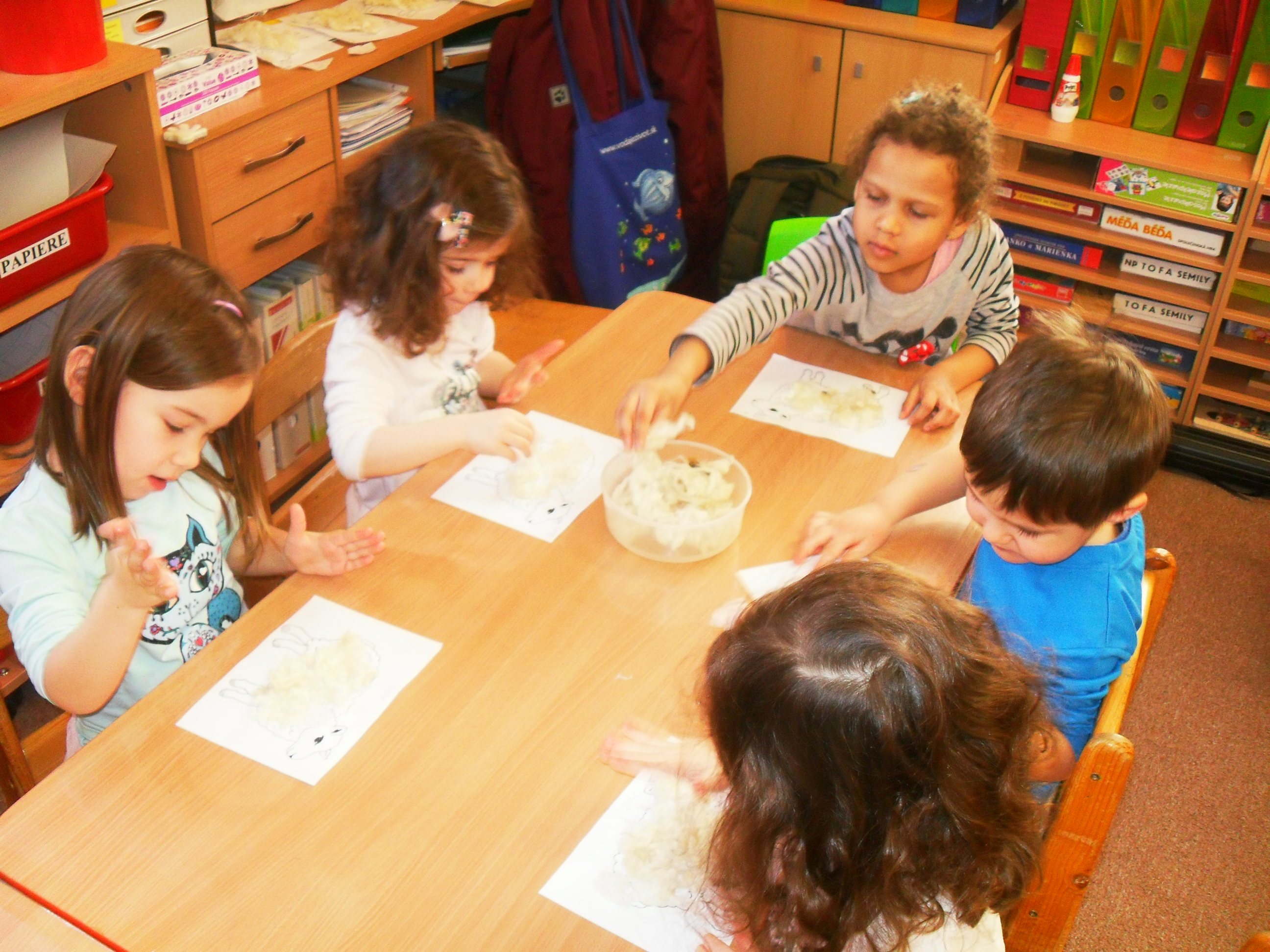 Na sviatky Veľkej noci sme sa pripravovali v MŠ zdobením kraslíc a výrobou rôznych zvieratiek. Prišla nás navštíviť opäť teta z DAPHNE, ktorá nám rozprávala o ovečkách a ovčej vlne. Vyrobili sme si s ňou malé ovečky z pravej ovčej vlny.