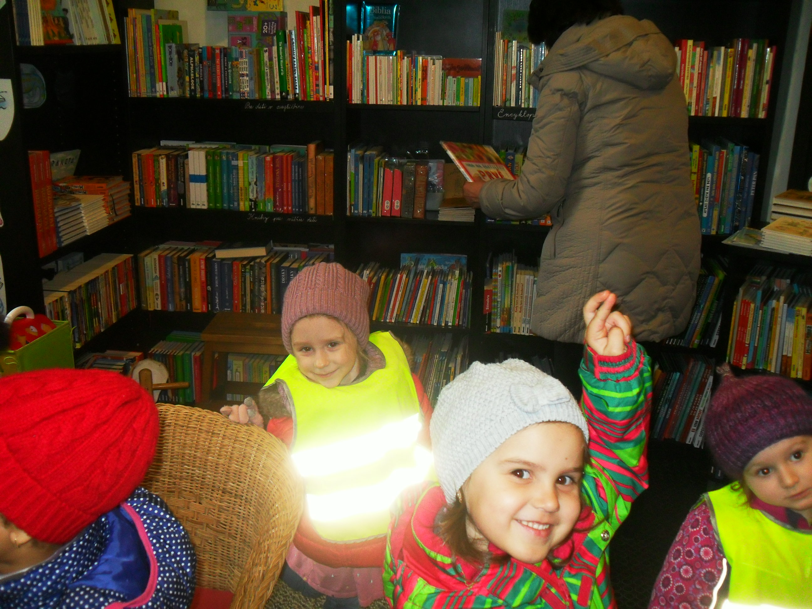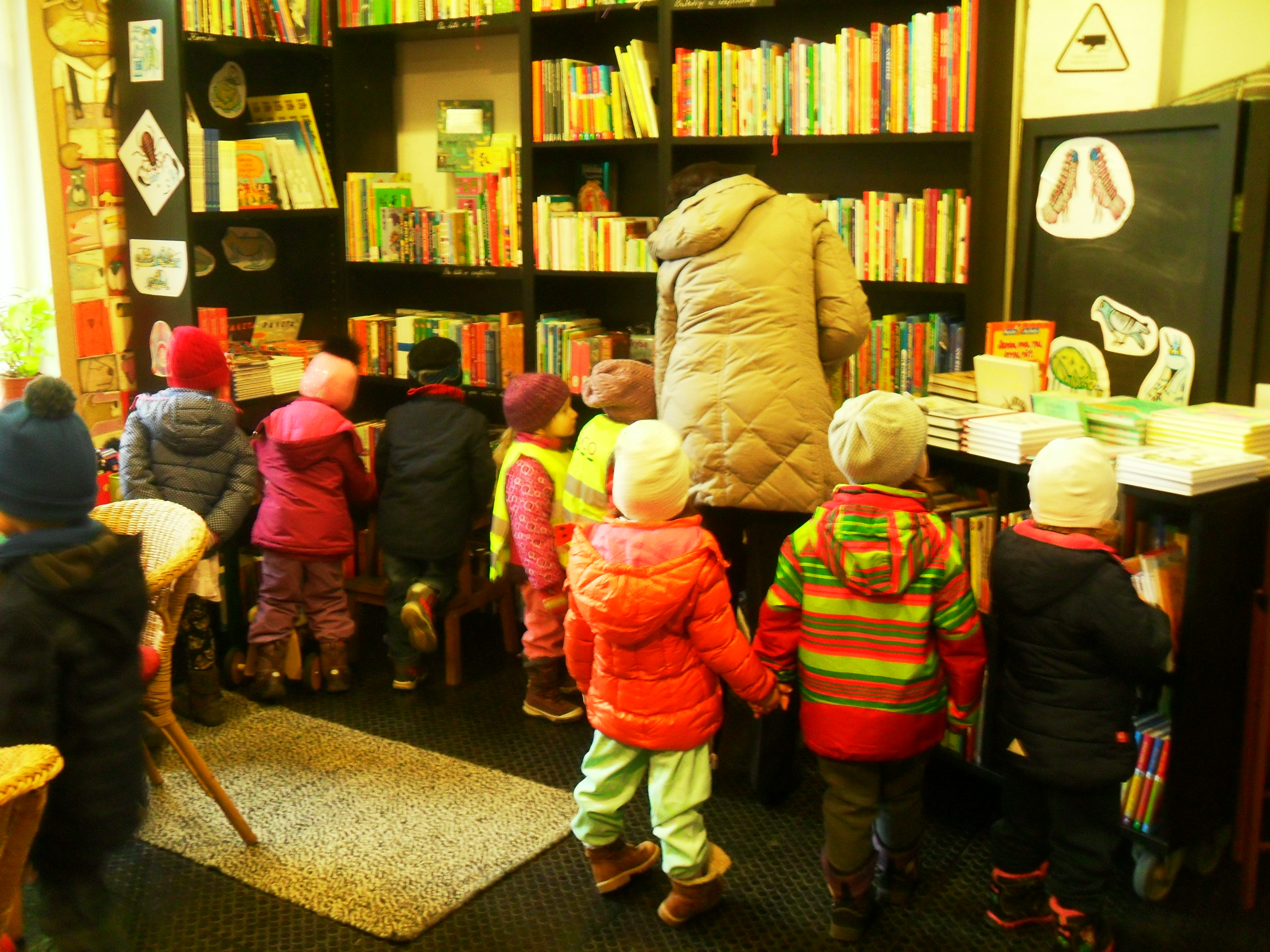 Deti s pani učiteľkami navštívili kníhkupectvo a každá trieda si nejakú knihu kúpila do svojej škôlkárskej knižnice.