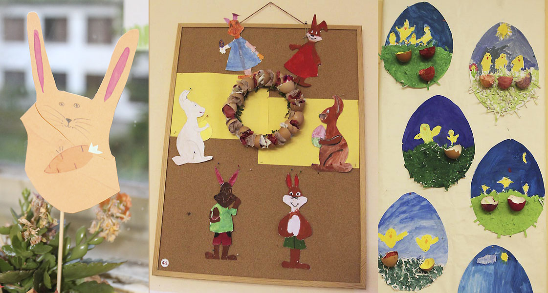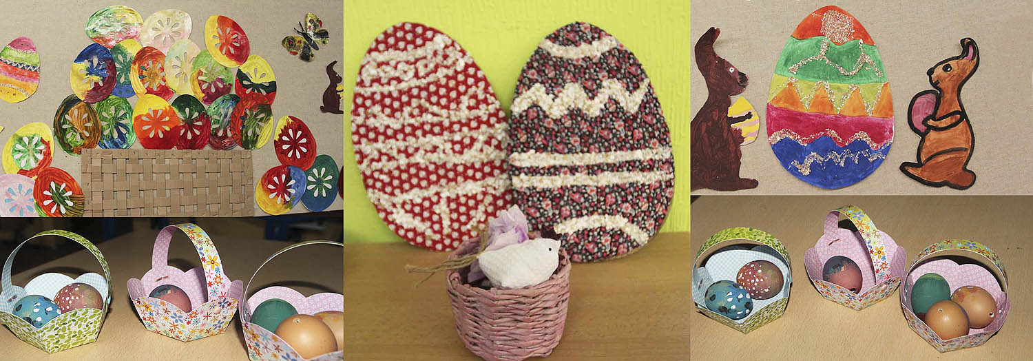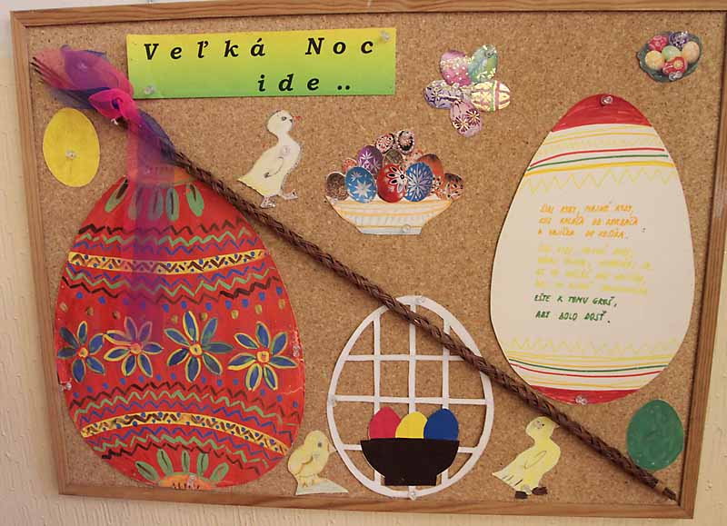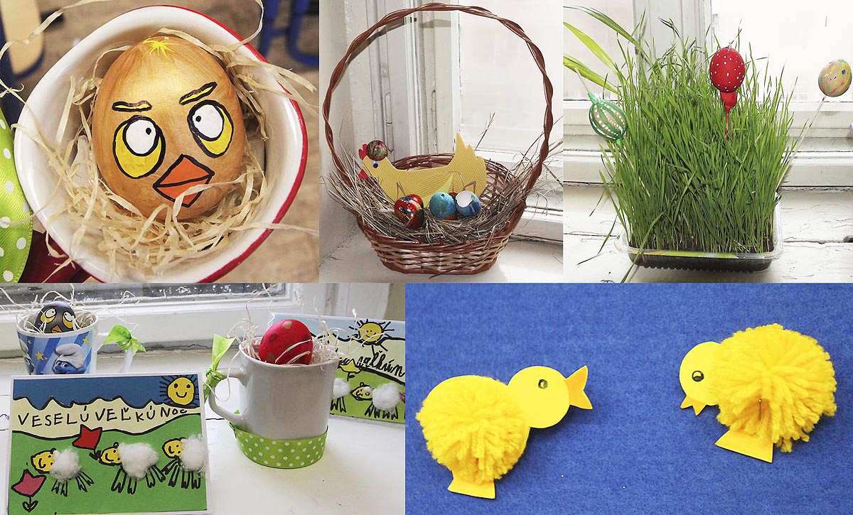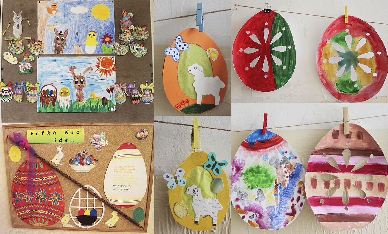 Na výzdobu našich tried sme využili kraslice, prútené košíky, rozkvitnuté prútiky zlatého dažďa i záhradné kvety. Vyrobili sme si kuriatka, zajačikov. Deti mali zo svojich výtvorov veľkú radosť.