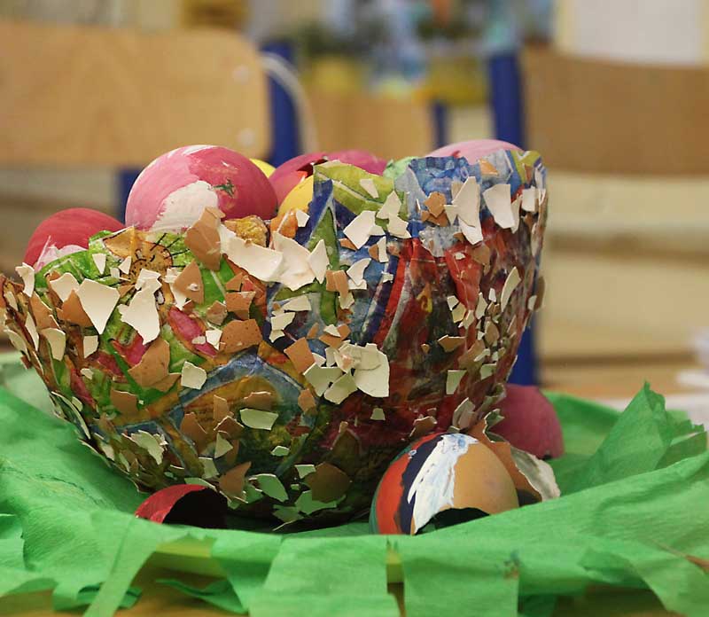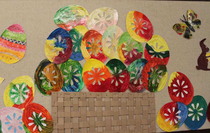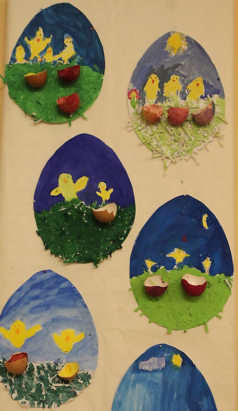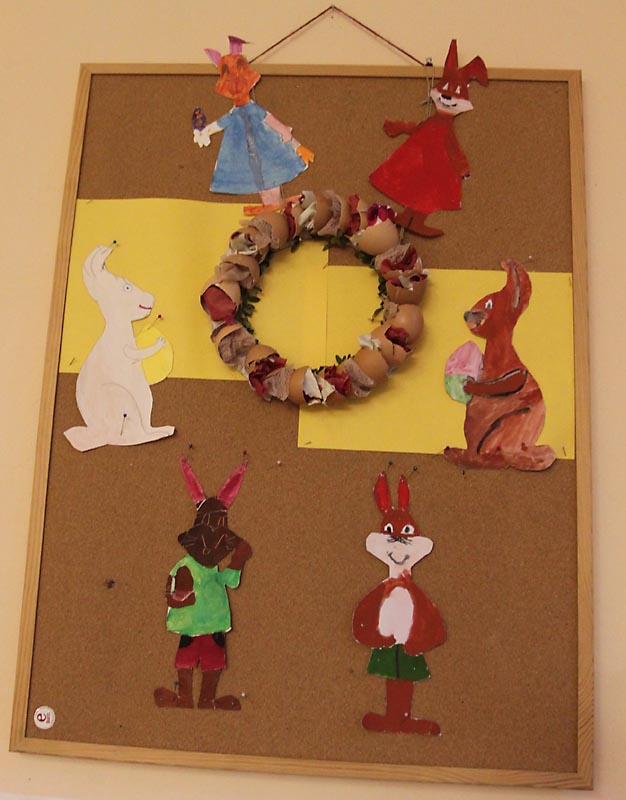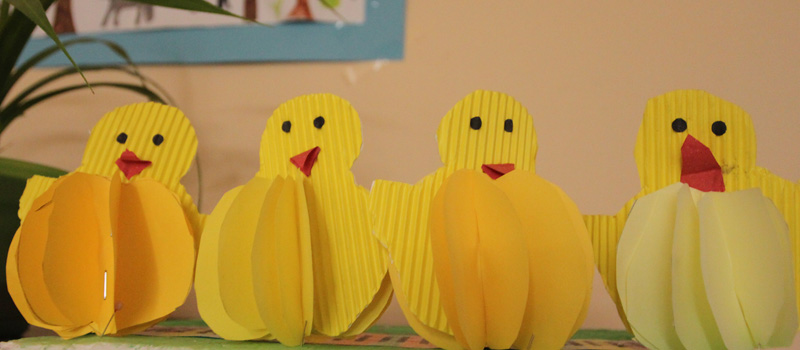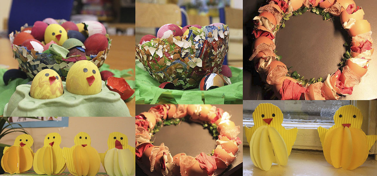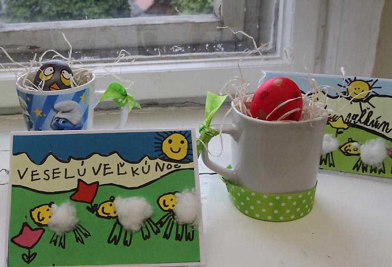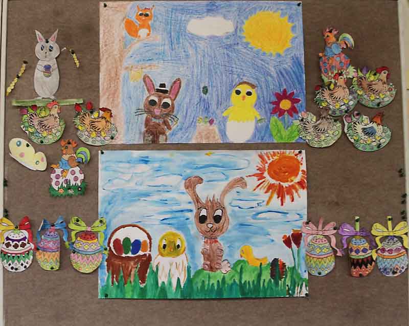 Na výzdobu našich tried sme využili kraslice, prútené košíky, rozkvitnuté prútiky zlatého dažďa i záhradné kvety. Vyrobili sme si kuriatka, zajačikov. Deti mali zo svojich výtvorov veľkú radosť.