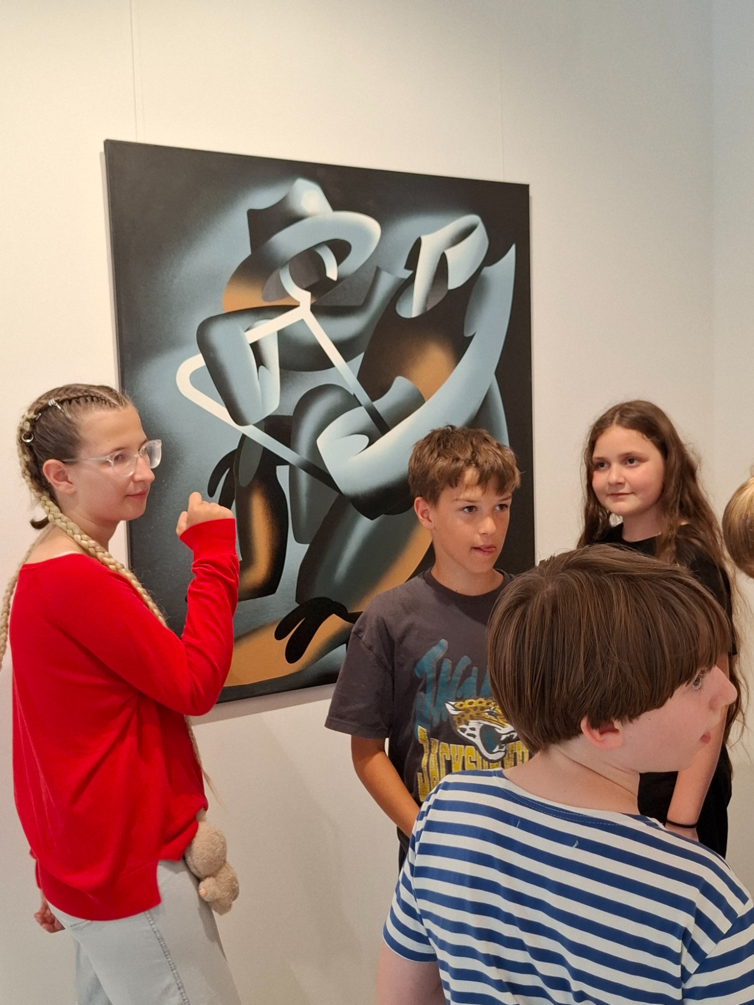 Slnečné dni využili štvrtáci v ŠKD na prechádzku do galérie ČIN ČIN na výstavu BAnda 2025. Výstava nadviazala na predchádzajúcu výstavu BAnda 2015, aby ukázala, akým umeleckým smerom sa autori vydali po desiatich rokoch od poslednej spoločnej výstavy. Žiaci tak mali možnosť pod vedením odborného oka majiteľky galérie porovnať, ako sa zmenili prístupy, štýly, tematické okruhy umelcov, či aké vzájomné vzťahy vznikli medzi dielami.