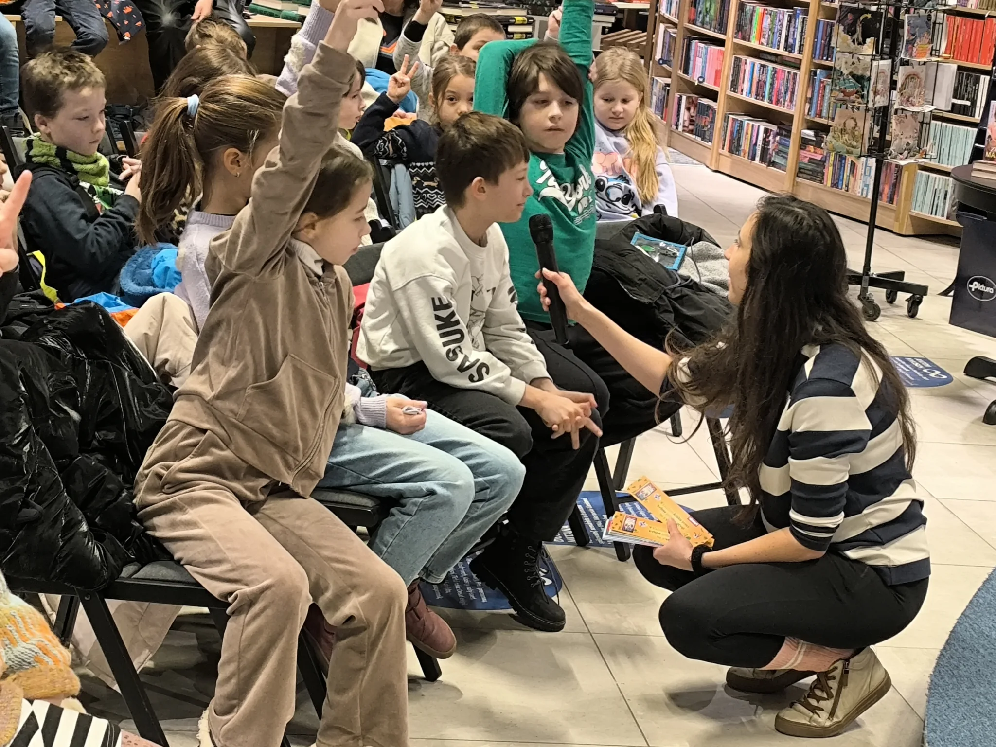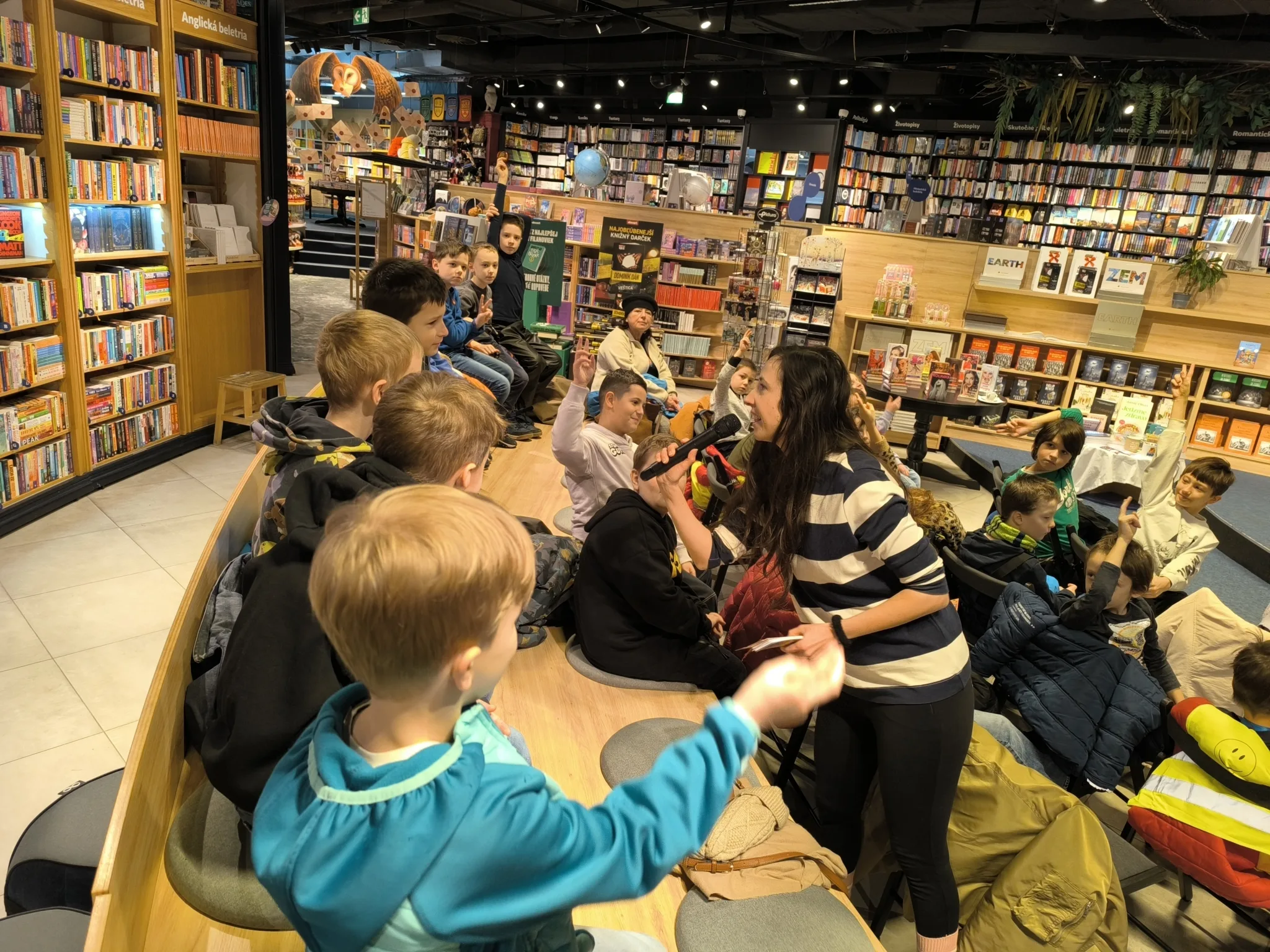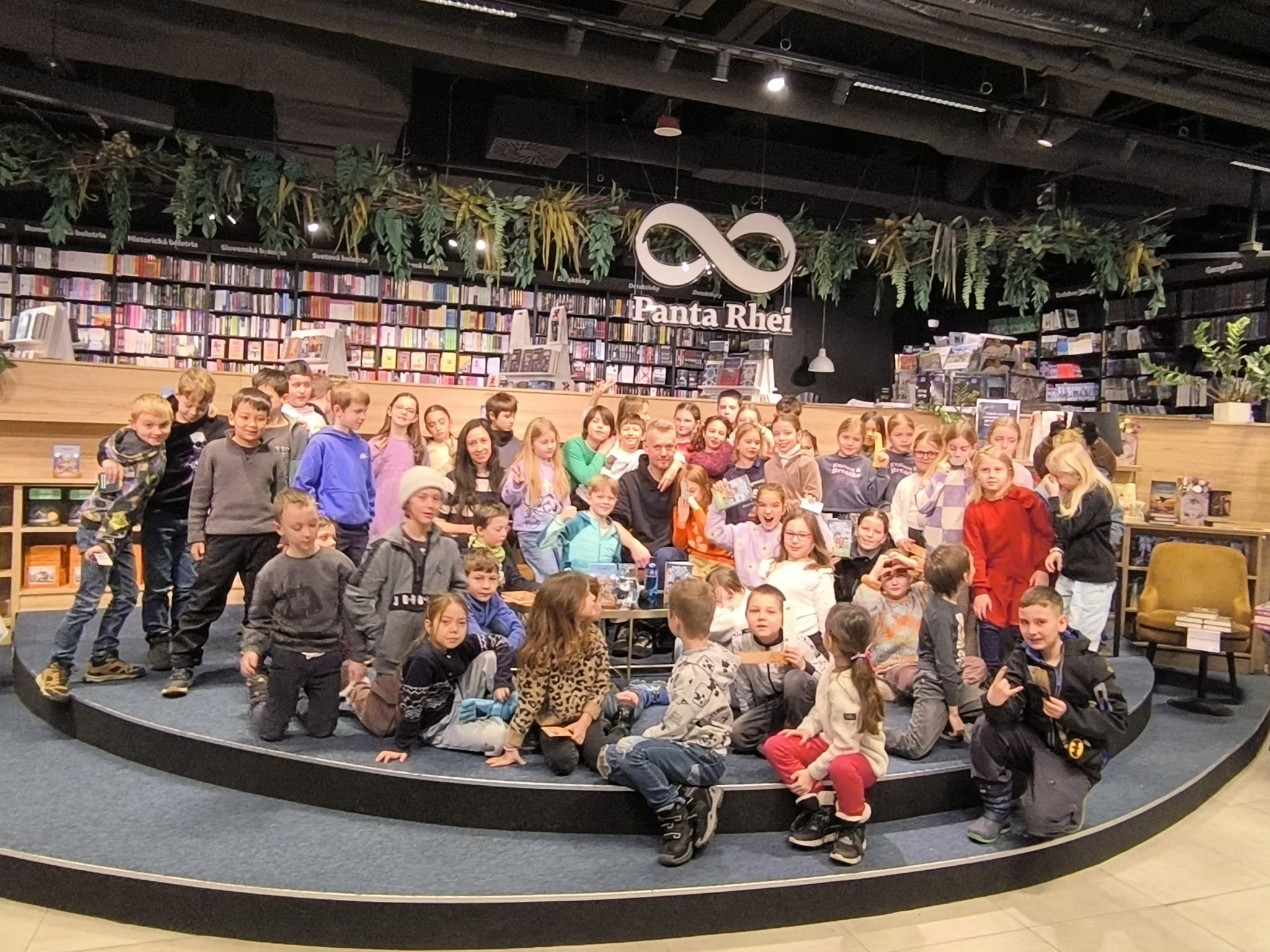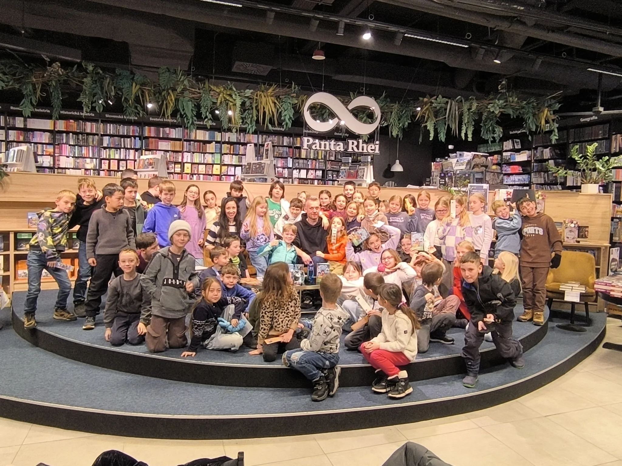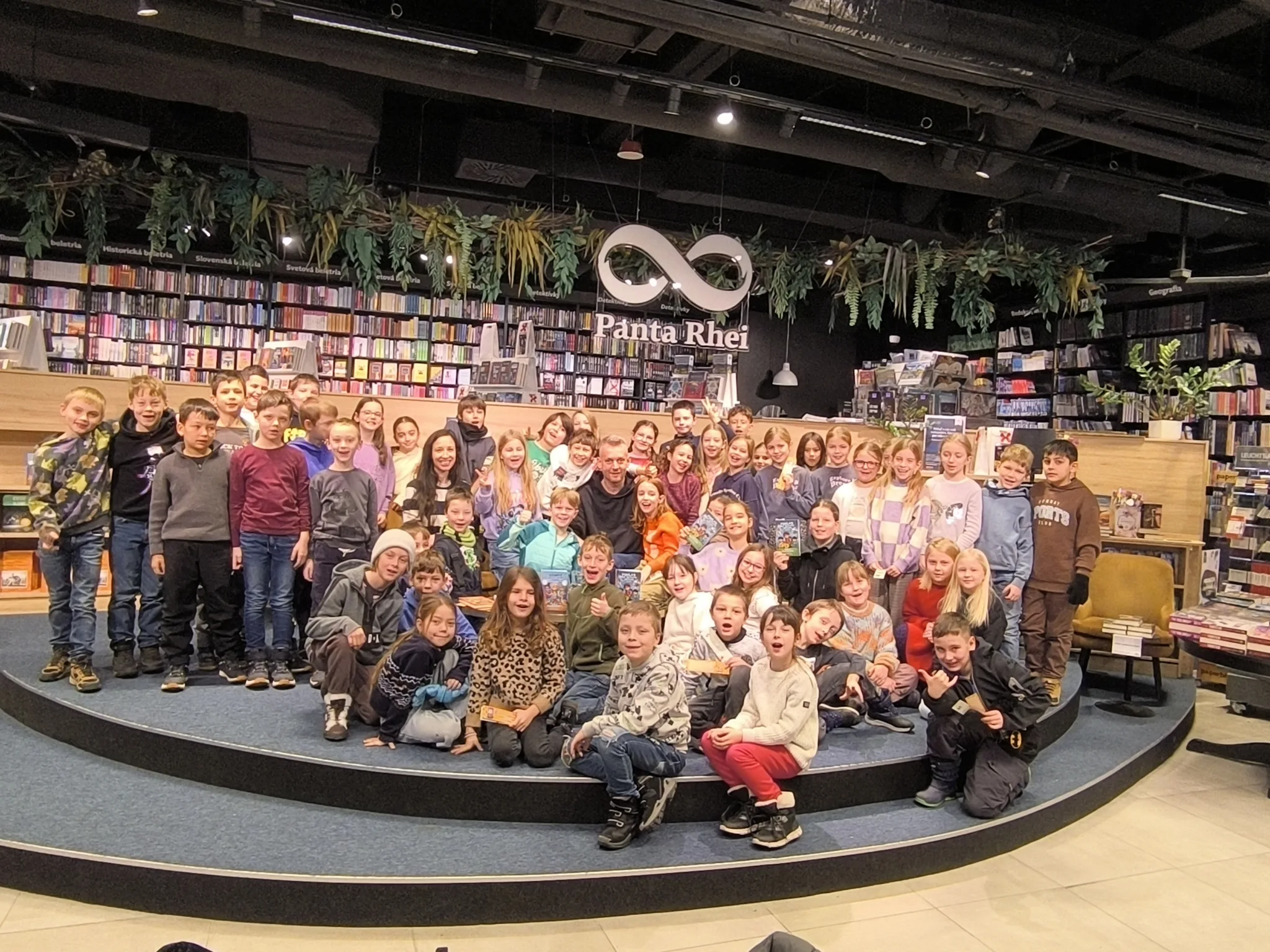 V stredu, 21.1.2026, sa tretiaci a druháci zúčastnili v Panta Rhei v Auparku na besede s pánom vychovávateľom. Besedu moderovala Veronika Sebechlebská a dávala mu otázky o tom, ako vznikal príbeh a kde čerpal inšpiráciu.