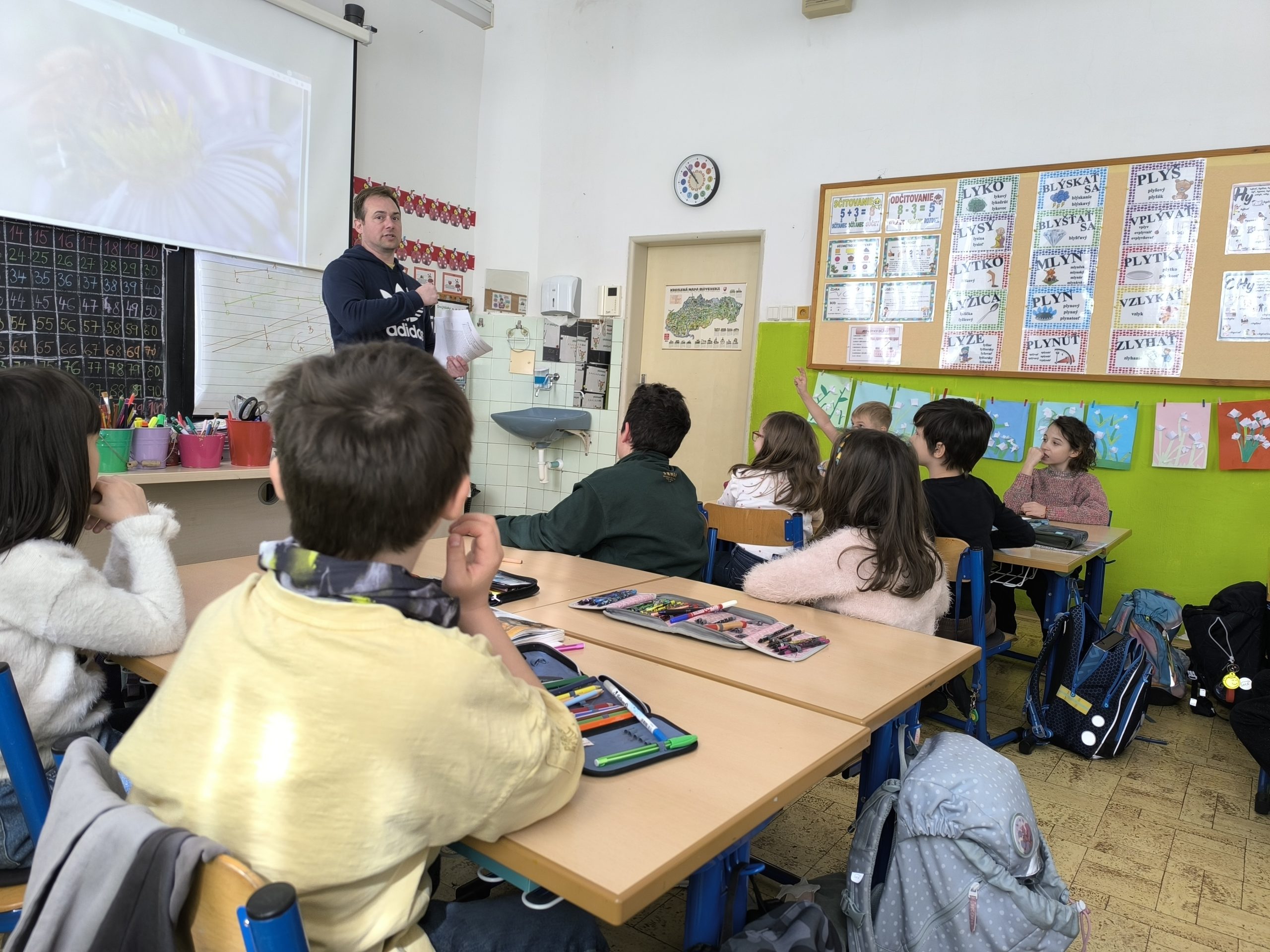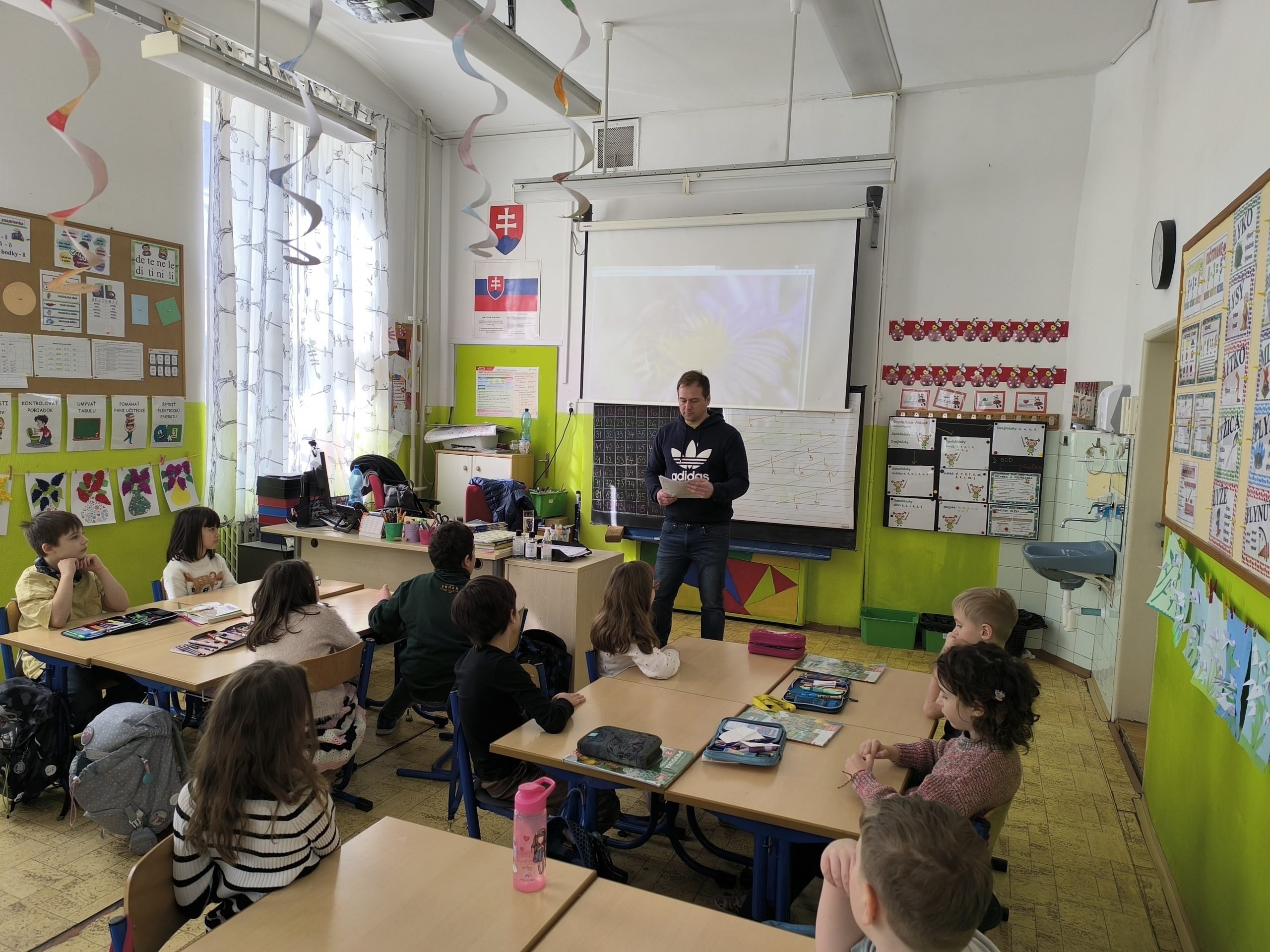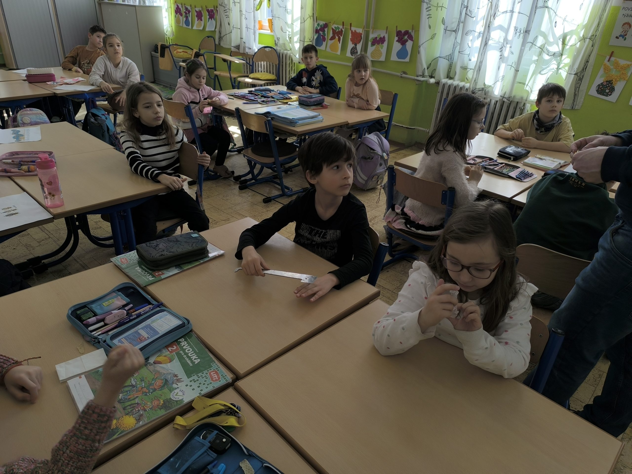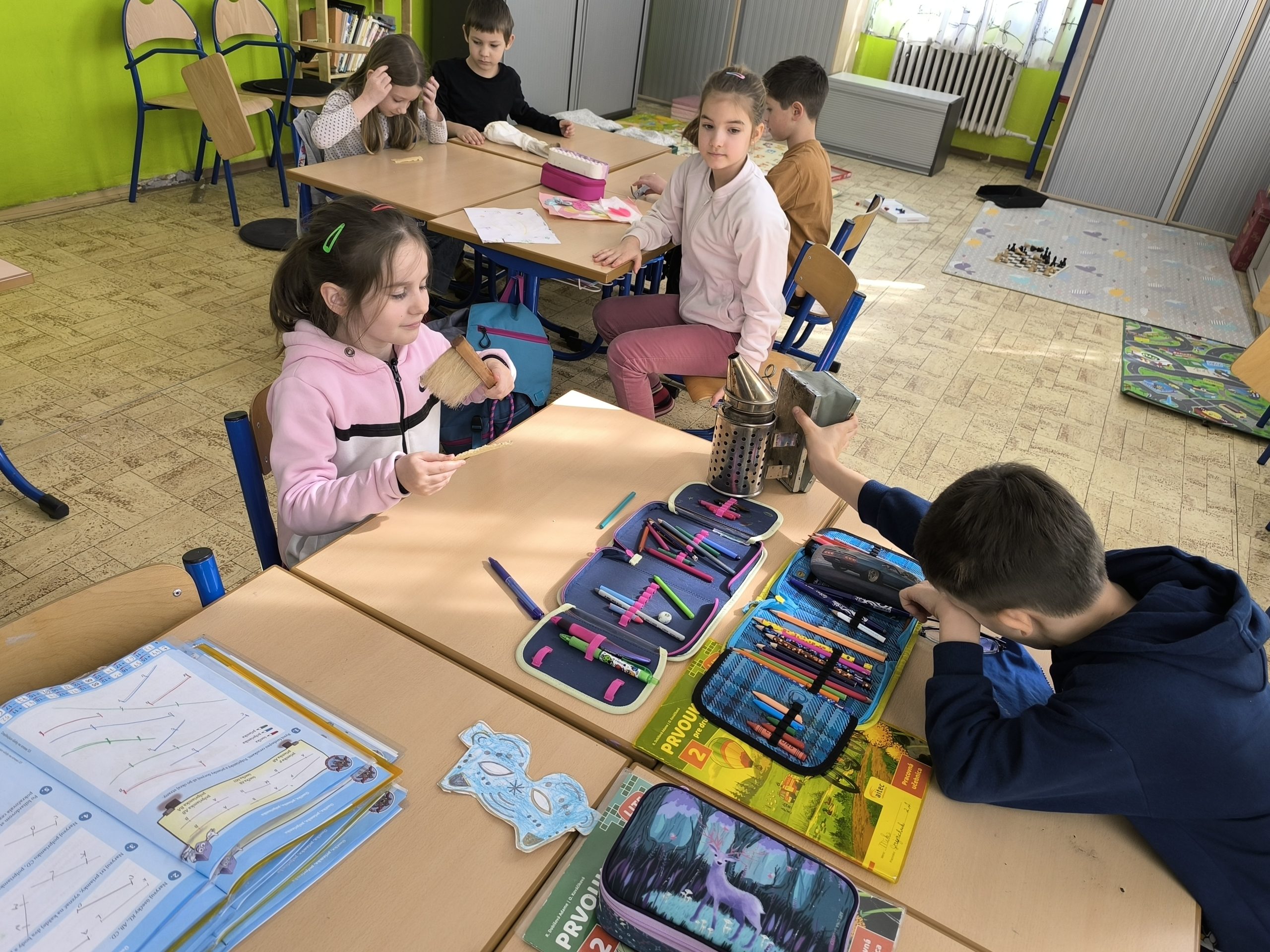 Druháci na hodine prvouky preberali učivo o včelách a poprosili otecka jedného spolužiaka, ktorý je včelár, aby im prišiel porozprávať o živote včielok v úli. Pán Horák, ktorý sa včelárstvu venuje popri svojom povolaní, deťom priniesol ukázať pomôcky, ktoré pri chove včielok používa. Porozprával im o obyvateľoch úľa a ich úlohách, rozmnožovaní včielok i ich chorobách, o produktoch, ktoré od nich získavame.