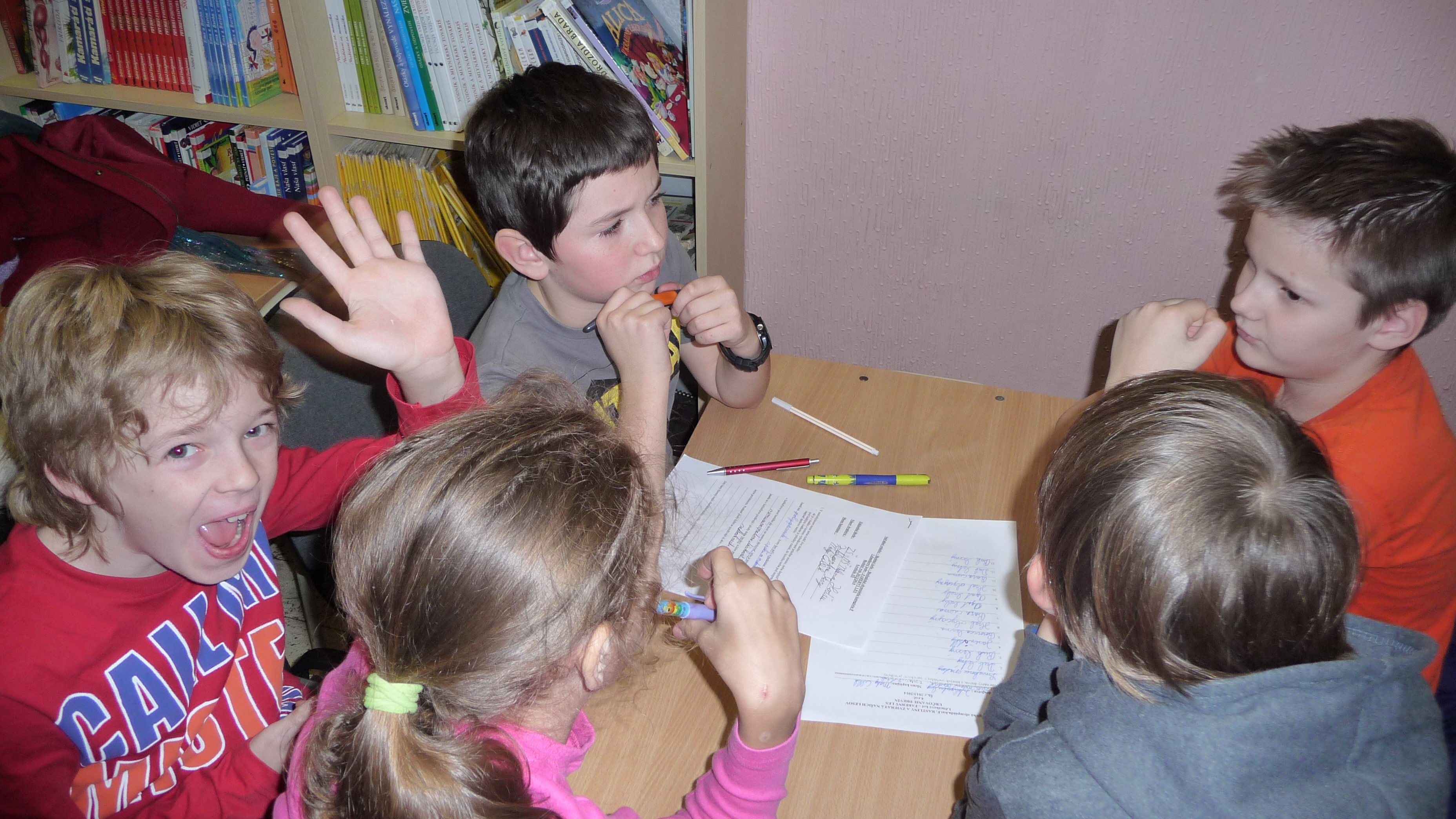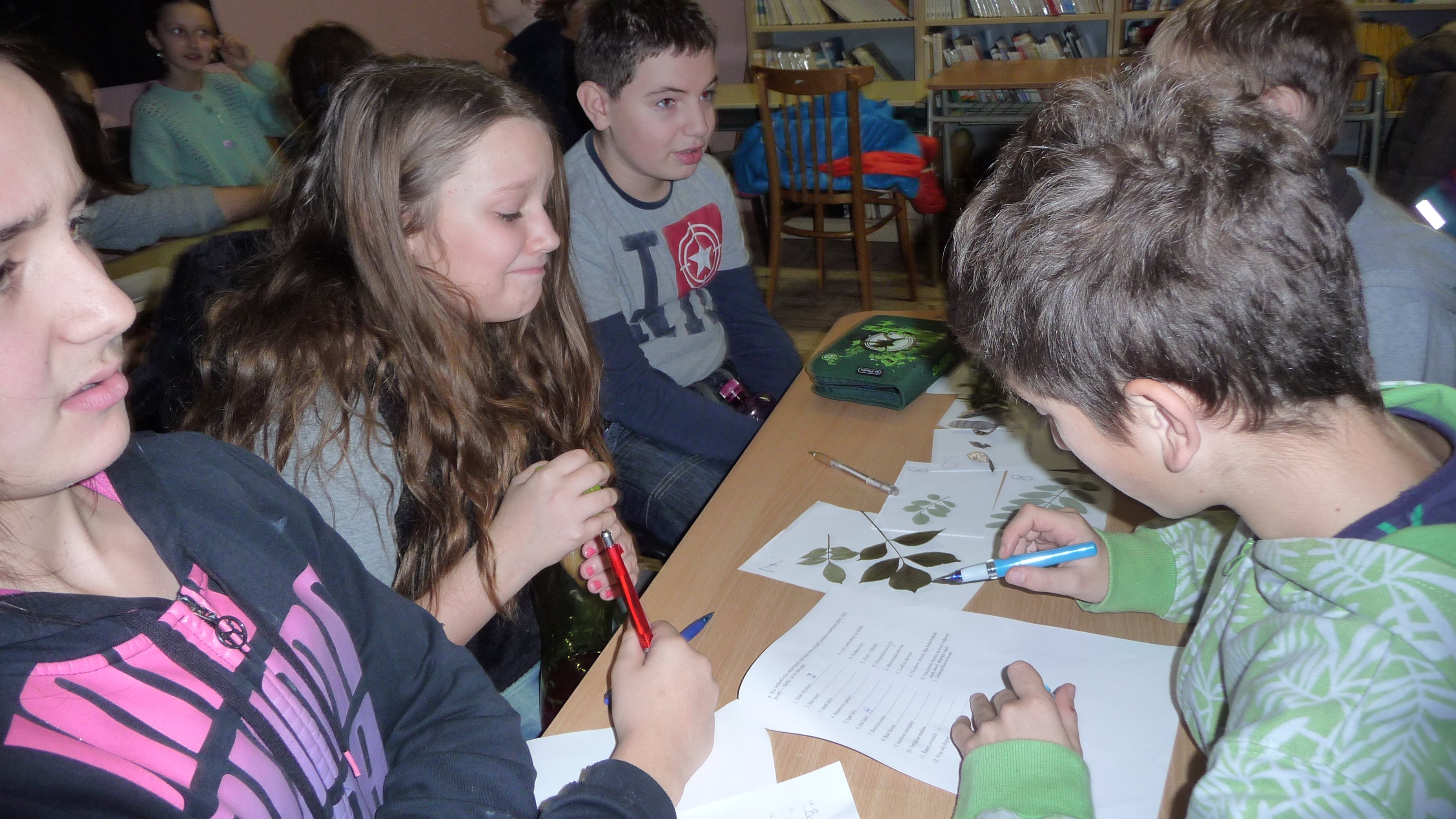 Žiaci štvrtých (2 družstvá) a piatych (3 družstvá) ročníkov sa dnes zúčastnili prvého čiastkového kola biologickej olympiády – farebný les.