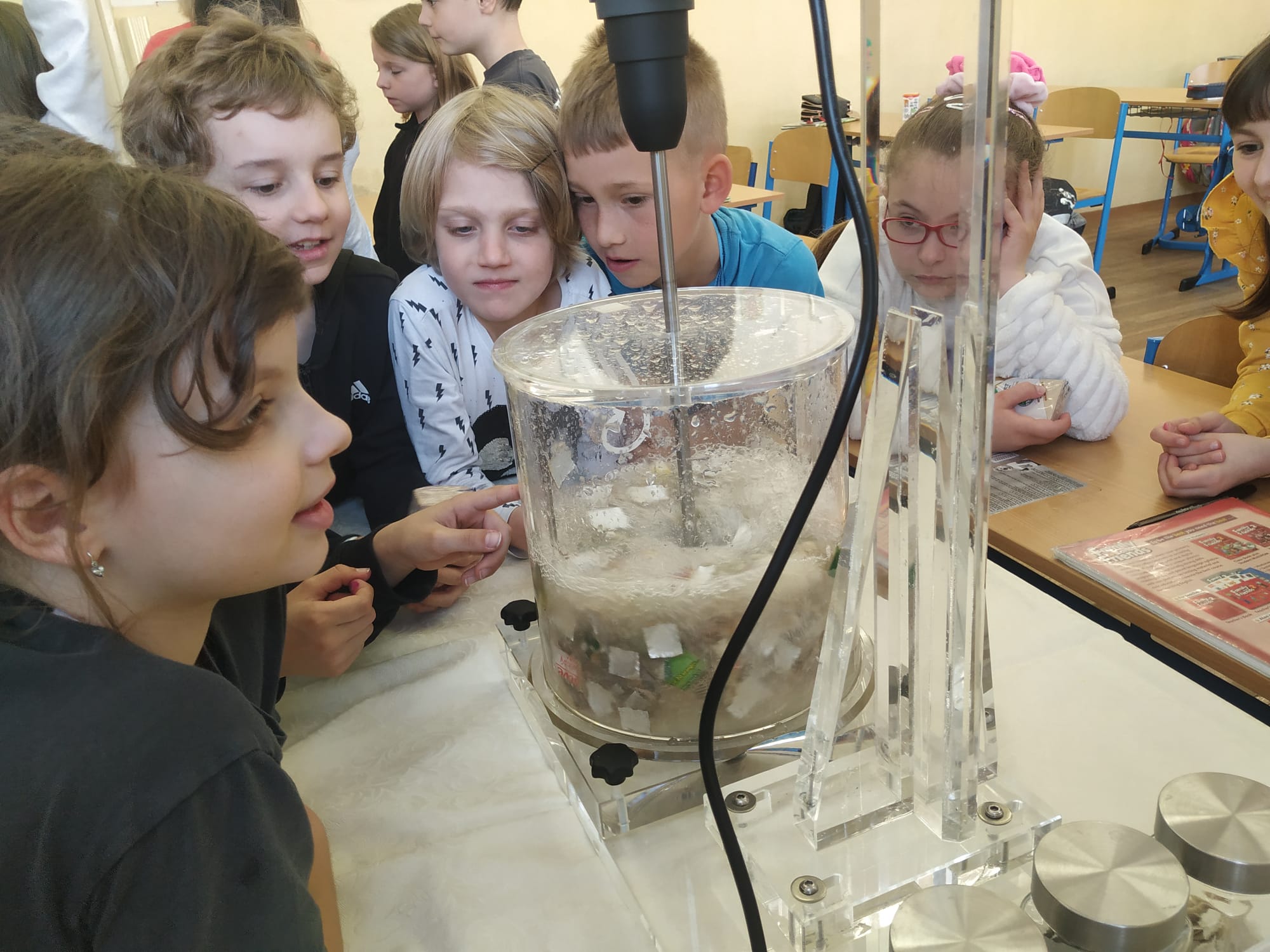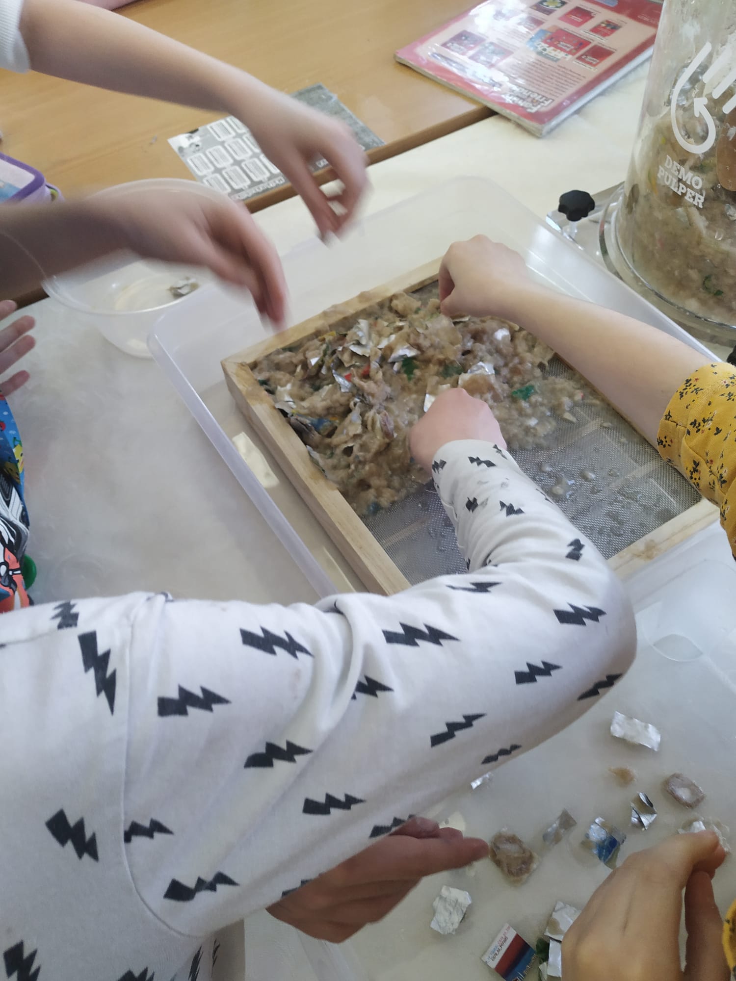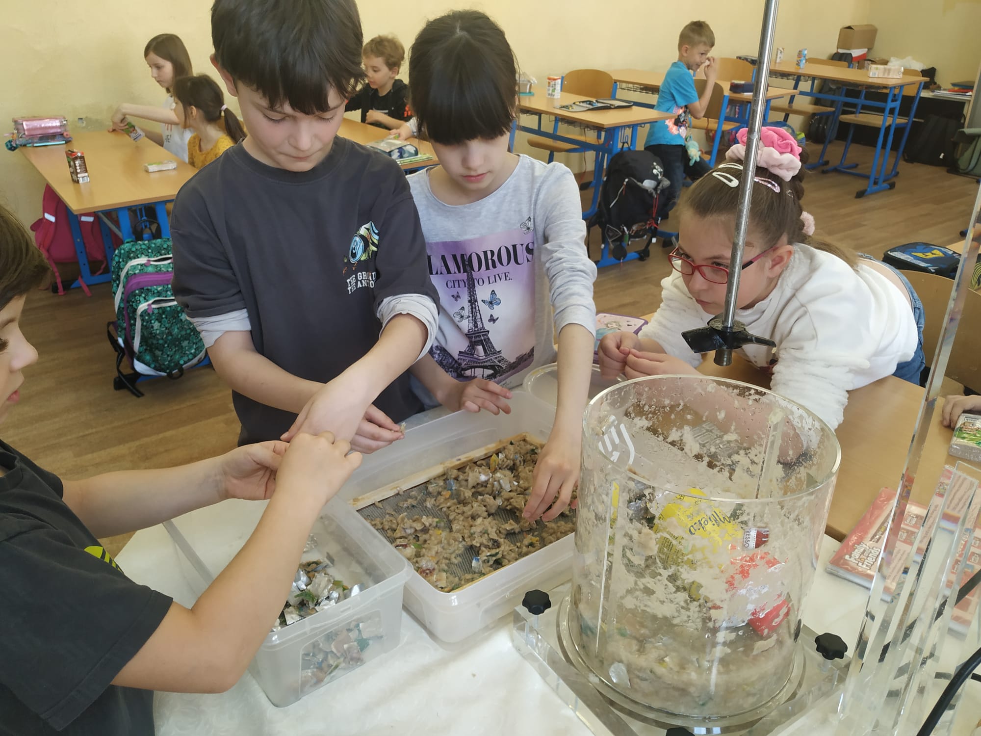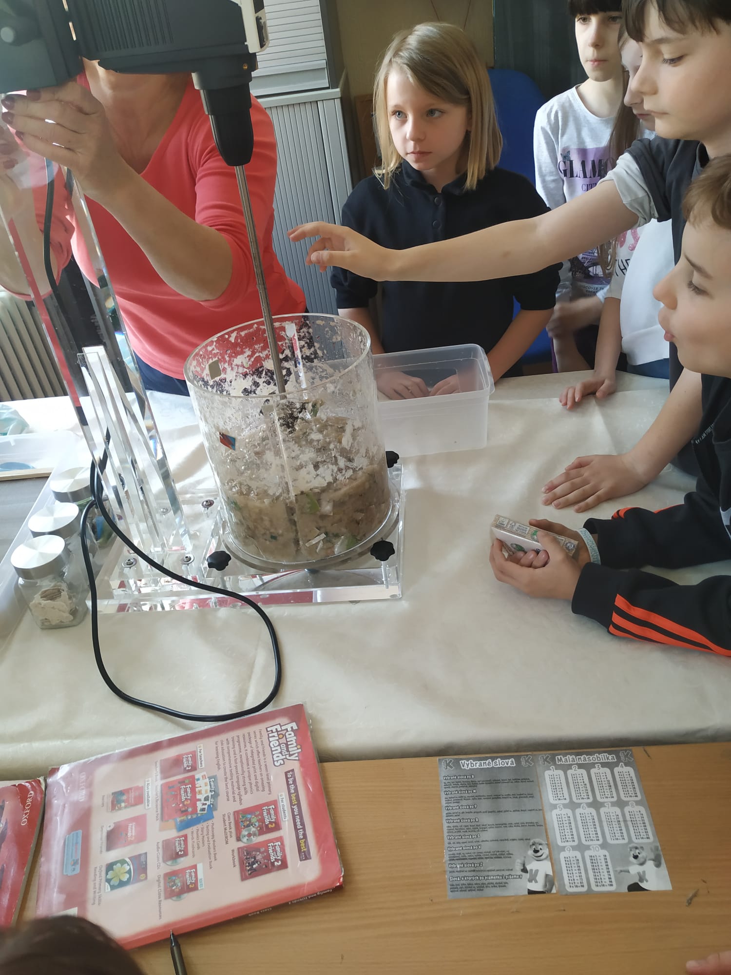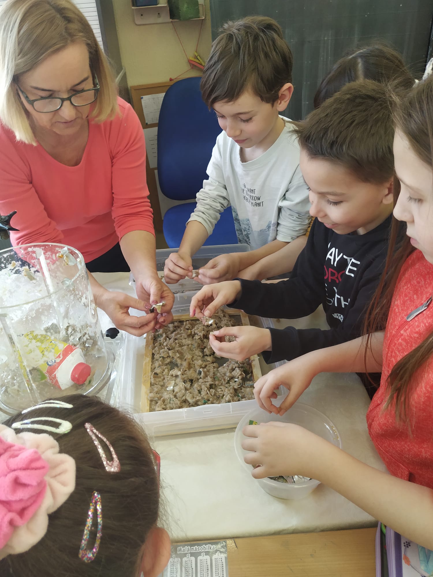 Dňa 25.4. sa v triede 3.B konal workshop s tetrapakmi. Pani Ivona Urbanová z firmy Circular Shields do triedy priniesla mnoho pomôcok, prostredníctvom ktorých nám ukázala, ako sa recyklujú tetrapaky. Deti mali za úlohu priniesť zopár obalov z domu. Rozstrihali ich a nechali v špeciálnom zariadení miešať asi pol hodiny. Za tento čas sa kúsky tetrapaku rozložili na tri časti a úlohou detí ich bolo roztriediť. Jednu časť tvoril papier, ktorý vyberali na špeciálne sitko a po vyschnutí vznikol nový papier. Popri pozorovaní tohto pokusu pani Urbanová deťom ukázala aj konkrétne výrobky, ktoré ich firma z tetrapakov vyrába (vreckovky, papierové utierky, toaletný papier). Na pamiatku a za pomoc dostalo každé dieťa jedny vreckovky. Po tomto workshope budú naši tretiaci motivovaní recyklovať tetrapaky, čím určite pomôžu našej planéte s odpadom.