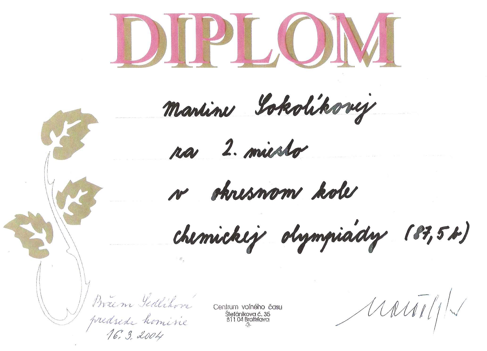 Úvod / Novinky / Úspechy · Nezaradené / Diplomy