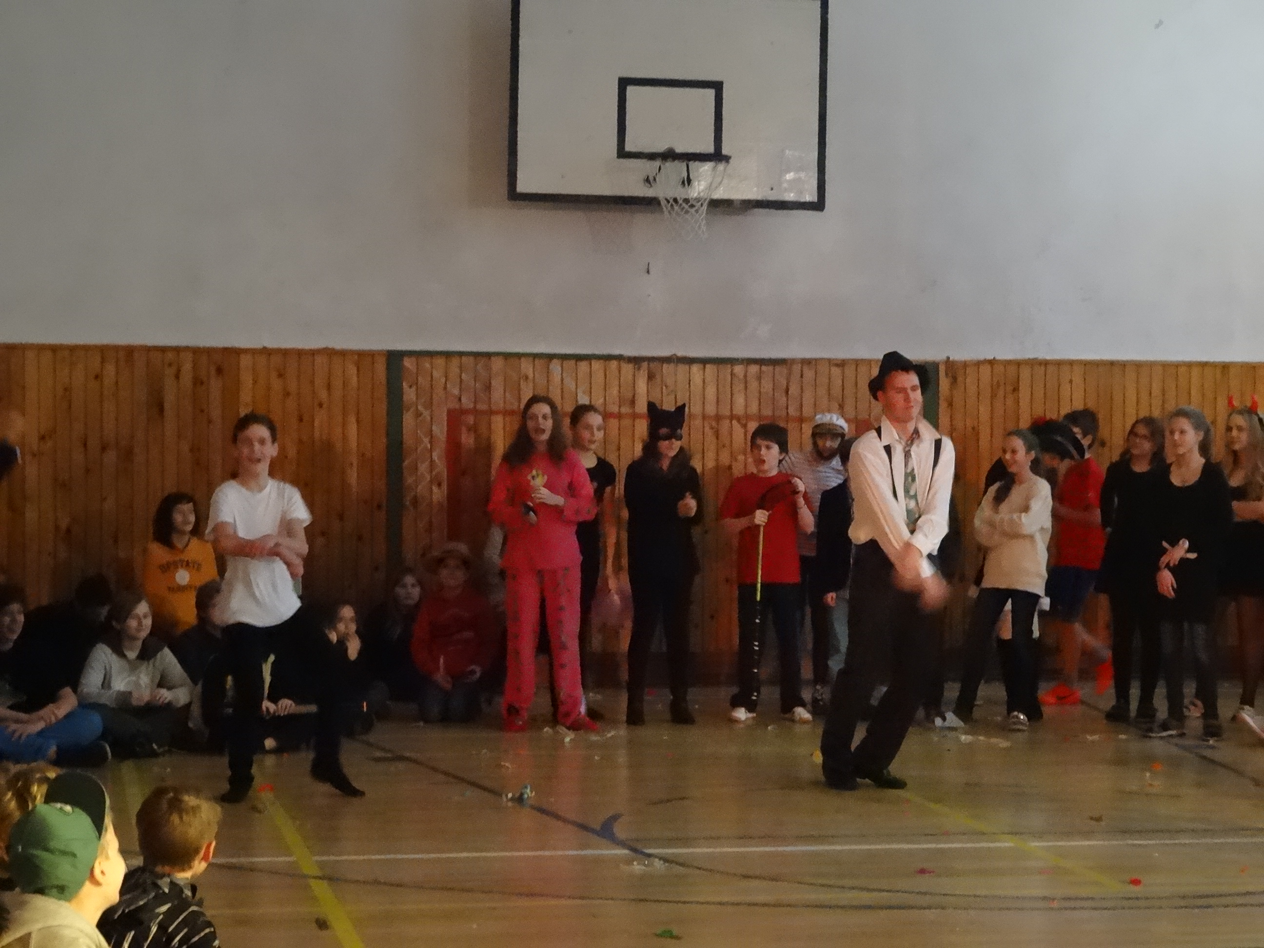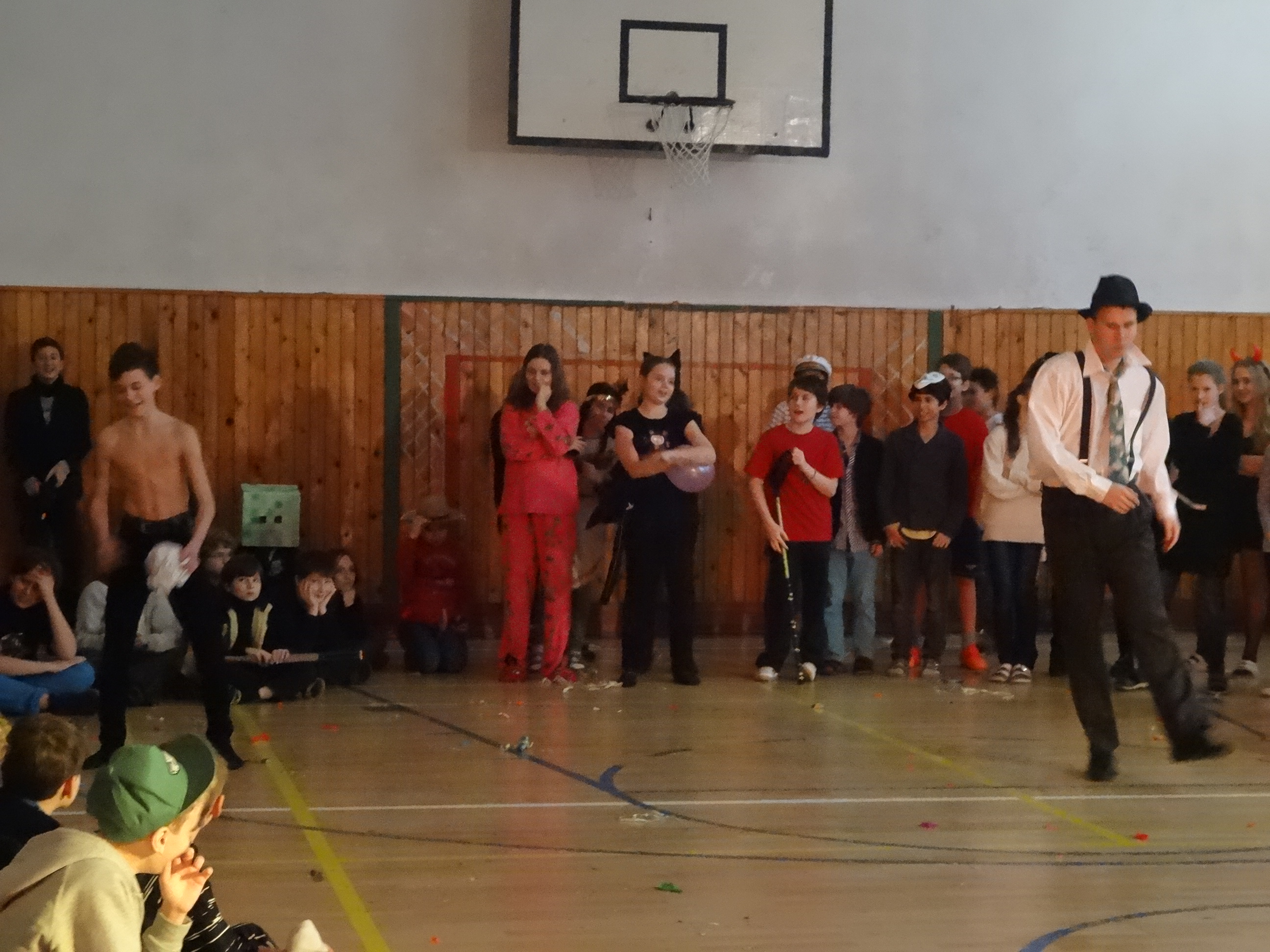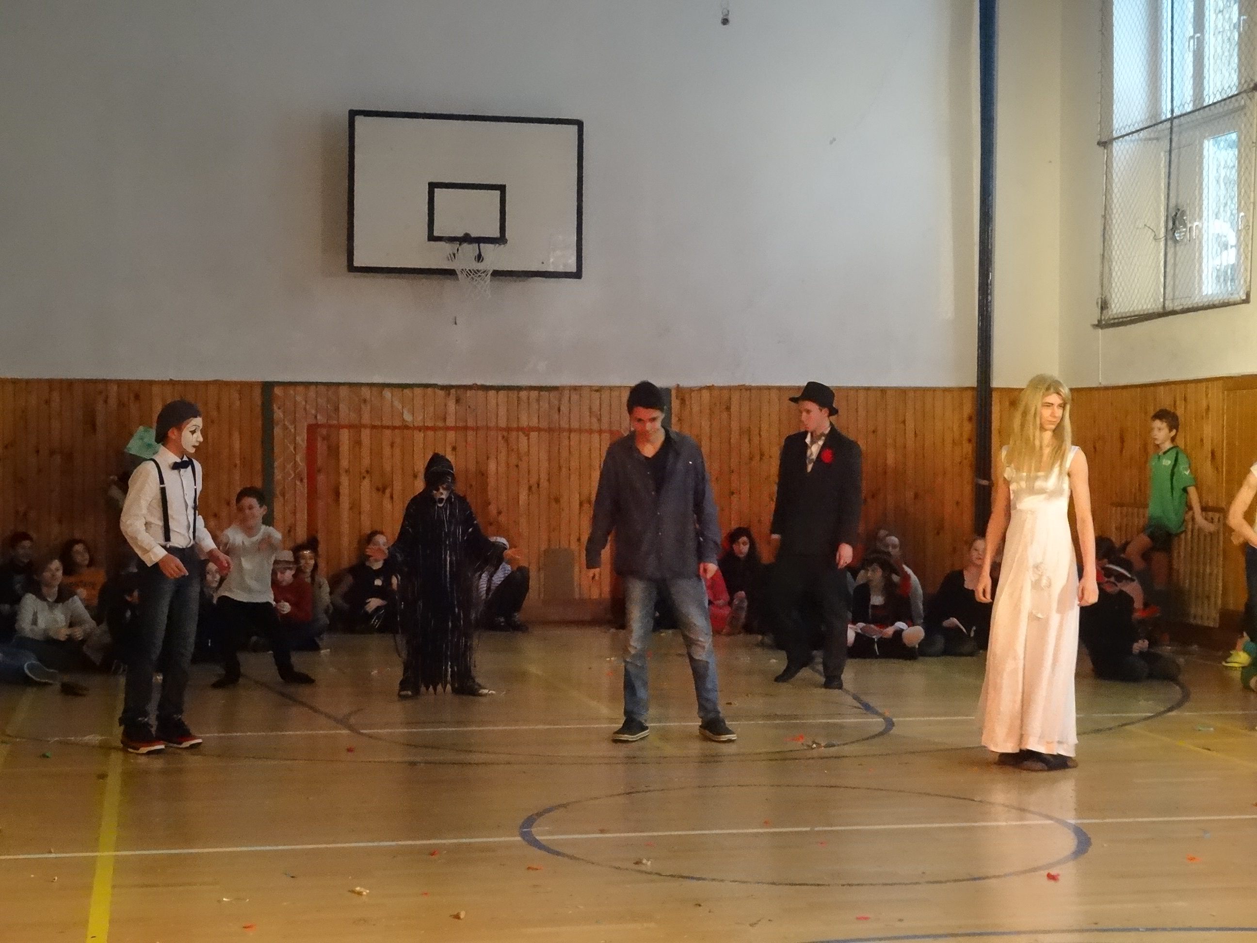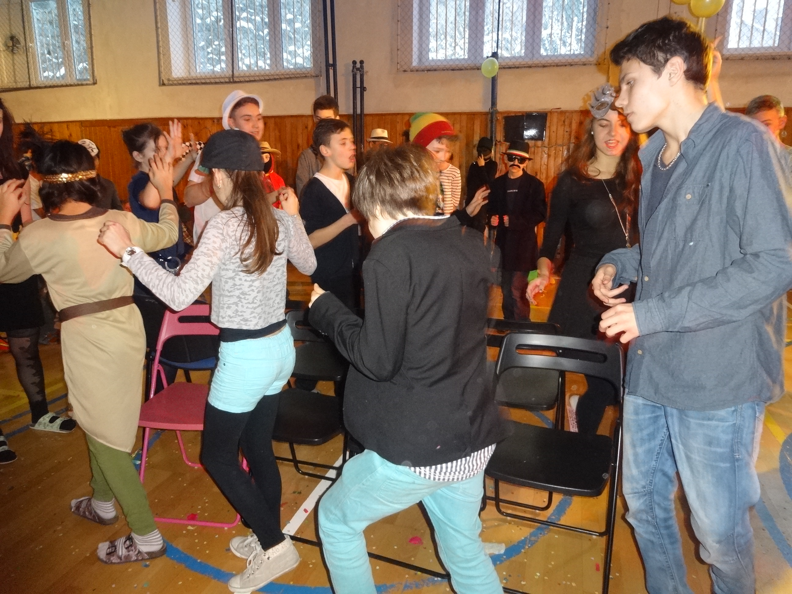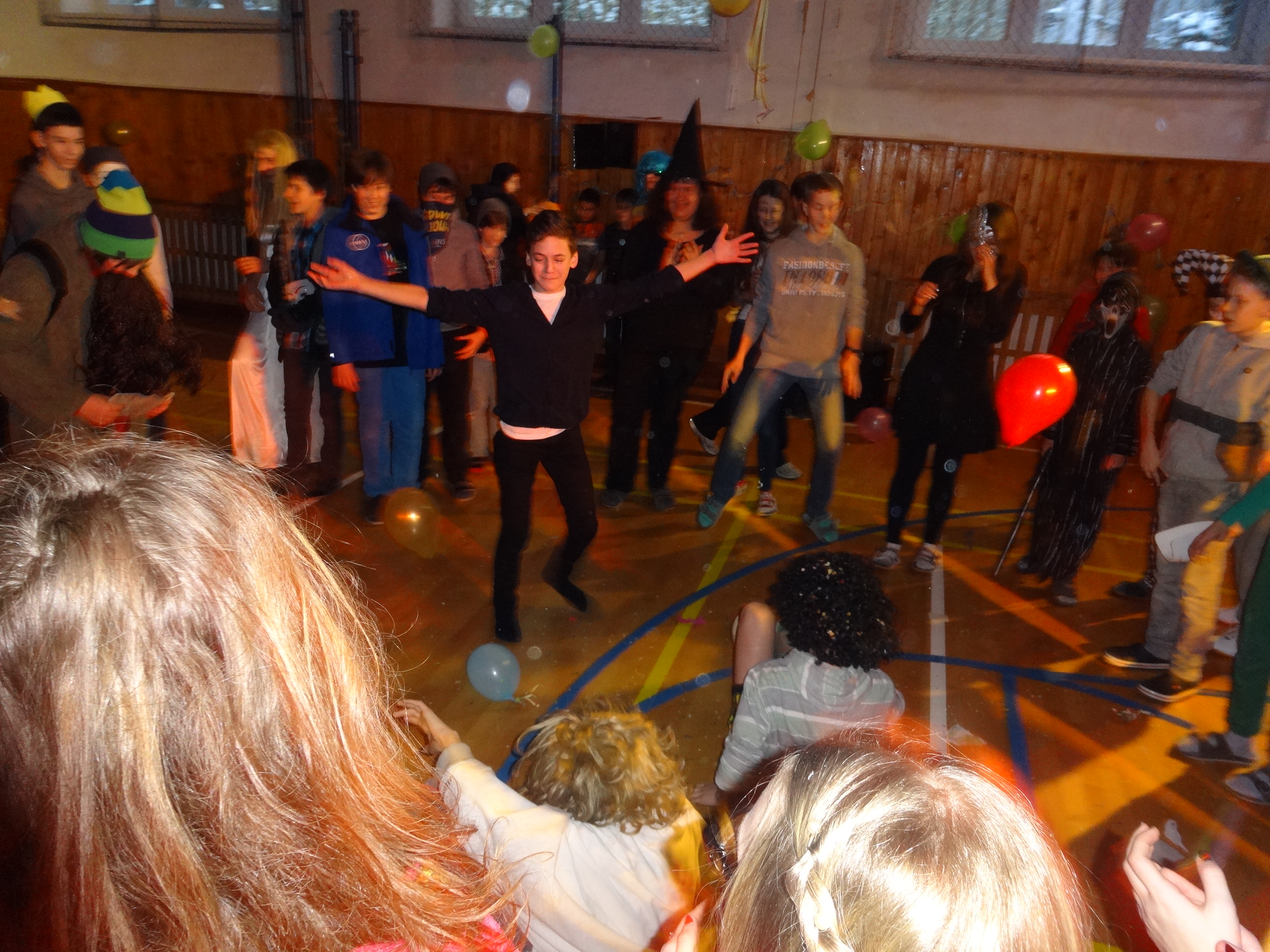 Źiaci 9.A nachystali pre mladších spolužiakov karneval, ktorý sa konal v telocvični.