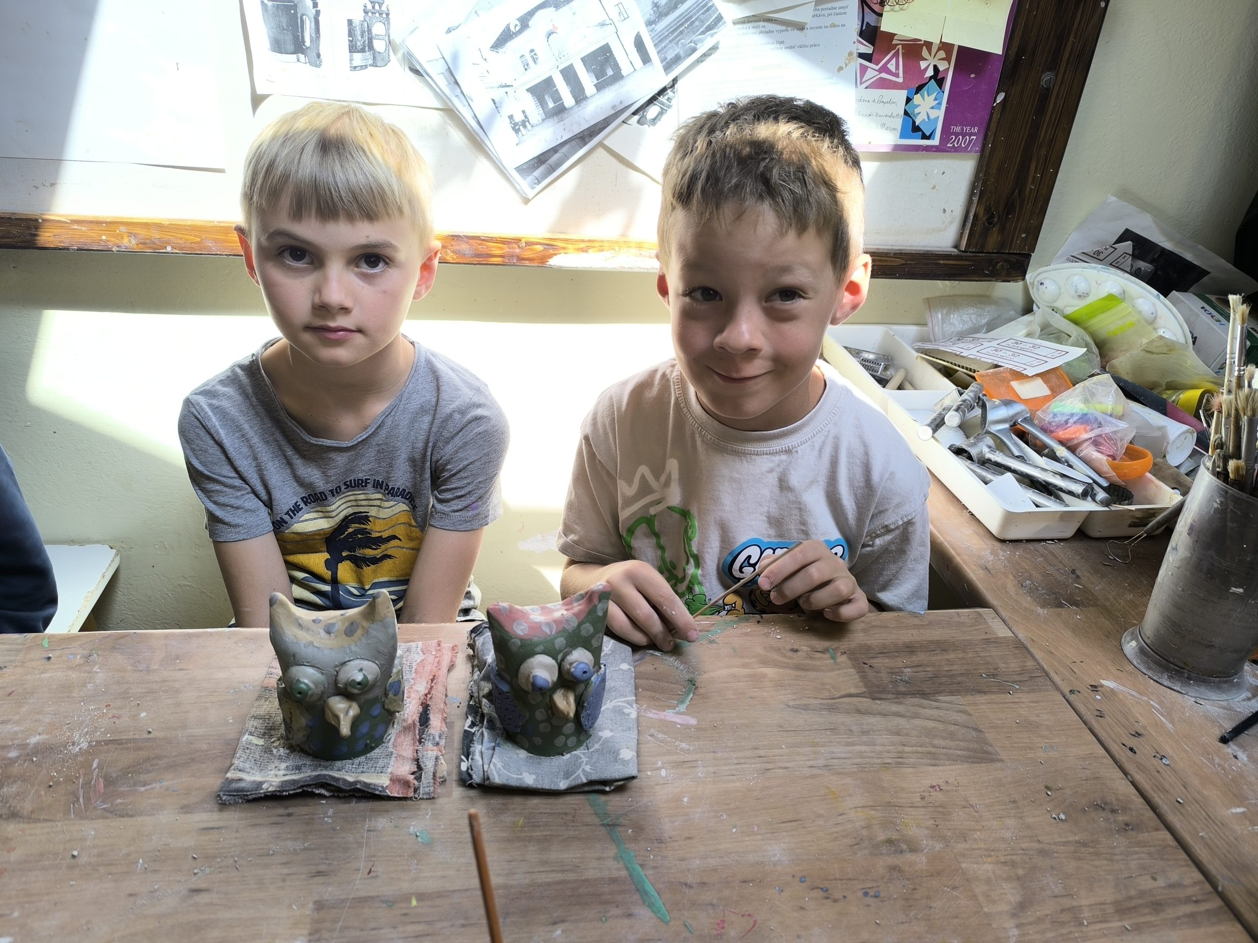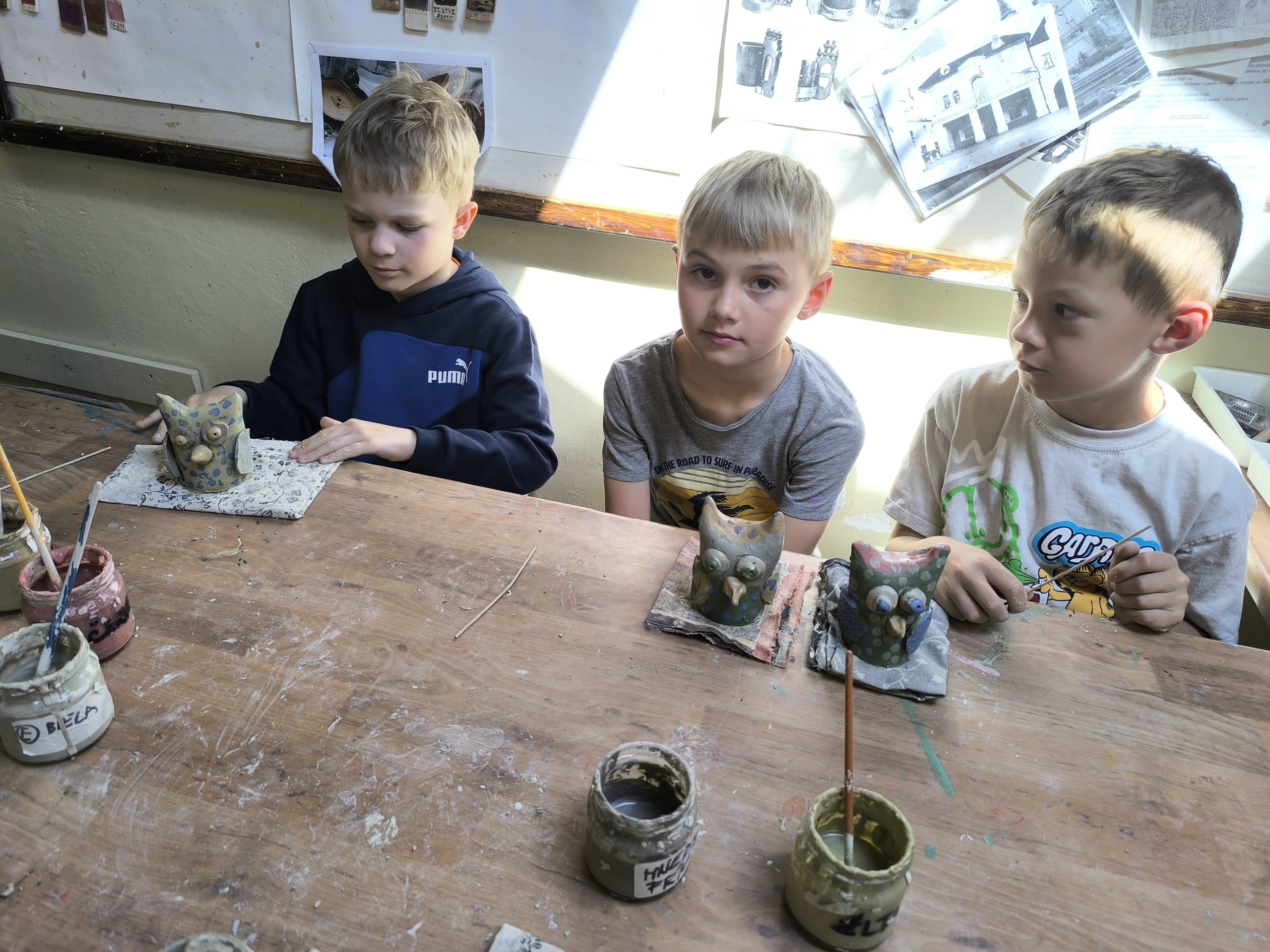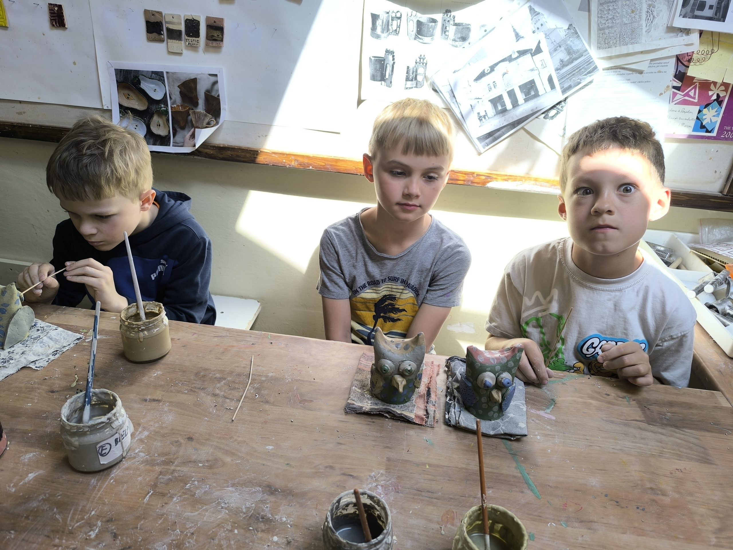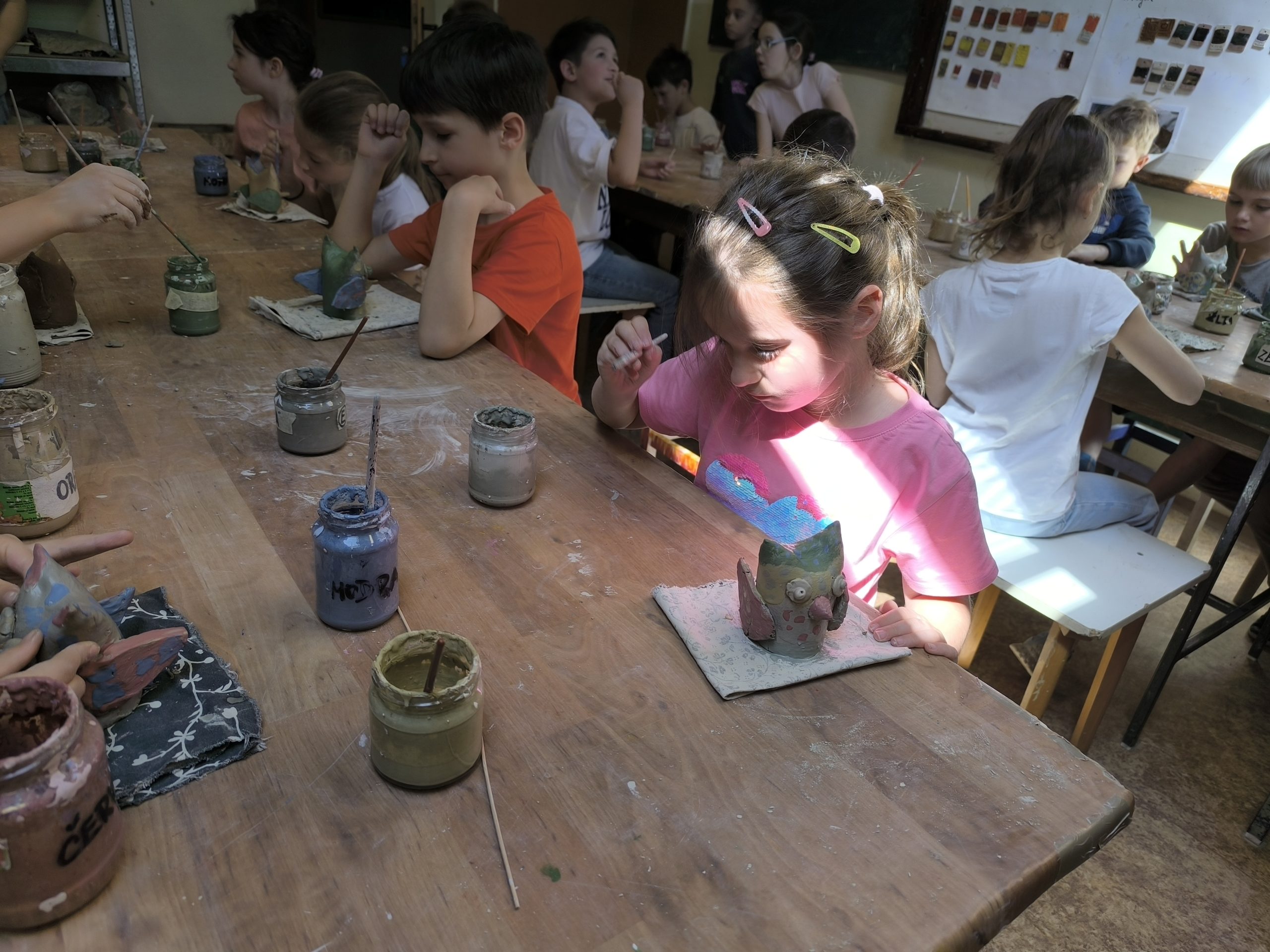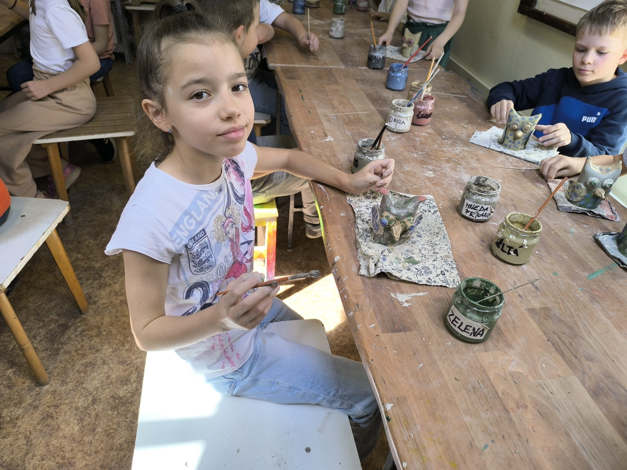 Deti z 2.A zažili alternatívnu hodinu výtvarnej výchovy v Centre voľného času na Štefánikovej ulici. V úvode pani učiteľka Tinka vysvetlila, odkiaľ berieme hlinu, z ktorej sa vyrába keramika, ako sa spracúva, aké farby sa používajú na maľovanie keramiky pred vypaľovaním výrobkov v keramickej peci. Potom deťom ukázala sovičku, ktorú si spolu vyrobili. Deti sa mimoriadne snažili a každý si ju vyrobil jedinečnú podľa vlastných predstáv.