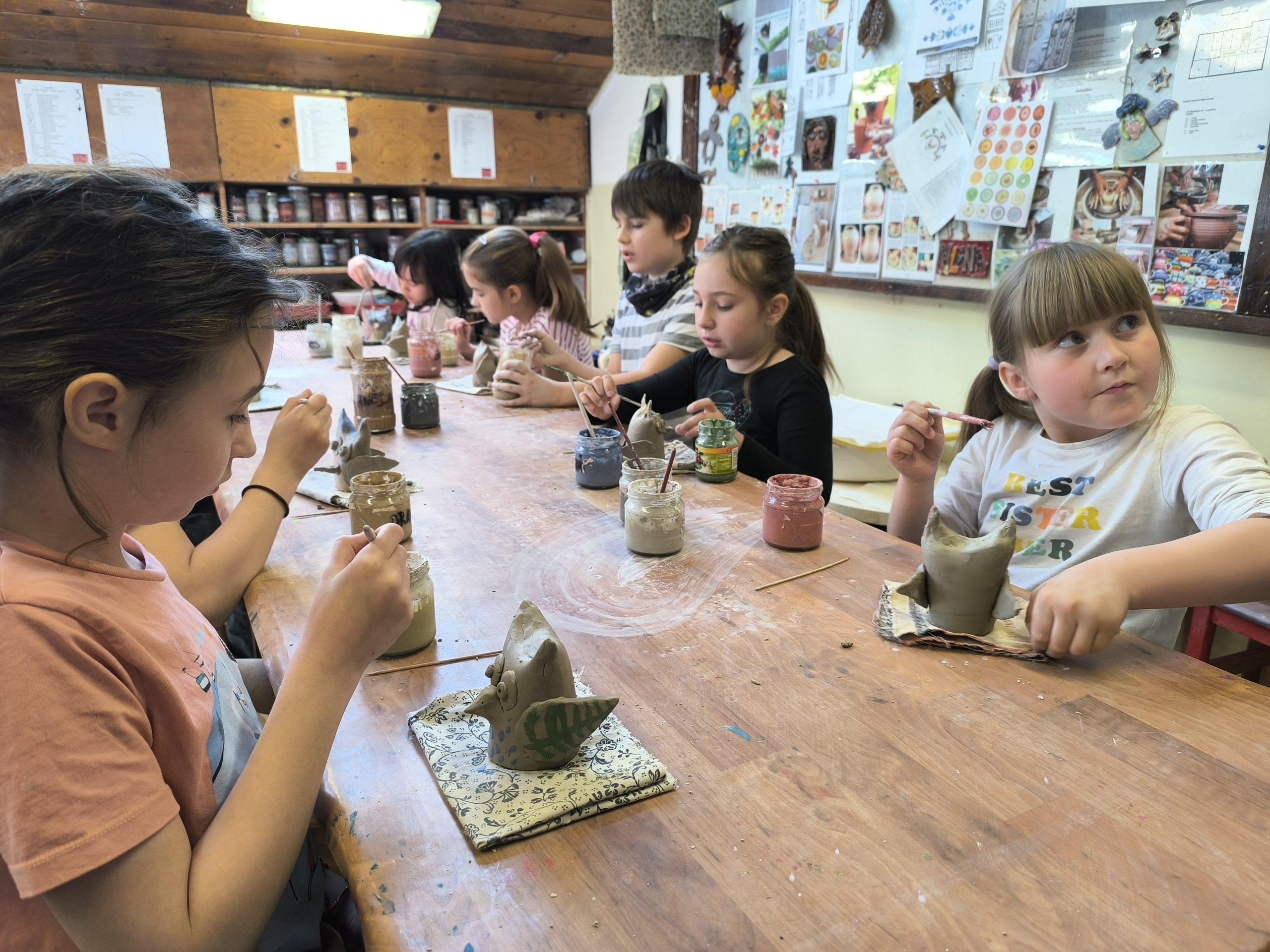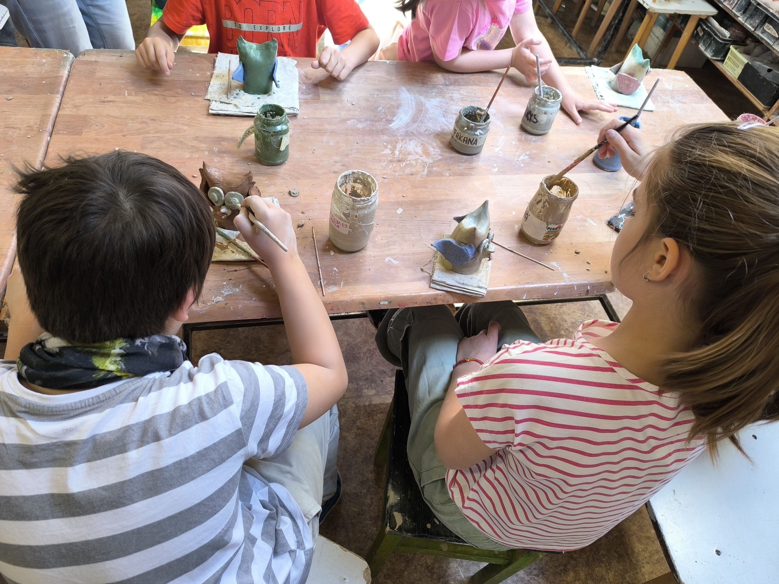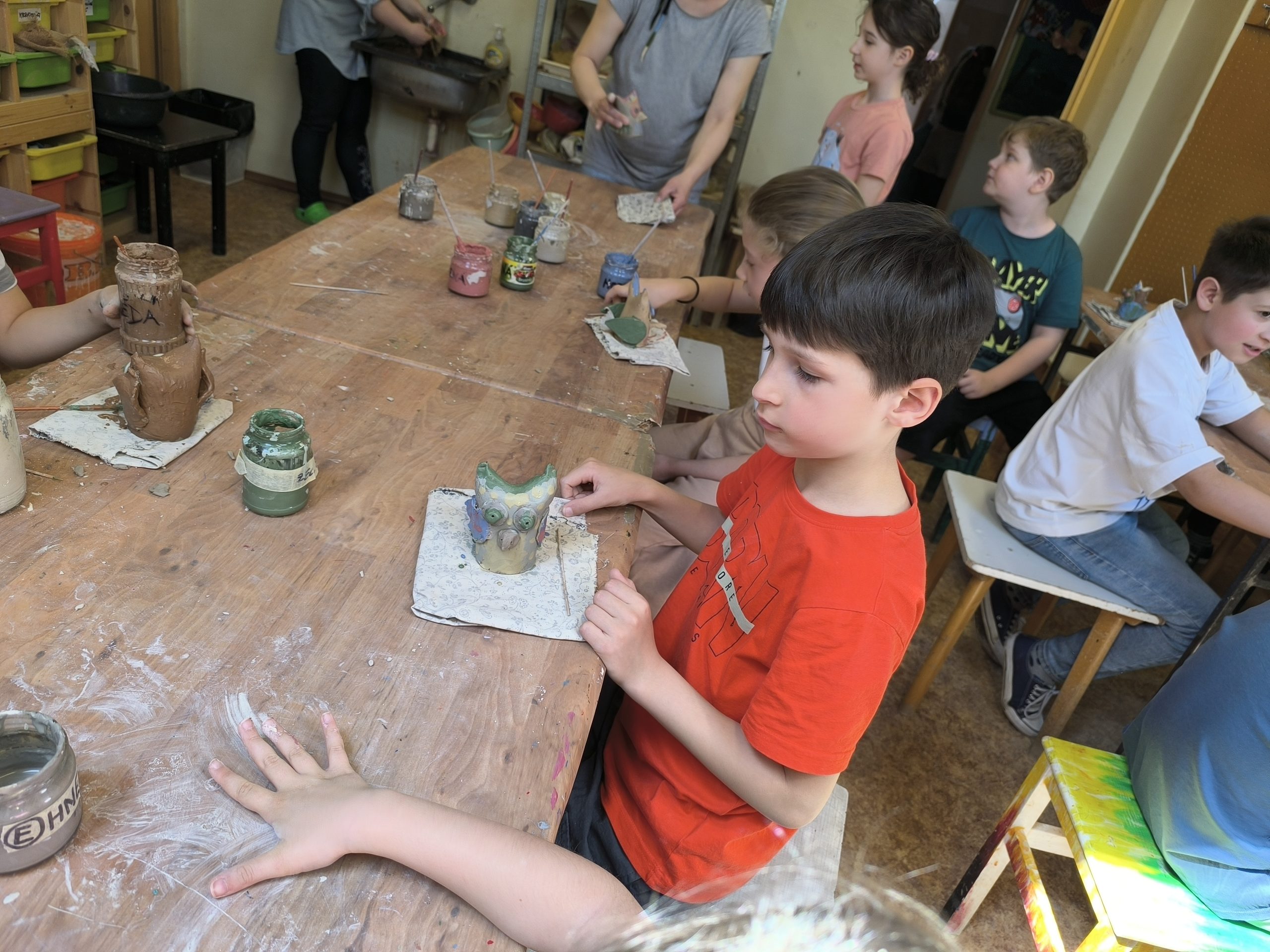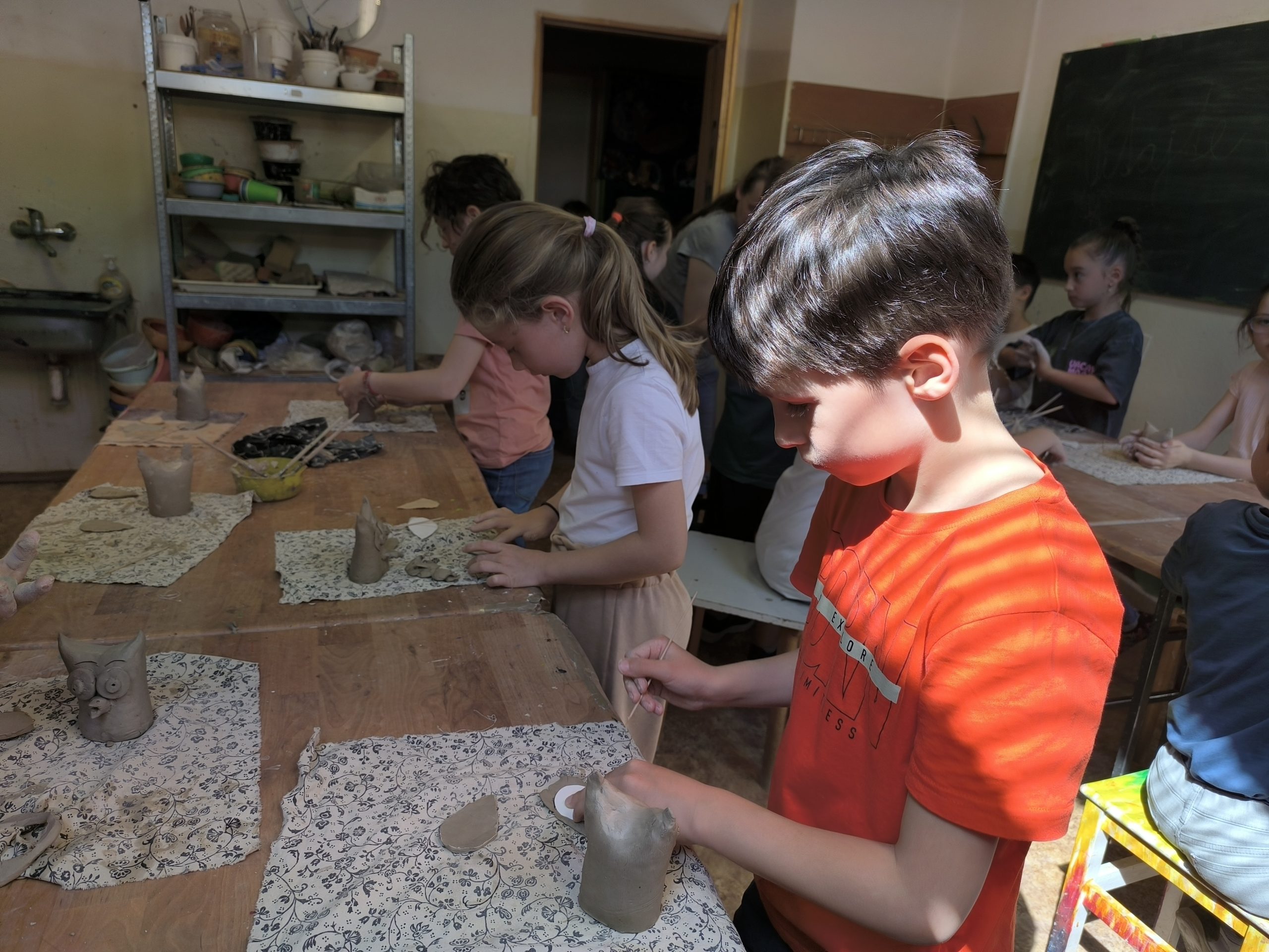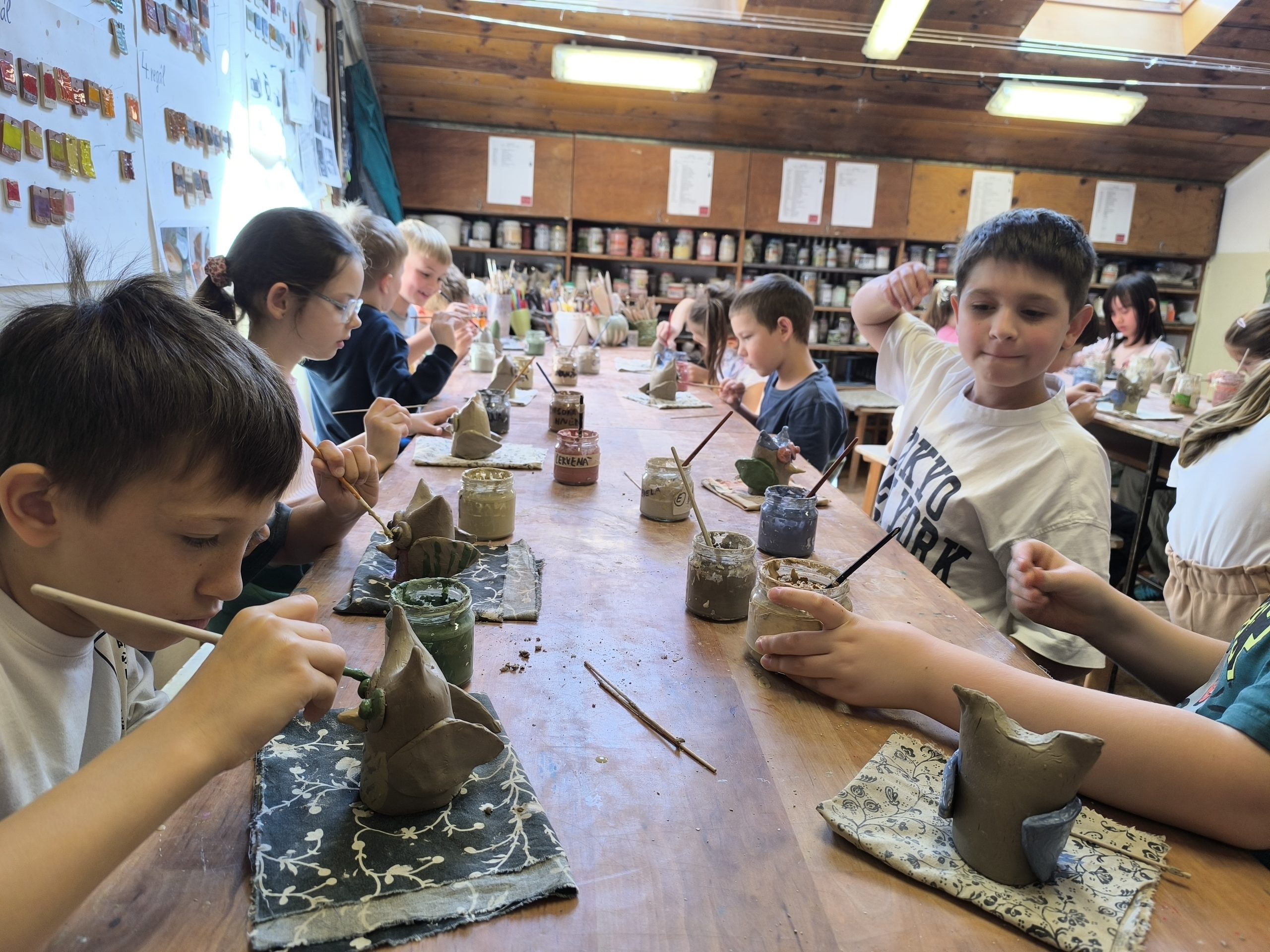 Deti z 2.A zažili alternatívnu hodinu výtvarnej výchovy v Centre voľného času na Štefánikovej ulici. V úvode pani učiteľka Tinka vysvetlila, odkiaľ berieme hlinu, z ktorej sa vyrába keramika, ako sa spracúva, aké farby sa používajú na maľovanie keramiky pred vypaľovaním výrobkov v keramickej peci. Potom deťom ukázala sovičku, ktorú si spolu vyrobili. Deti sa mimoriadne snažili a každý si ju vyrobil jedinečnú podľa vlastných predstáv.