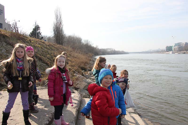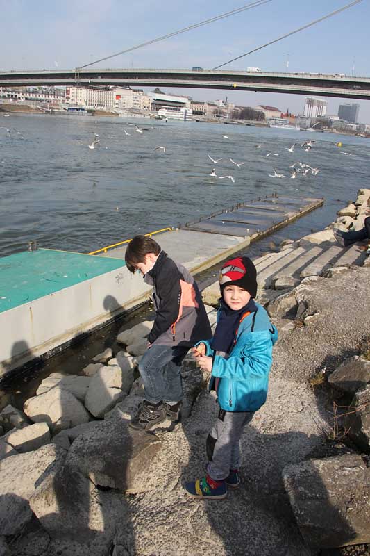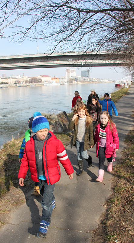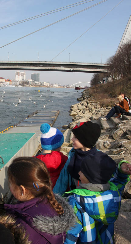 Deti zo školského klubu boli na nábreží Dunaja kŕmiť čajky.