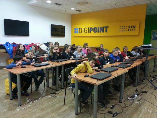 Žiaci 5.A triedy sa zúčastnili bezplatného kurzu programovania v centre DIGIPOIT v technologickej učebni Digilab v Poluse. Vďaka nadšencom z FIIT STU si mohli žiaci vyskúšať programovanie. Použili na to vytvorený výukový nástroj (FIIT STU), pomocou ktorého žiaci získali základy programovania – hru odhorávajúcu sa vo vesmíre Galaxy Codr (http://galaxycodr.com/sk/).