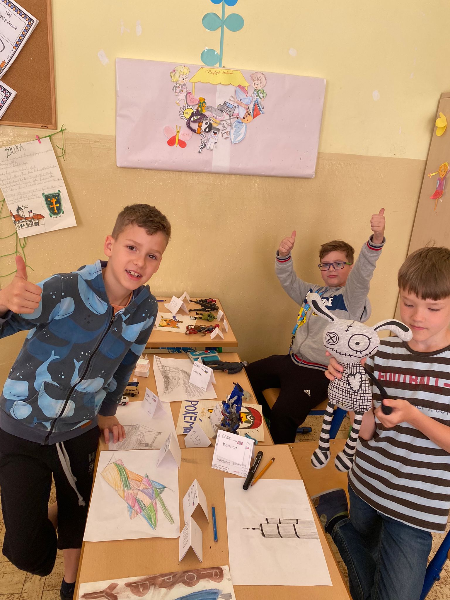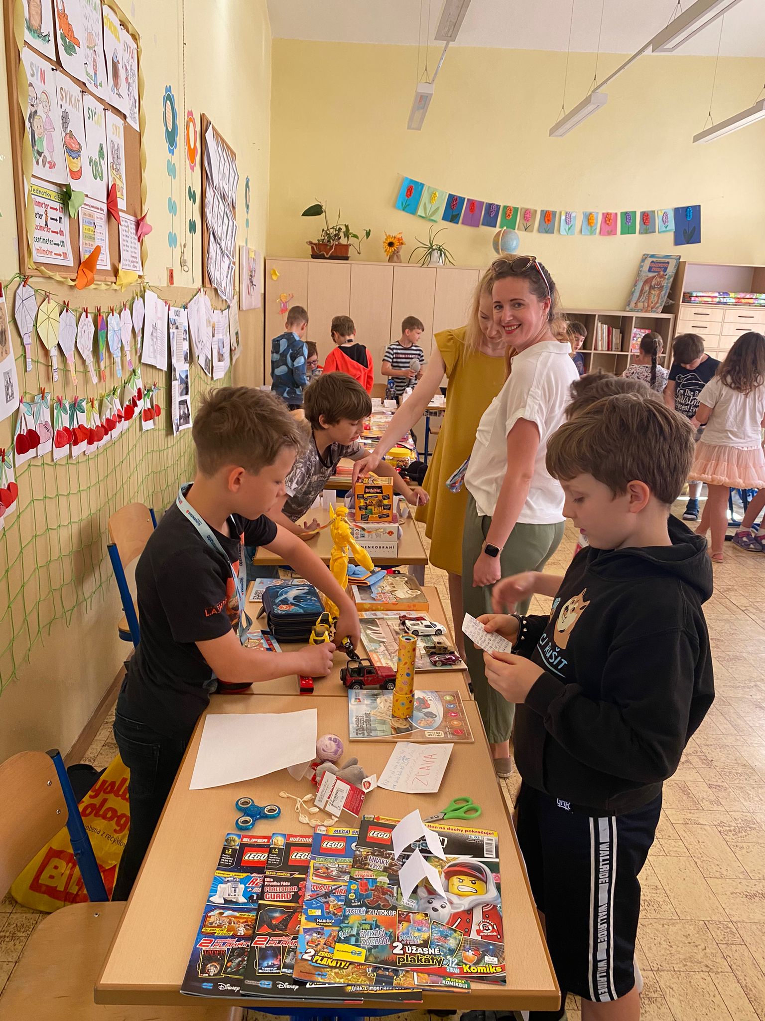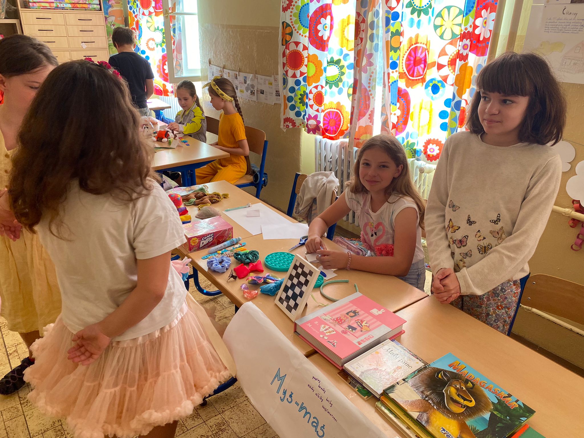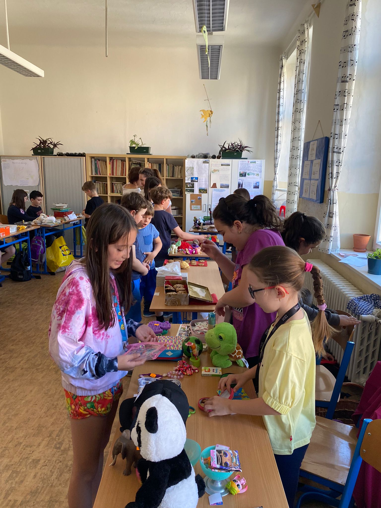 Každá trieda sa zmenila na množstvo malých zaujímavých obchodíkov. Deti okrem hračiek ponúkali na predaj za pár centov aj koláčiky a iné maškrty, ktoré poslali ich mamičky. Bzučalo to ako v úli. Každý predavač sa snažil predať čo najviac, pretože vedel, že za utŕžené peniaze urobíme radosť deťom, ktoré v tento deň nemohli byť v škole. Niektoré neboli dokonca ani doma, pretože sú vážne choré v nemocnici. Tento rok venujeme výťažok z burzy neziskovej organizácii Plamienok, ktorá pomáha nevyliečiteľne chorým deťom. My pani učiteľky sme nesmierne hrdé na všetky deti, ktoré sa tak usilovne snažili pri príprave aj realizácii tohto dňa.