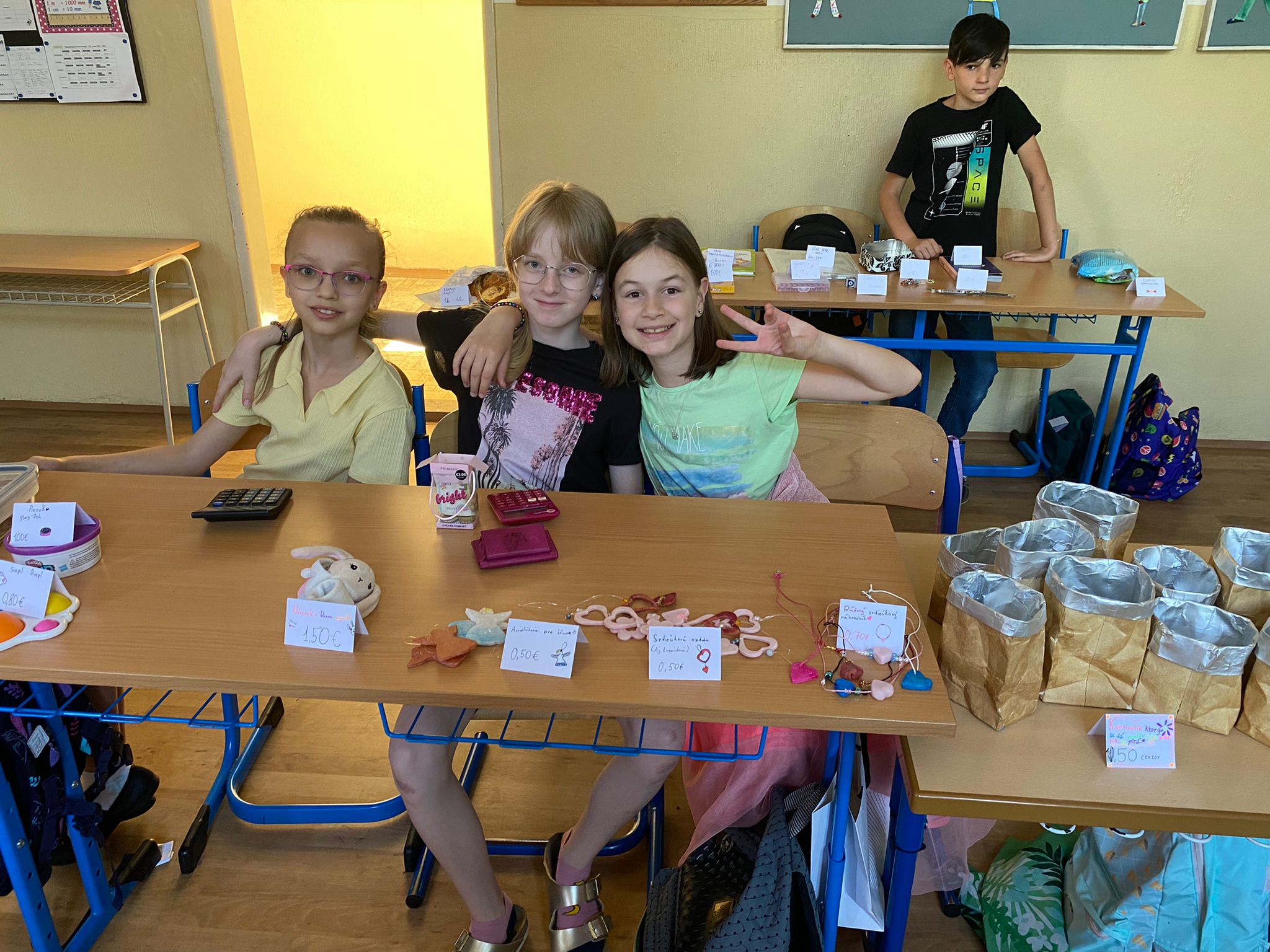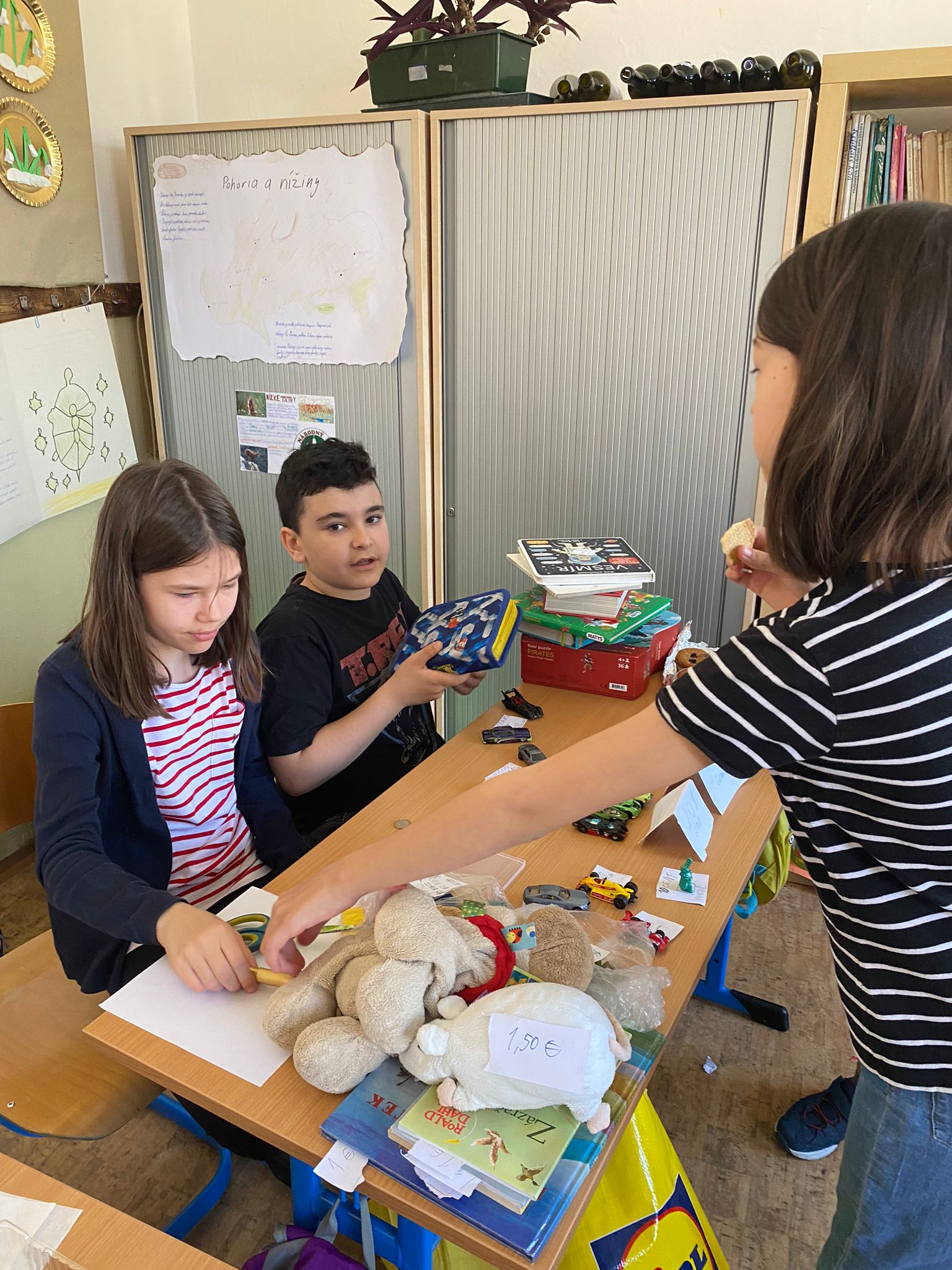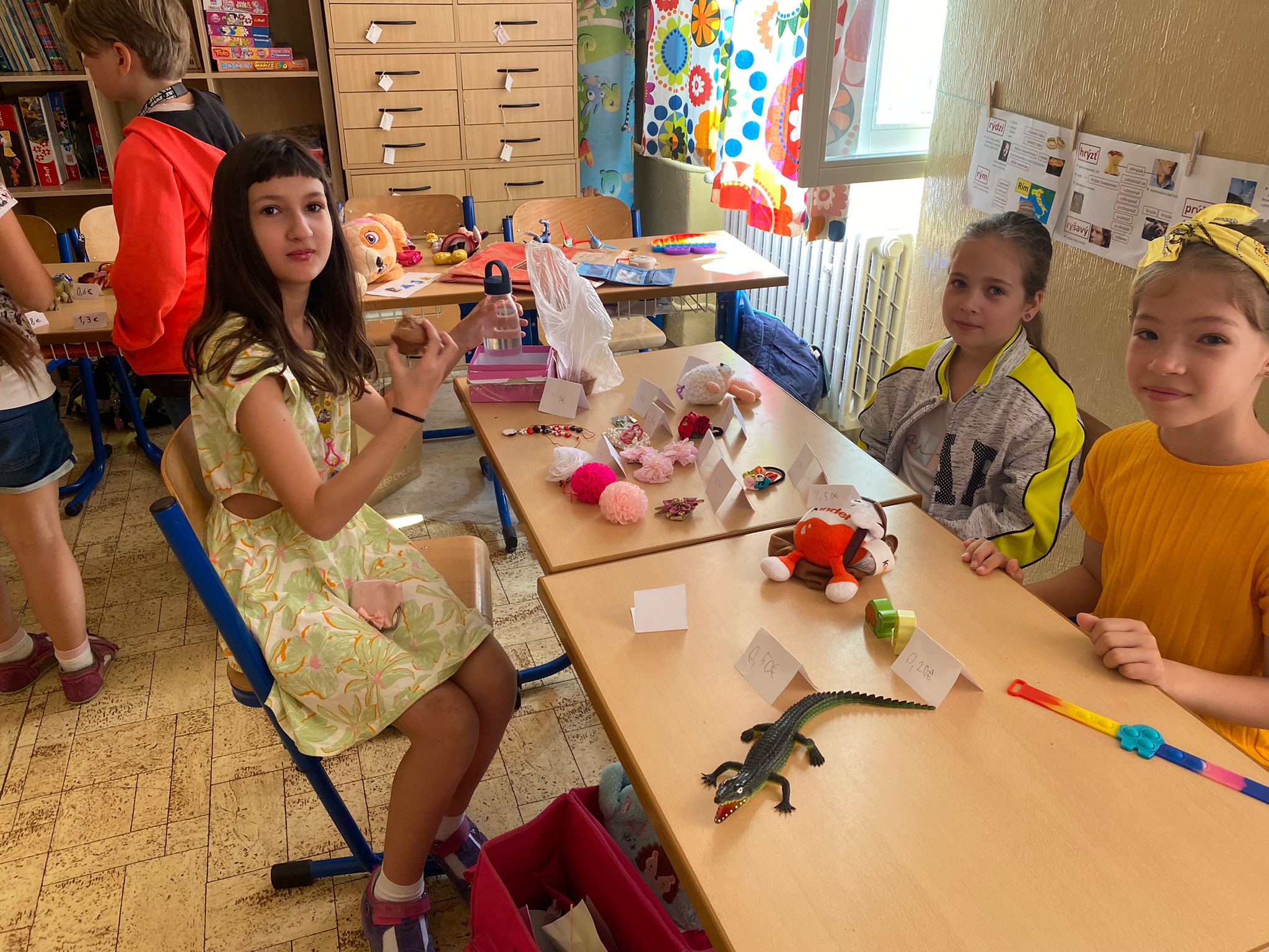 Každá trieda sa zmenila na množstvo malých zaujímavých obchodíkov. Deti okrem hračiek ponúkali na predaj za pár centov aj koláčiky a iné maškrty, ktoré poslali ich mamičky. Bzučalo to ako v úli. Každý predavač sa snažil predať čo najviac, pretože vedel, že za utŕžené peniaze urobíme radosť deťom, ktoré v tento deň nemohli byť v škole. Niektoré neboli dokonca ani doma, pretože sú vážne choré v nemocnici. Tento rok venujeme výťažok z burzy neziskovej organizácii Plamienok, ktorá pomáha nevyliečiteľne chorým deťom. My pani učiteľky sme nesmierne hrdé na všetky deti, ktoré sa tak usilovne snažili pri príprave aj realizácii tohto dňa.