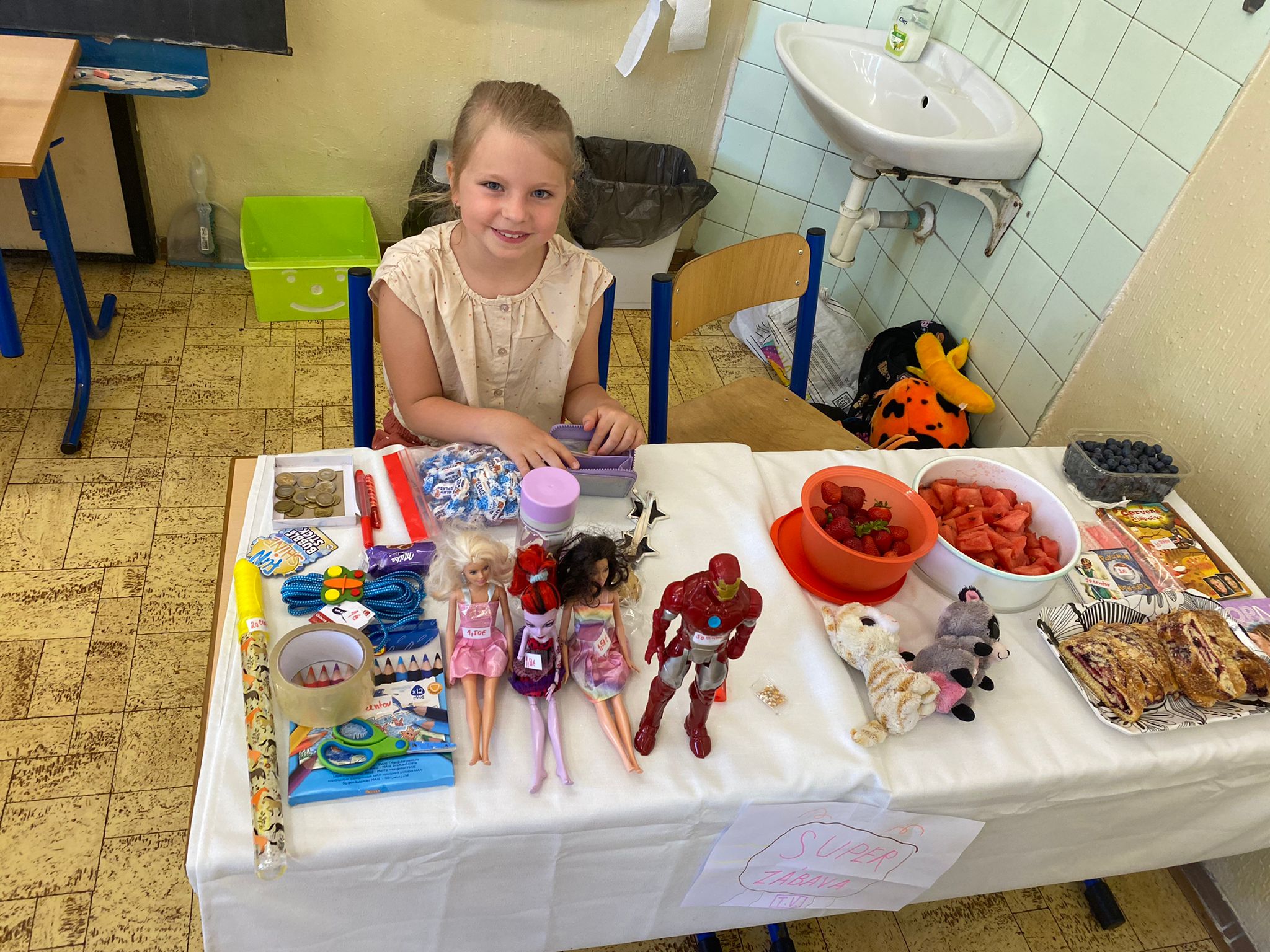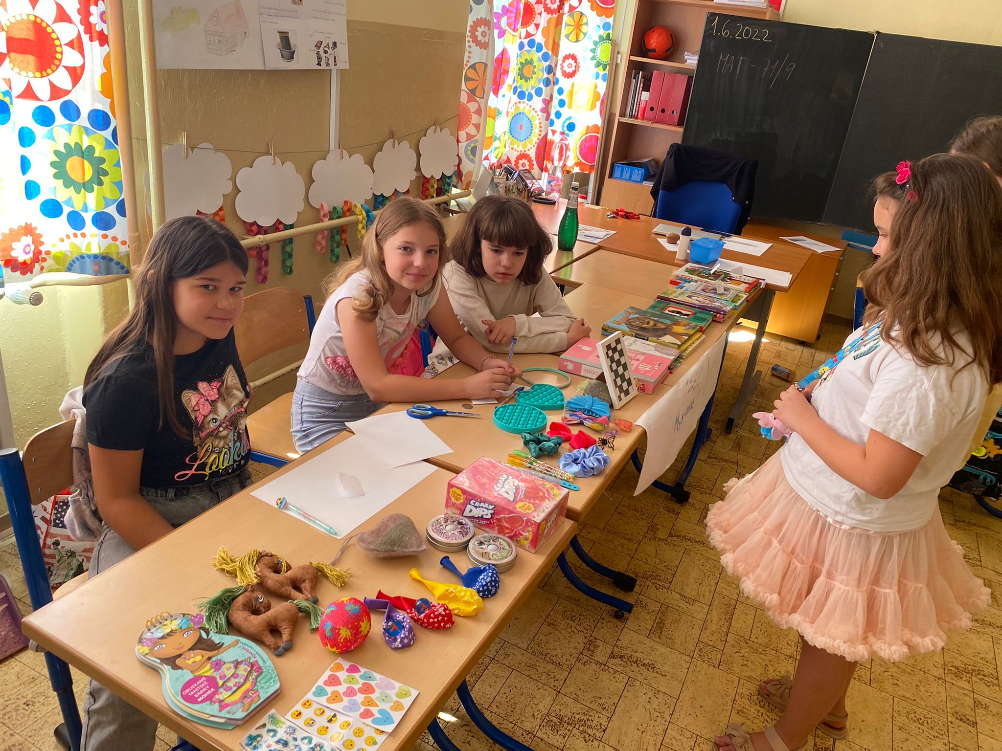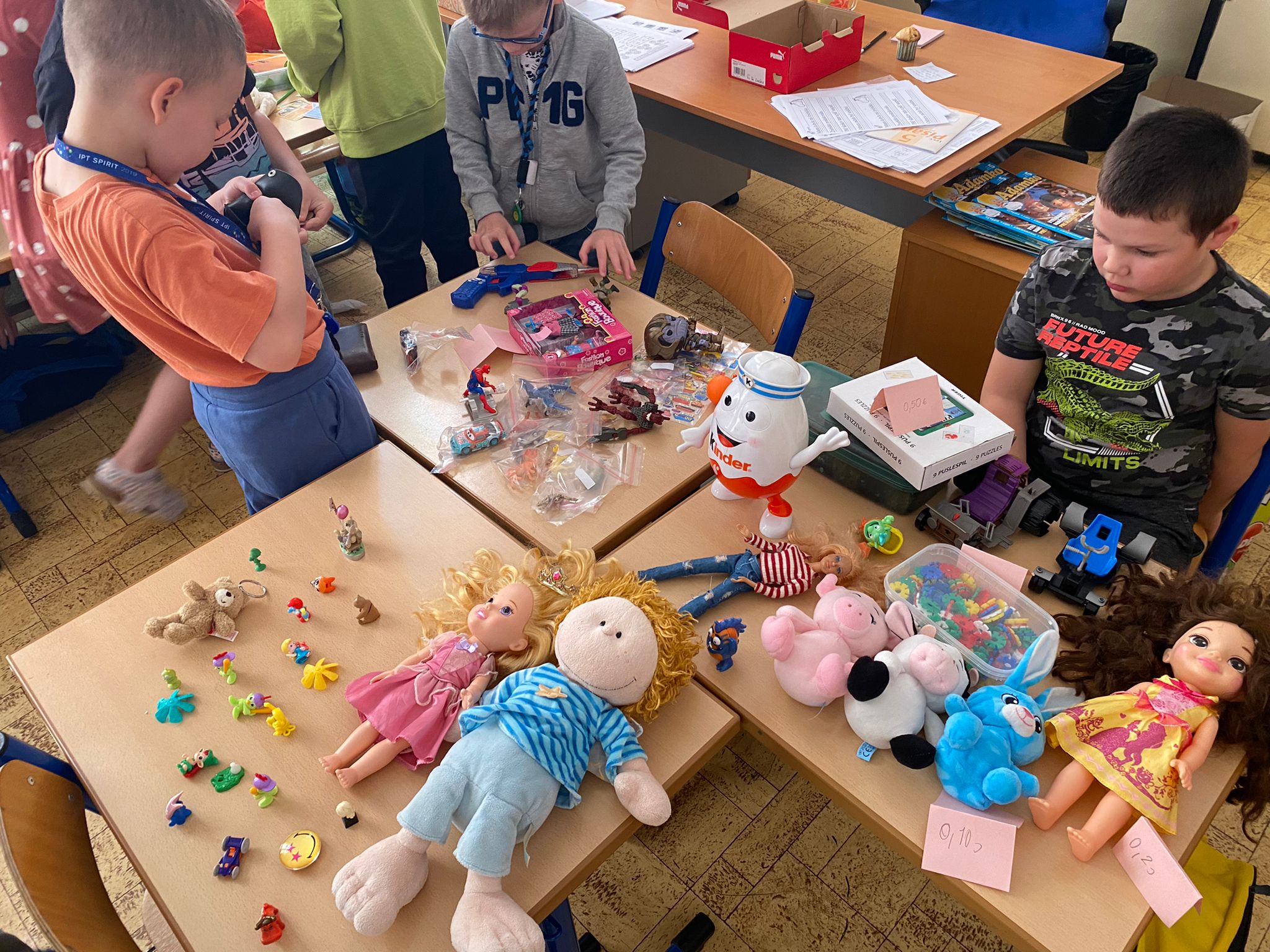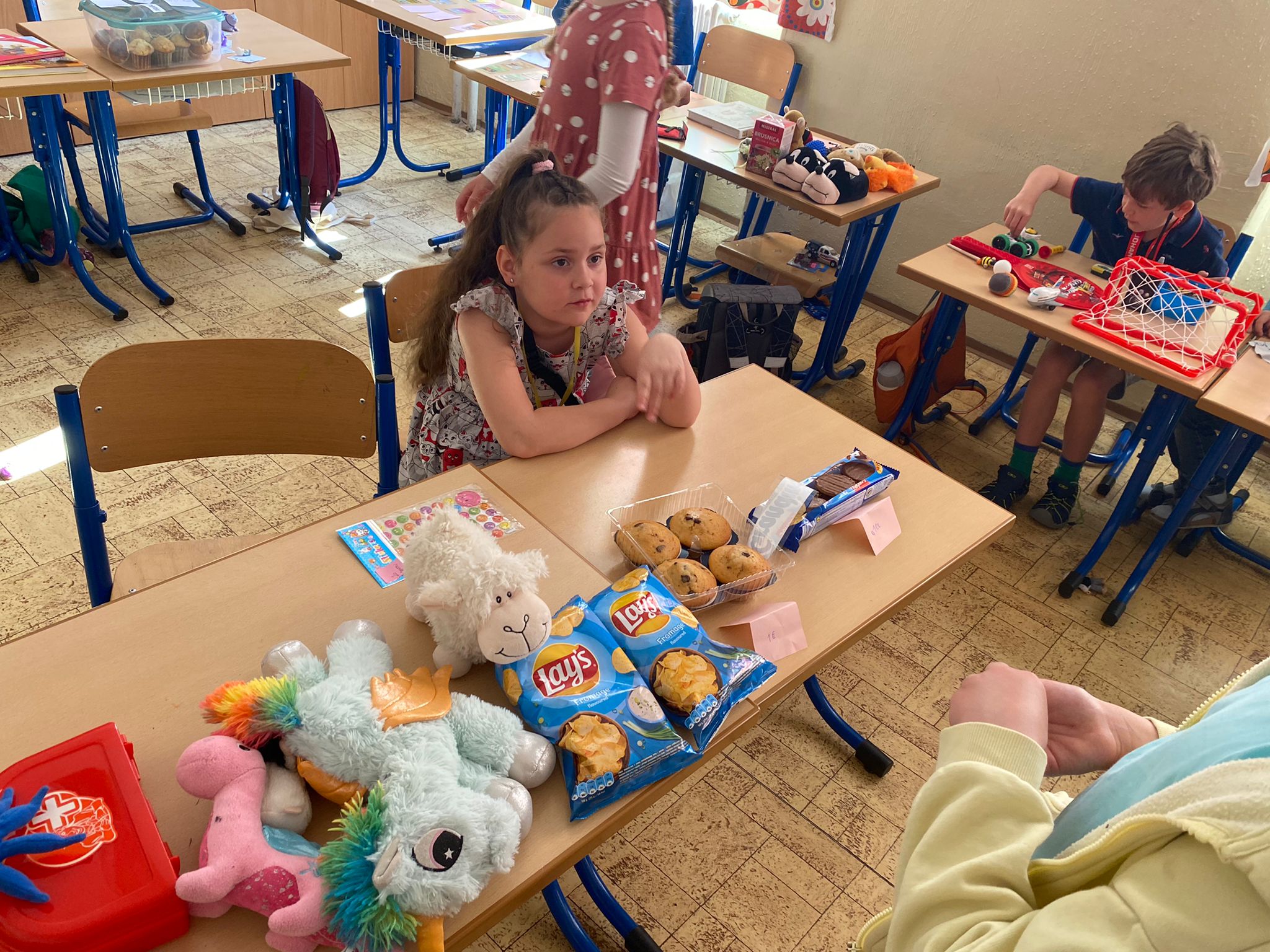 Každá trieda sa zmenila na množstvo malých zaujímavých obchodíkov. Deti okrem hračiek ponúkali na predaj za pár centov aj koláčiky a iné maškrty, ktoré poslali ich mamičky. Bzučalo to ako v úli. Každý predavač sa snažil predať čo najviac, pretože vedel, že za utŕžené peniaze urobíme radosť deťom, ktoré v tento deň nemohli byť v škole. Niektoré neboli dokonca ani doma, pretože sú vážne choré v nemocnici. Tento rok venujeme výťažok z burzy neziskovej organizácii Plamienok, ktorá pomáha nevyliečiteľne chorým deťom. My pani učiteľky sme nesmierne hrdé na všetky deti, ktoré sa tak usilovne snažili pri príprave aj realizácii tohto dňa.
