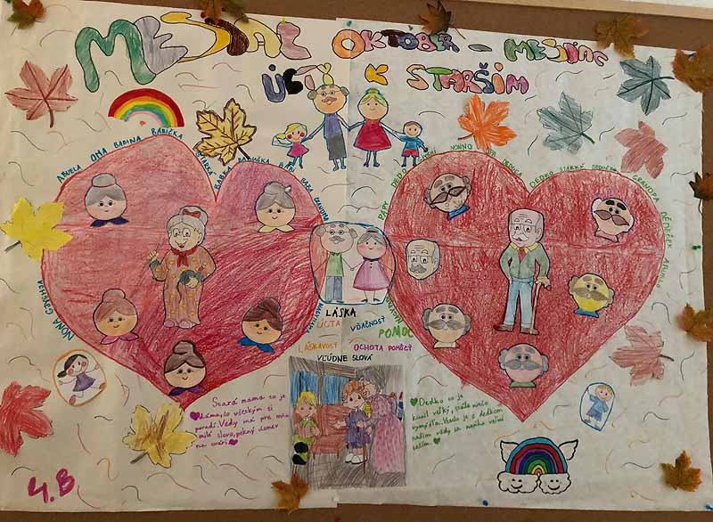 Október je mesiac, ktorý je oslavou jesene života a pripomienkou úcty k starším ľuďom. Tento rok sme sa s deťmi zo školského klubu rozhodli myšlienku Mesiaca úcty k starším urobiť inak ako po minulé roky. Najprv sme si čítali na túto tému rozprávky a básne. Neskôr sme si aj zaspievali a celú aktivitu sme zakončili výrobou veľkého plagátu, ktorým sme im vzdali svoj hold. Jeho myšlienkou bolo, aby sme si našich starkých stále pripomínali a nezabúdali na nich. Bolo to veľmi podnetné popoludnie.