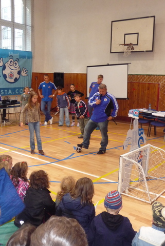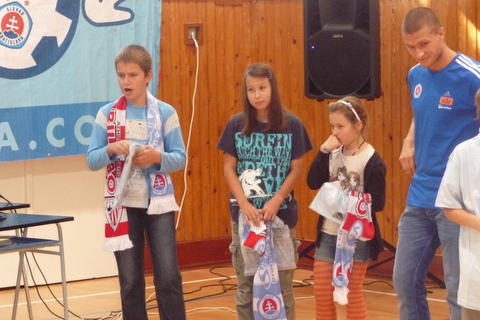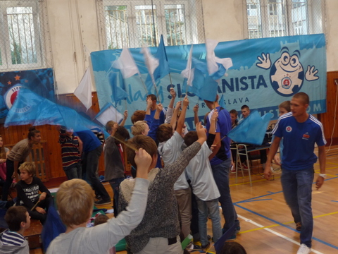 Na prezentácii klubu sa zúčastnili najskôr žiaci prvého, potom aj druhého stupňa. Deti potešila prítomnosť maskota klubu Boba a najmä hráčov ŠK Slovan Erika Čikoša a Tomáša Bagiho. Slovanisti prichystali  rôzne súťaže o suveníry futbalového klubu. Žiaci sa dozvedeli základné informácie o futbale a jeho histórii. Nakoniec využili možnosť položiť hráčom zaujímavé otázky a dozvedeli sa aj to, čo pre Erika a Tomáša znamená obliekať si belasý dres a čo všetko treba urobiť, aby si človek splnil svoj sen.