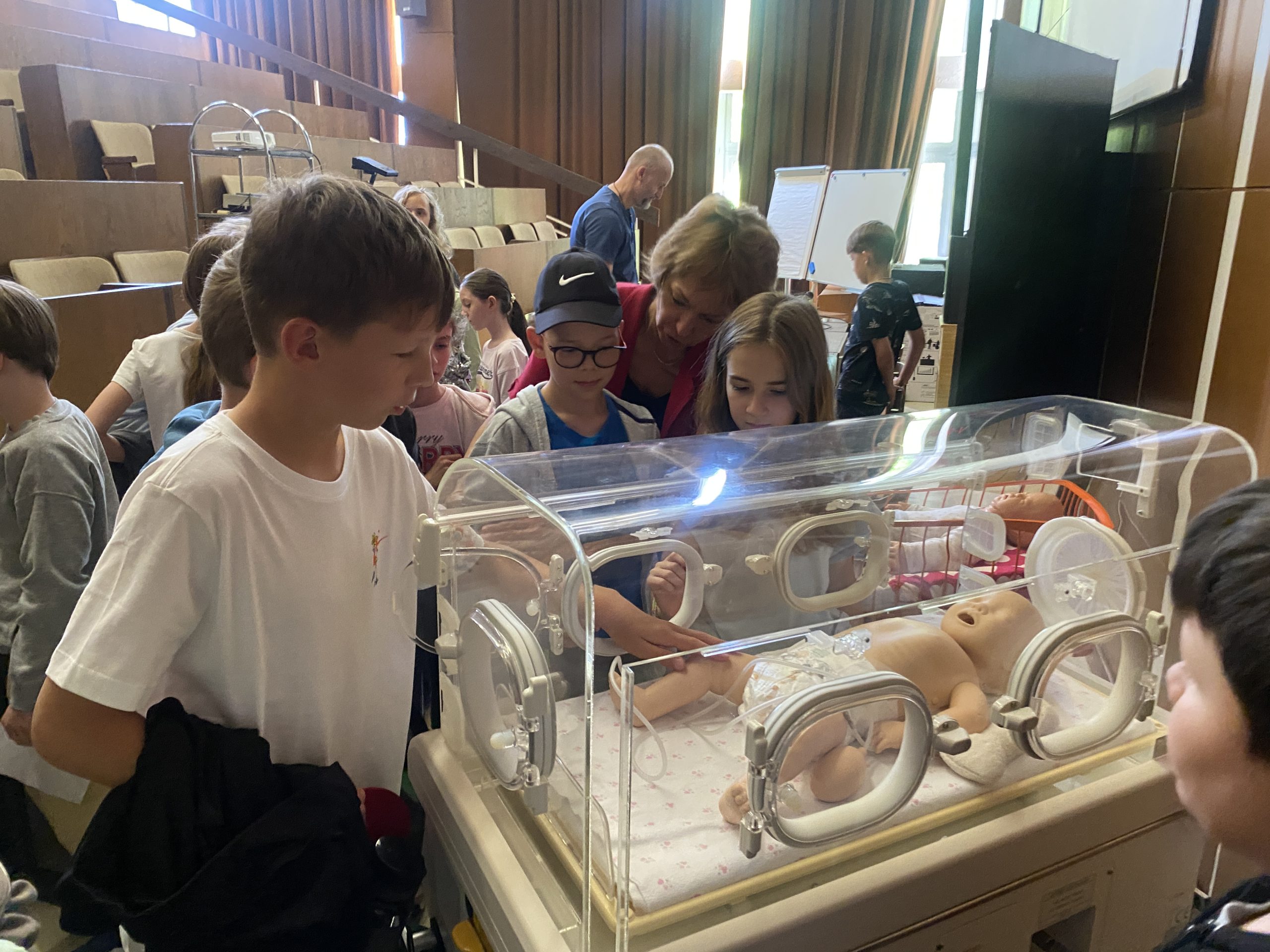 Žiaci 4. ročníka boli pozvaní na prednášku na oddelenie pre predčasne narodené detičky. Mali možnosť vidieť, ako predčasniatko vyzerá, pozreli si inkubátor a okrem toho získali mnoho dôležitých poznatkov, ako sa o novorodeniatko starať. Pani prednostka prof. MUDr. Ingrid Brucknerová im vysvetlila všetko tak, že to ľahko pochopili.