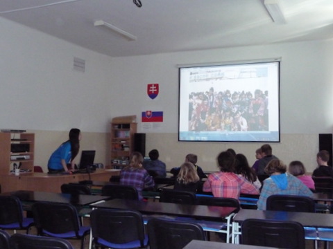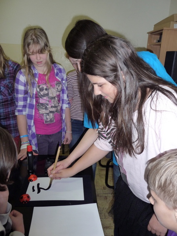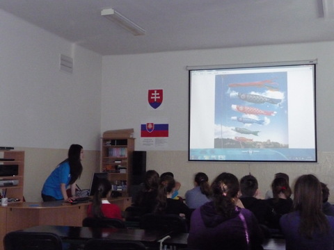 S našou školou spolupracuje slečna Tomoe Komatsu z Japonska, ktorá už absolvovala stretnutie s našimi ôsmakmi a siedmakmi. Jej aktivity sa veľmi osvedčili, preto sa na programe zúčastnili aj šiestaci. Uvádzame názor našej žiačky Emy Dobišovej: ,,Z návštevy slečny Tomoe som bola nadšená. Robili sme s ňou rôzne aktivity, no najviac ma zaujalo písanie našich mien po japonsky. Bolo zaujímavé pozorovať, ako písala na papier rôzne znaky, ktoré boli časťami nášho mena. Rozprávala nám aj o kultúre, histórii a tradíciách Japonska. Najviac ma prekvapilo, že slečna Tomoe je na Slovensku iba dva roky a veľmi dobre ovláda slovenský jazyk.“ Žiaci boli zo stretnutie opäť nadšení, veľmi sa im páčilo.