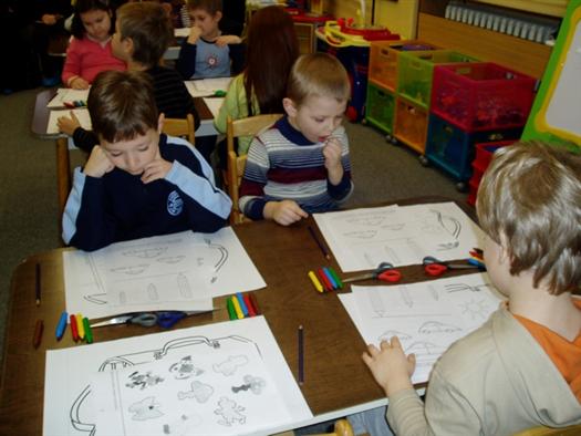 Na otvorenej hodine sa zúčastnila aj pani učiteľka 1. ročníka Mgr. Polonyová a psychologička Mgr. Beutelhauserová. Pani psychologička oboznámila rodičov so zrelosťou detí pred nástupom do ZŠ. Deti predviedli rodičom prácu s pracovnými listami i nožnicami.
