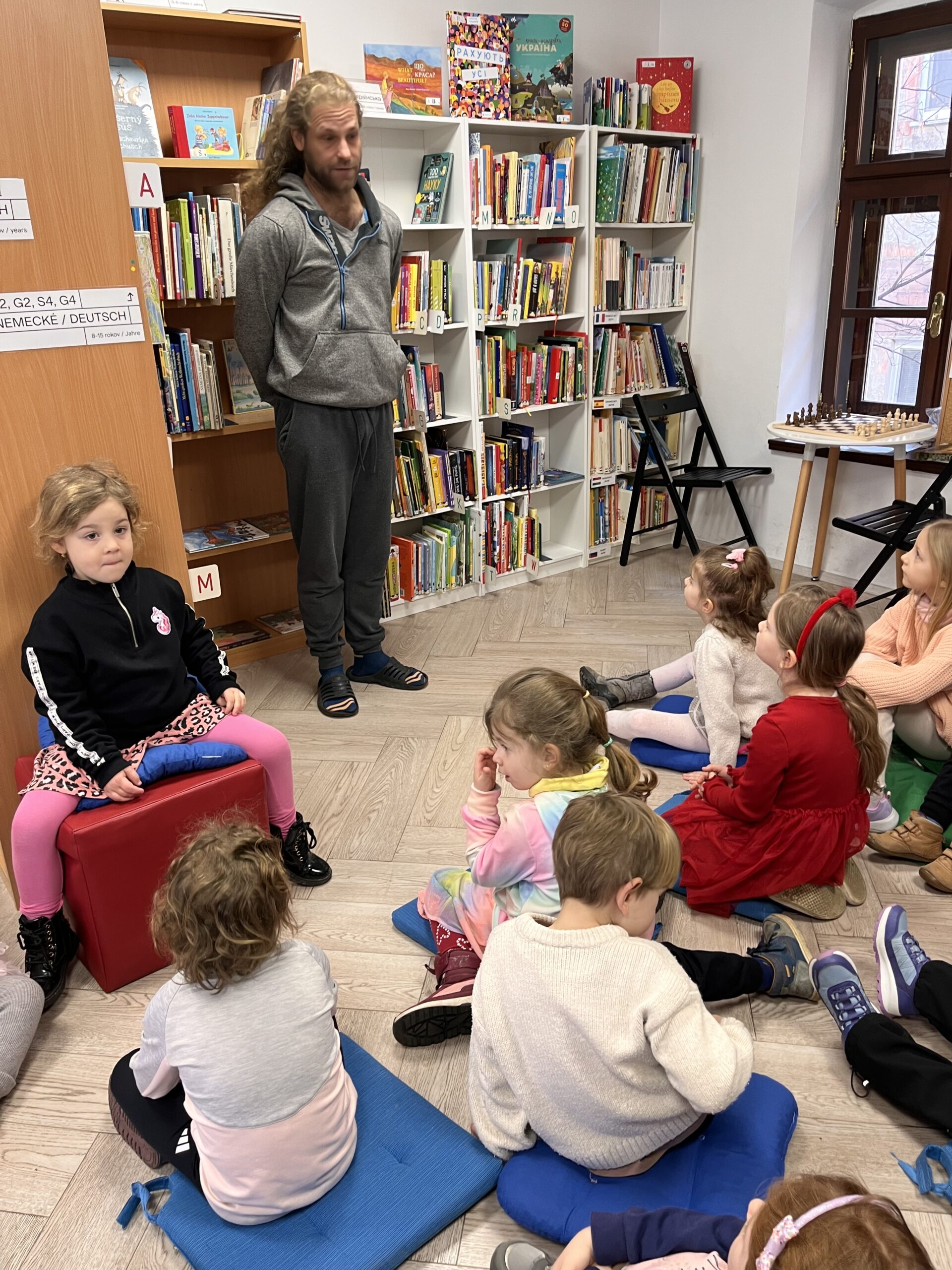 - Lucia Grejtáková prišla deťom porozprávať o svojej vlastnej knižke a predstavila im príbeh O Hnevkovi a Láske.