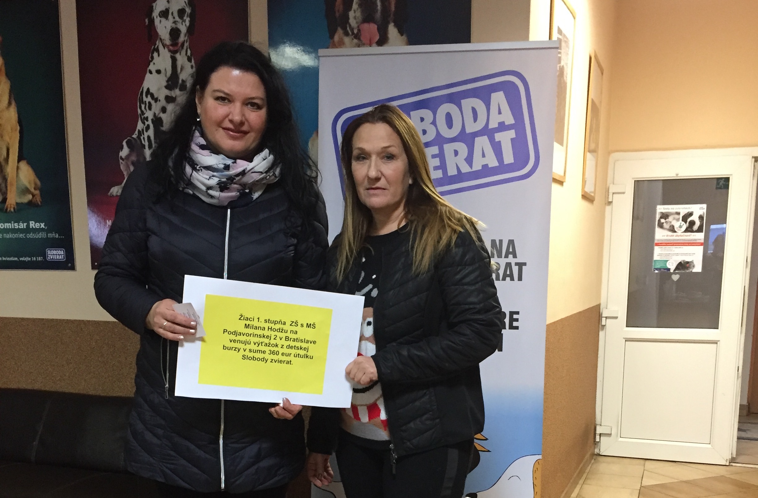 Žiaci 1. stupňa ZŠ s MŠ Milana Hodžu venujú výtažok z detskej burzy v sume 360 eur útulku Slobody zvierat.