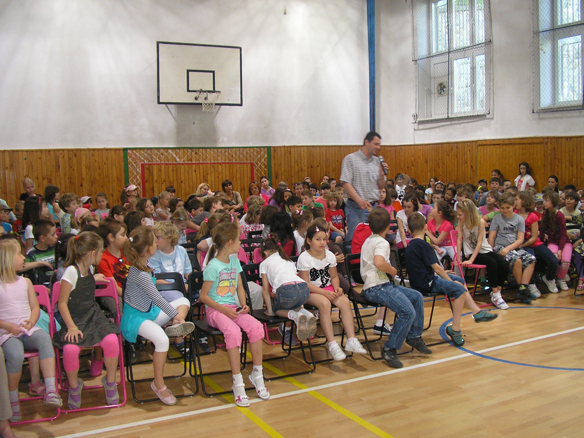 Zábavnou formou predstavili kompenzačné pomôcky, prácu s bielou palicou, ako aj názorné pomôcky pre nevidiacich – písací stroj, prístroj na rozoznávanie farieb, váhu, hodiny, mobil, PC a zvukovú loptu. Deti najviac zaujala ukážka práce s vodiacim psom.