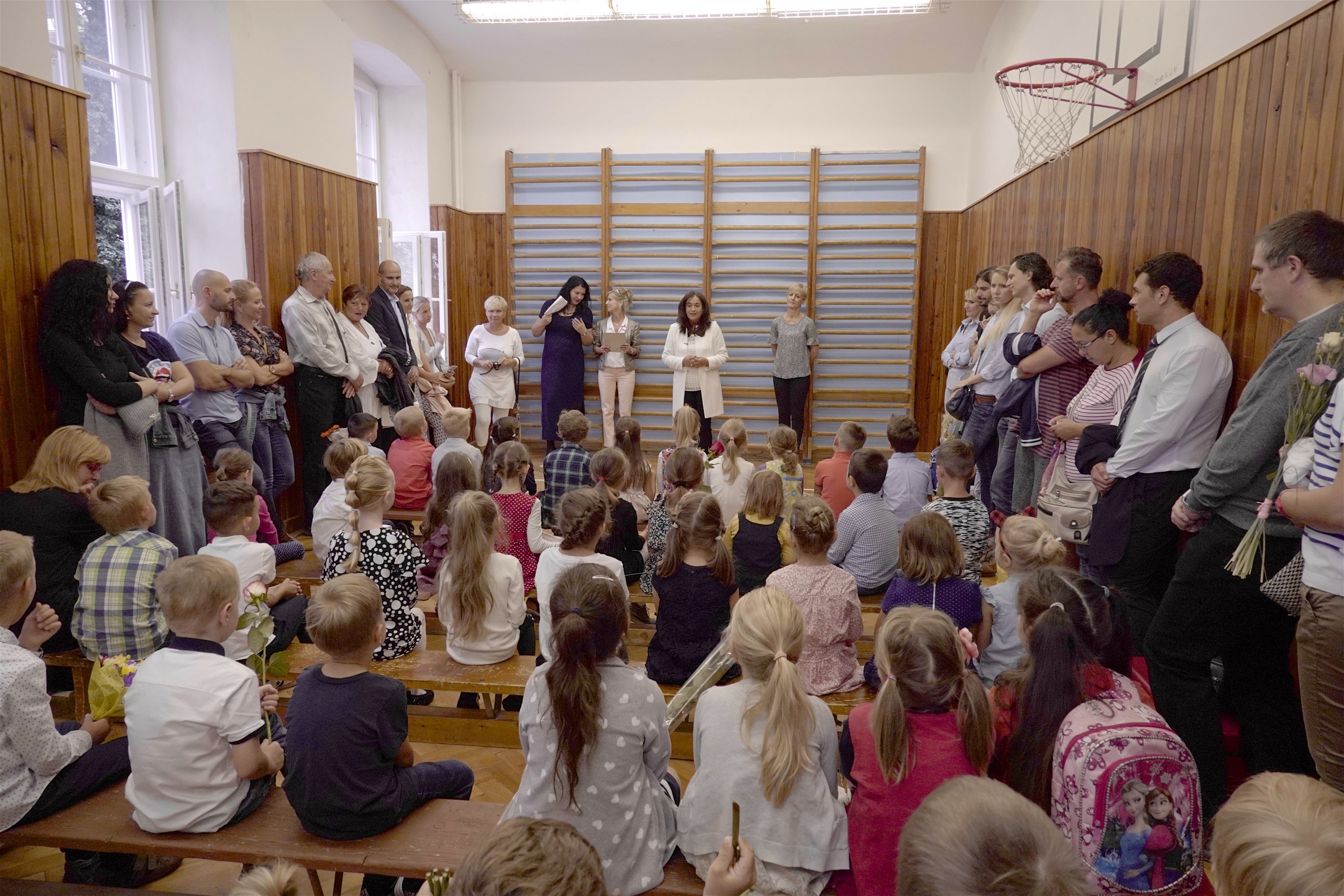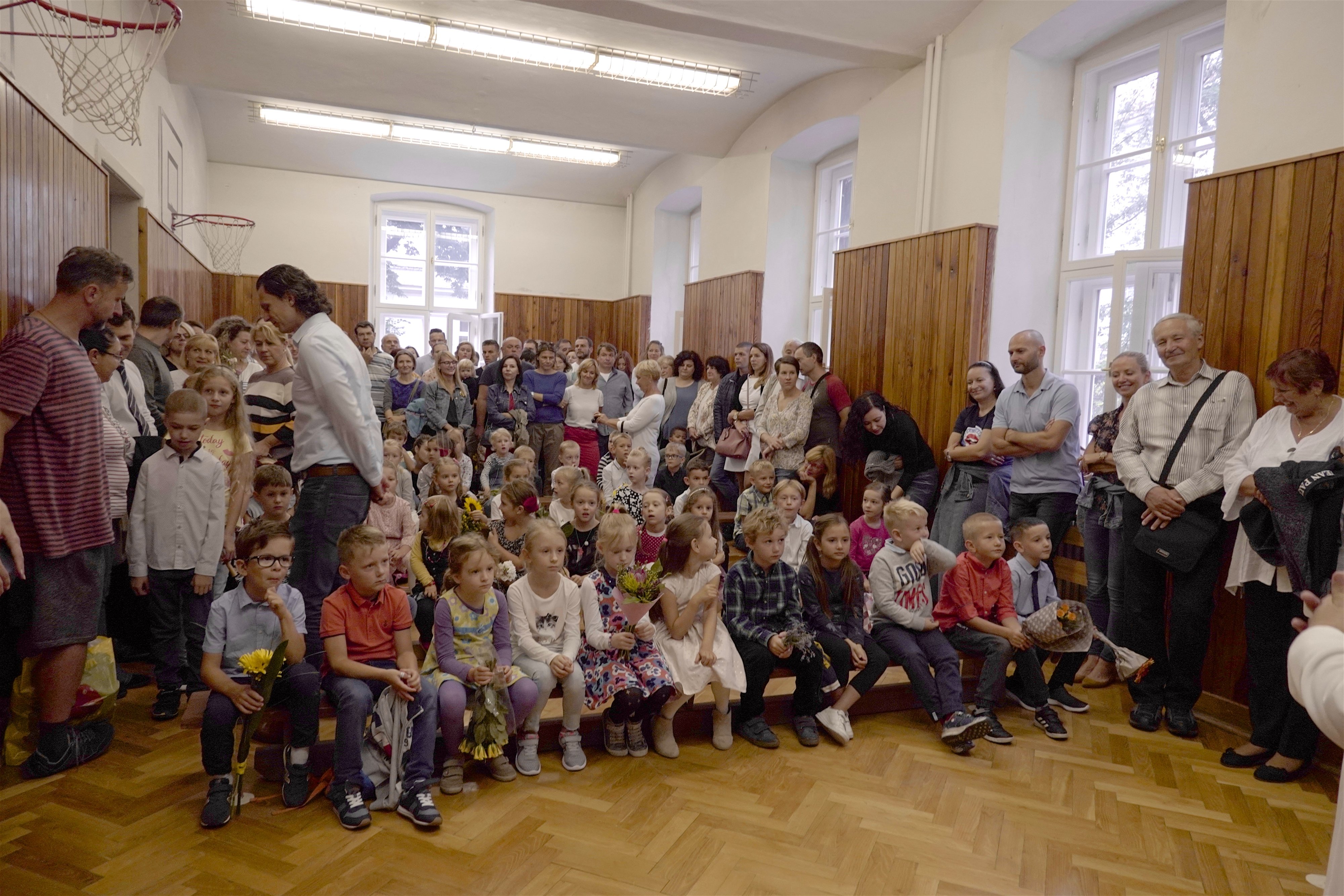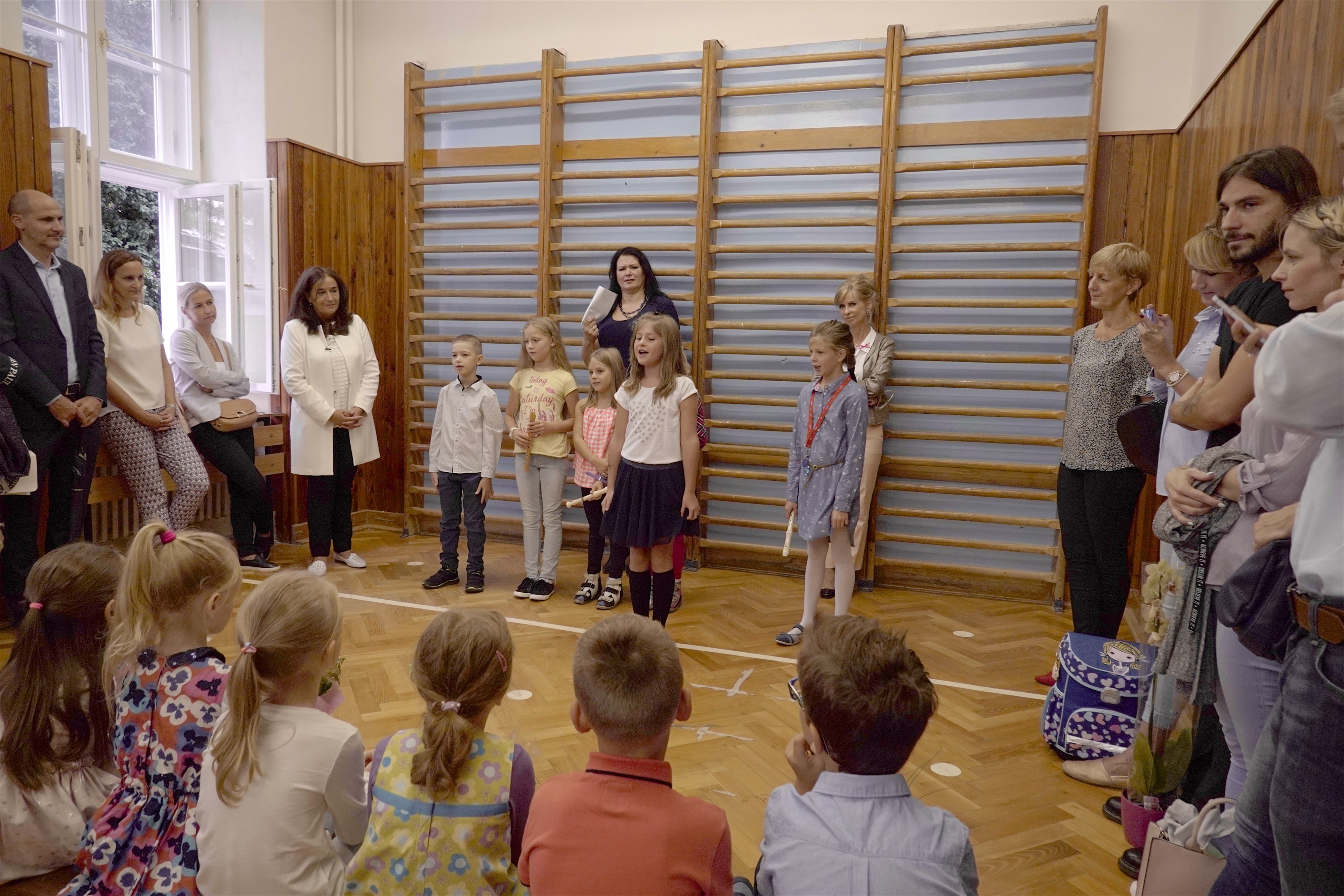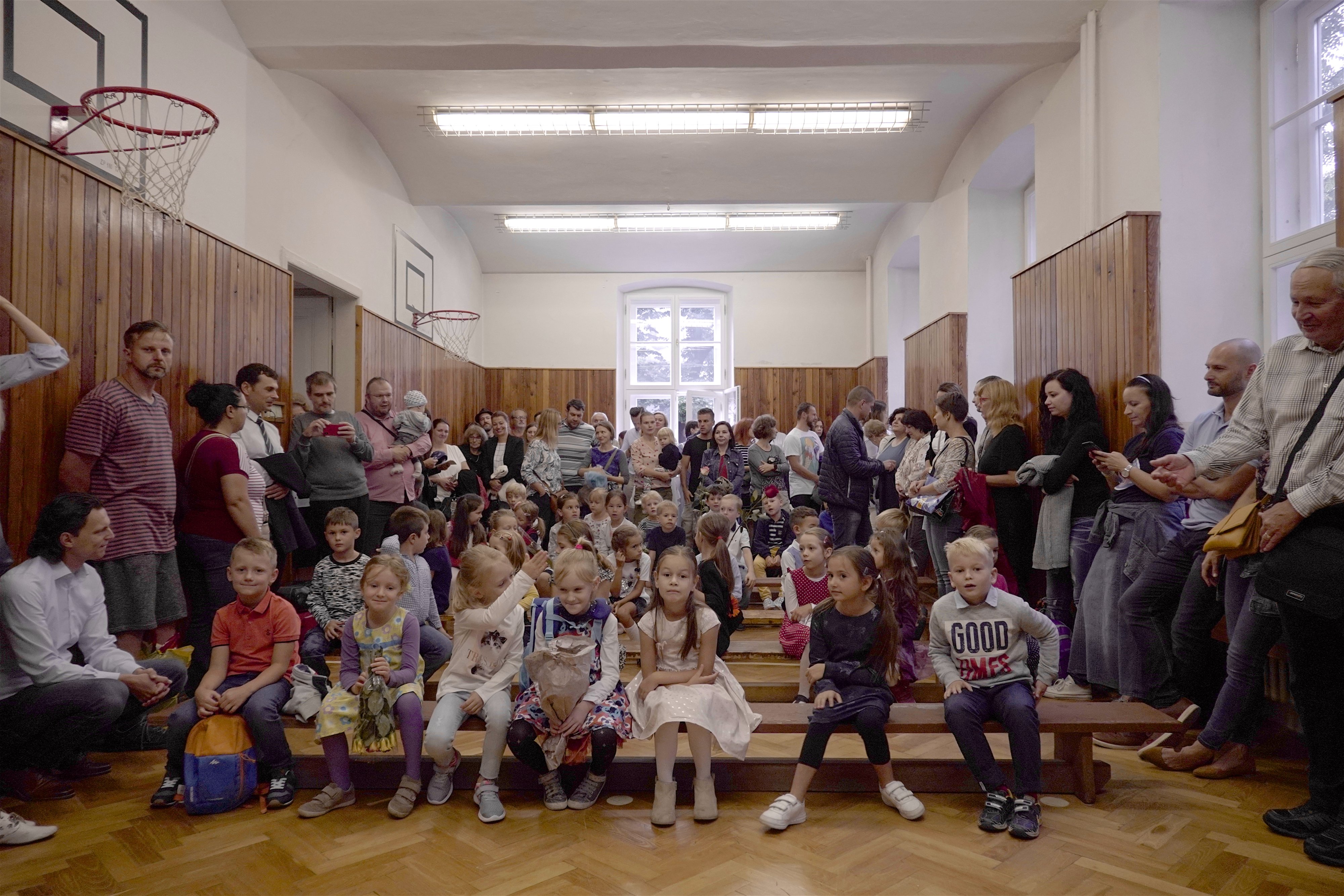 Starší kamaráti ich potešili pekným kultúrnym programom. Po slávnostnom príhovore pani riaditeľky Hessovej deti s rodičmi odišli so svojou novou pani učiteľkou do slávnostne vyzdobených tried, aby sa zoznámili s novým prostredím. Čakali ich tam pekné darčeky a nové učebnice. Našim milým prváčikom želáme, aby ich tváričky aj naďalej zdobil pekný úsmev a želáme im veľa úspechov.