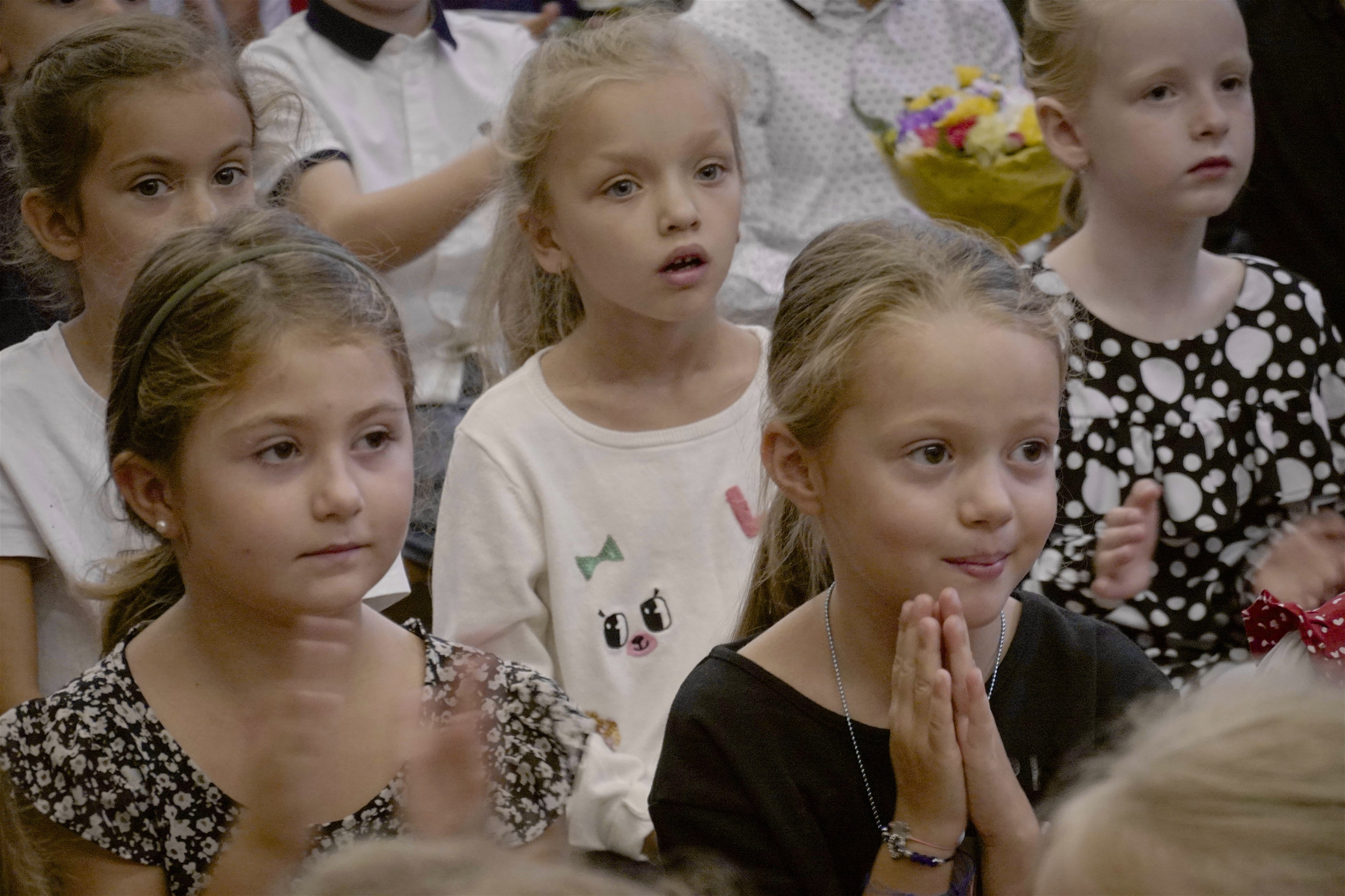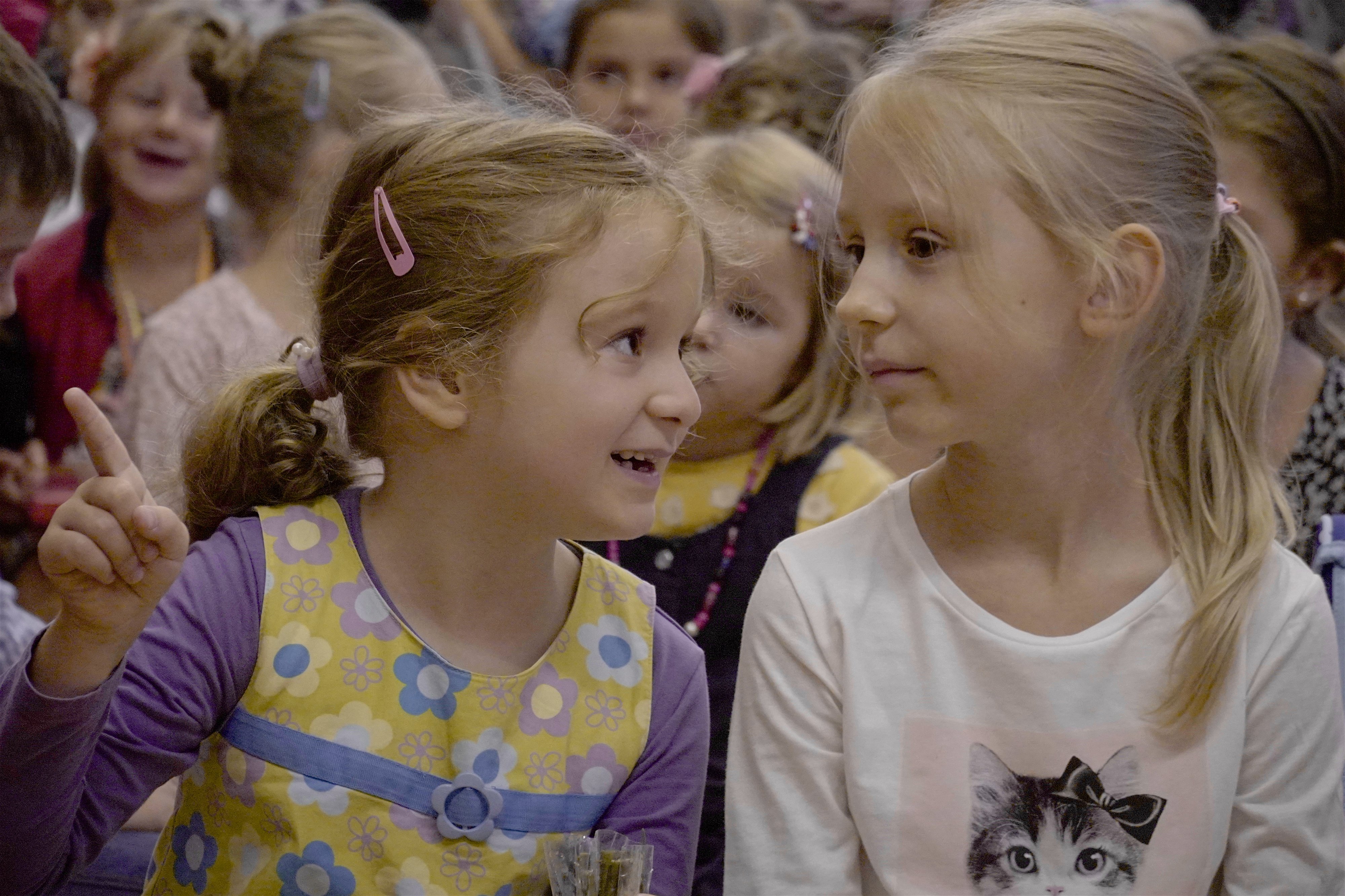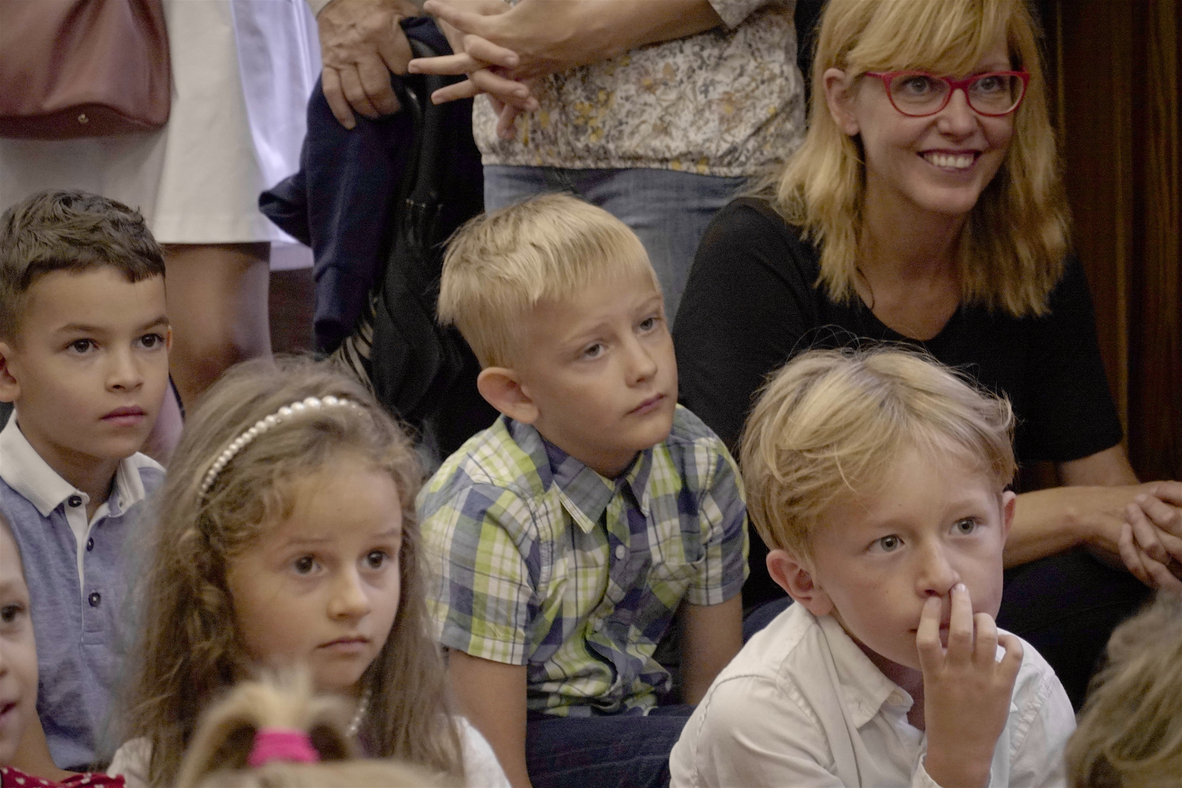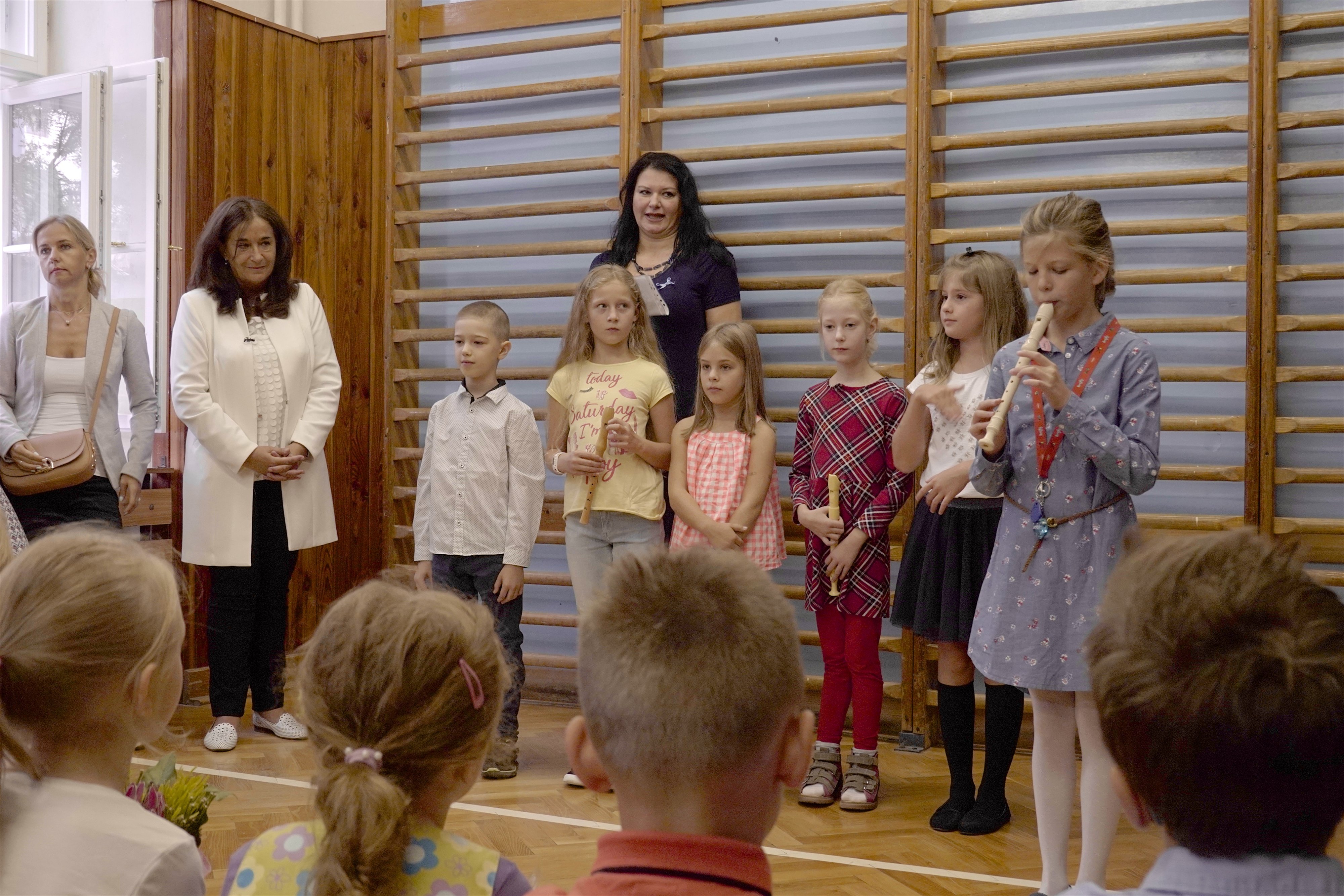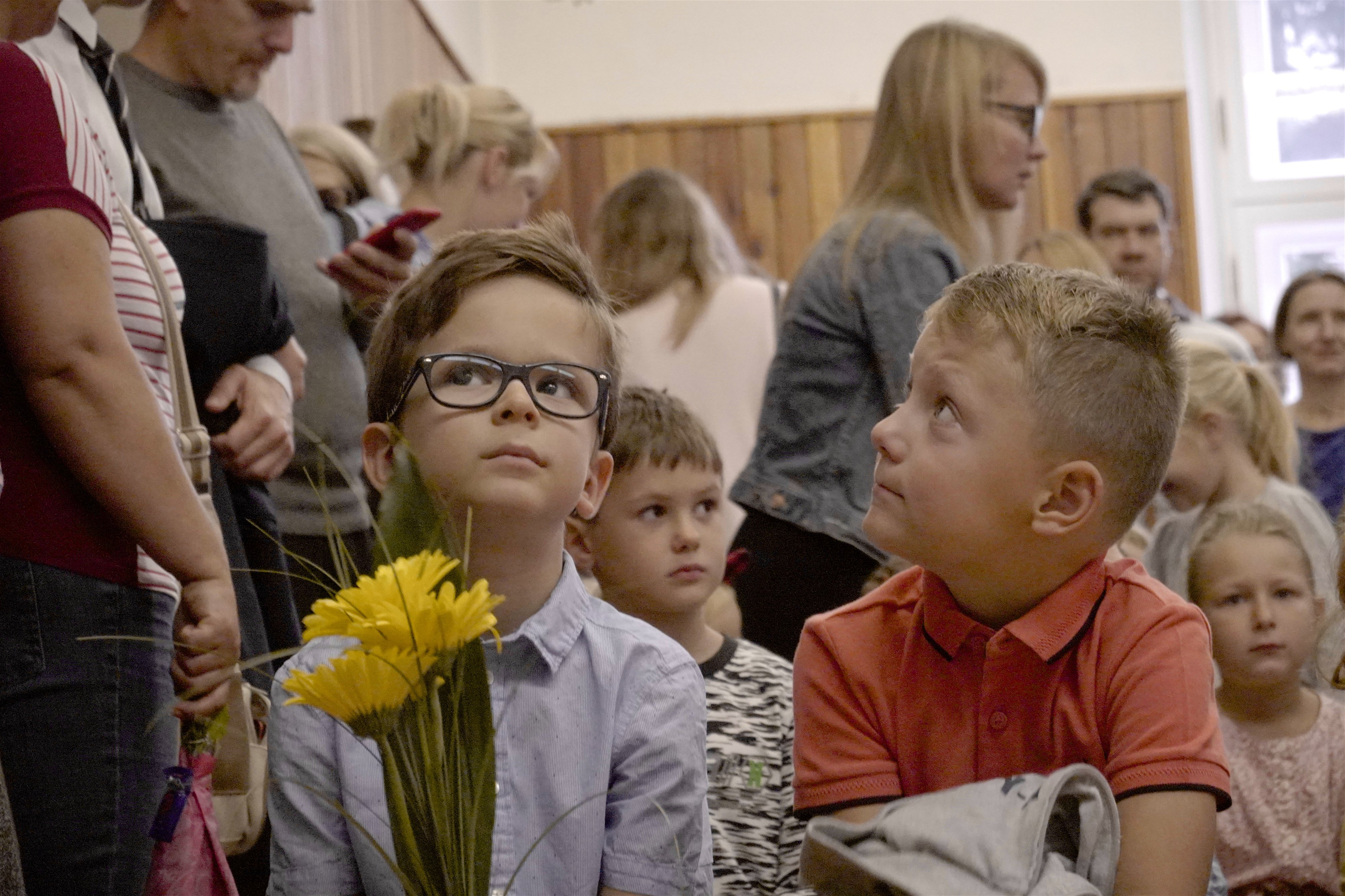Starší kamaráti ich potešili pekným kultúrnym programom. Po slávnostnom príhovore pani riaditeľky Hessovej deti s rodičmi odišli so svojou novou pani učiteľkou do slávnostne vyzdobených tried, aby sa zoznámili s novým prostredím. Čakali ich tam pekné darčeky a nové učebnice. Našim milým prváčikom želáme, aby ich tváričky aj naďalej zdobil pekný úsmev a želáme im veľa úspechov.