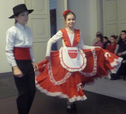 O mimoriadne pestrý program sa postarala tanečná formácia Andalucia, ktorá sa zameriava na španielske tradičné tance. Pre našich žiakov bolo zaujímavé aj to, že členmi tohto súboru sú aj dvaja ich spolužiaci – Matúš Orel z V.B a Ivanka Macková z IX.B, ktorí sa predviedli spolu s ostatnými účinkujúcimi. Piatakom sa koncert veľmi páčil, niektorí si dokonca vyskúšali základné kroky flamenca priamo na parkete.