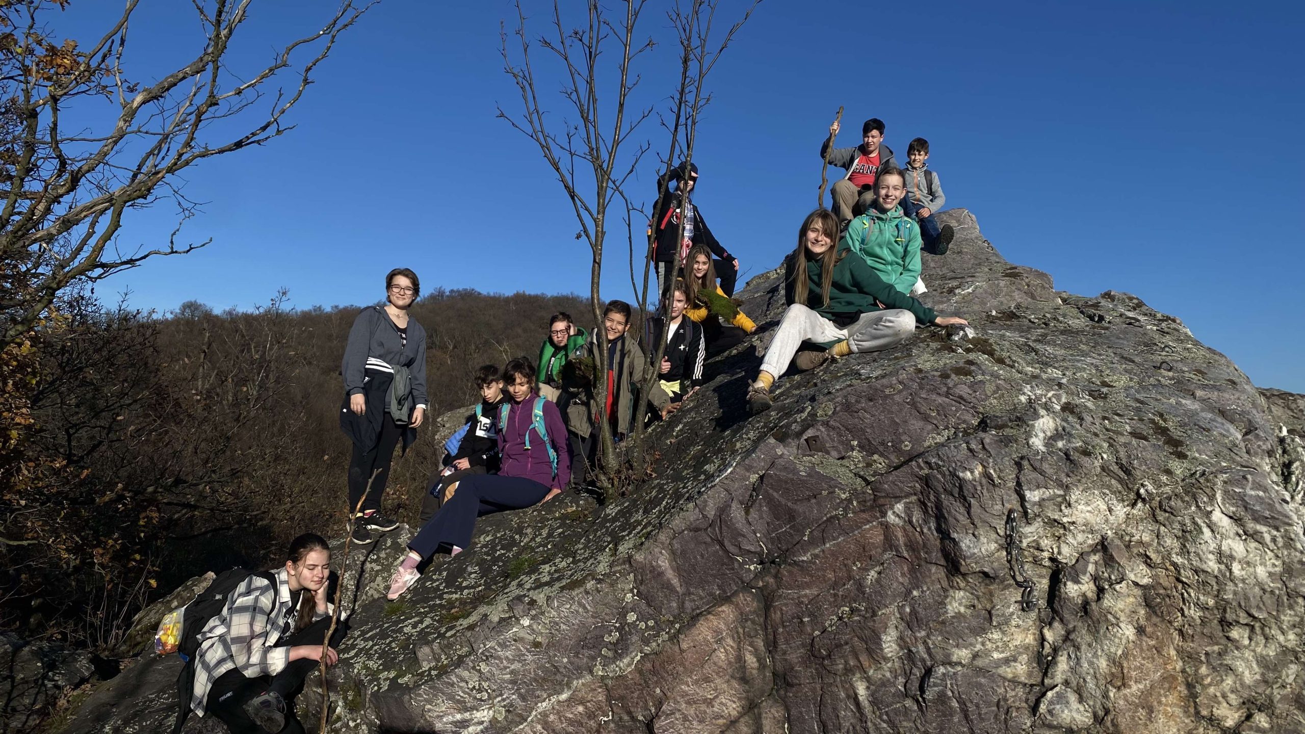 V novembri sme štartovali v obci Dubová, z ktorej sme po značkovanom turistickom chodníku vystúpili na 564 metrov vysoký vrch Kukla. Rozhľadňa, ktorá sa tu v minulosti nachádzala, bola z dôvodu havarijného stavu v januári tohto roku odstránená. V nádhernom slnečnom novembrovom počasí sme si vychutnali možnosť opekania na obrovskom ohnisku na hrebeni Kukly. Podľa povesti tu mal stáť hrad Červený Kameň, ale duchovia, ktorí s týmto miestom nesúhlasili, preniesli rozostavený hrad na jeho dnešné miesto. Z Kukly sme pokračovali k mohutným skalným útvarom s rozprávkovými názvami – Čertove zuby a Medvedia skala. Po ich prehliadke sme po 12 km dorazili do cieľa nášho výletu – mesta Modry.