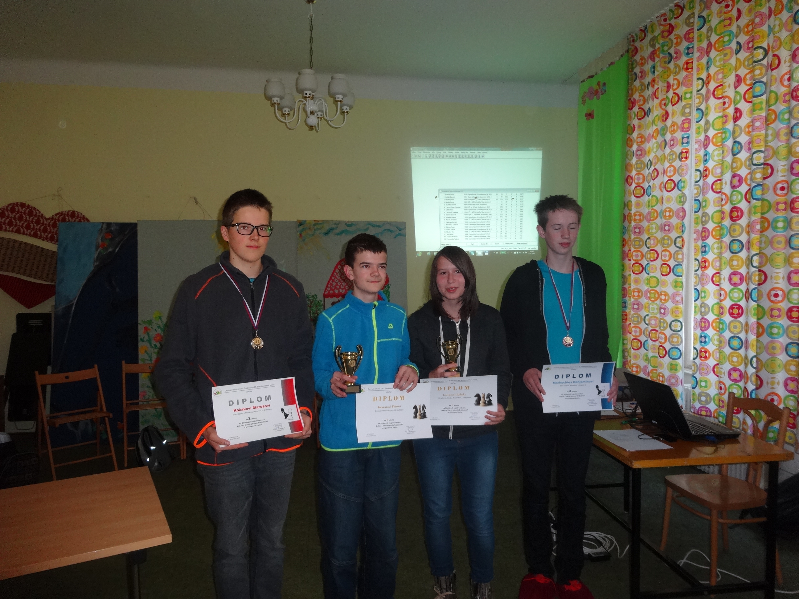 Školu reprezentovali: Rebeka Lacinová, Yury Maslov, Pavol Novák a najmladší člen družstva Jaroslav Novák. Rebeka Lacinová získala 1.miesto v kategórii žiačok a Pavol Novák obsadil pekné 4. miesto. Naša škola získala 1. miesto v obvode a Rebeka Lacinová postúpila do krajského kola.