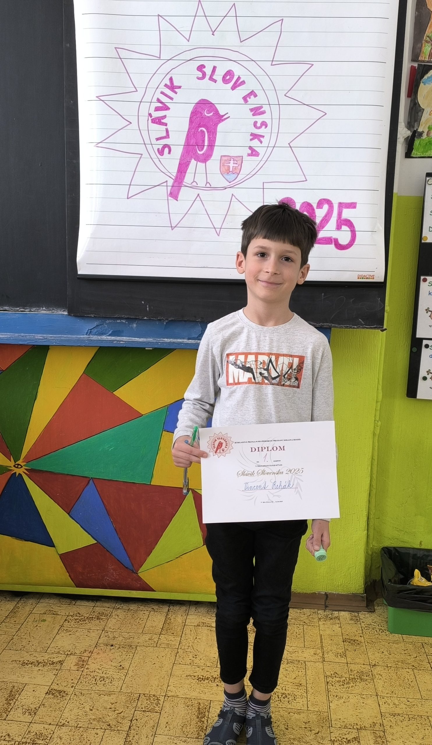 V tomto roku sa koná už 33. ročník speváckej súťaže Slávik Slovenska. Na prvom stupni našej školy na ňom zúčastnilo 13 detí z prvého, druhého a tretieho ročníka. Všetci súťažili v I. kategórii. Každý si pripravil jednu pieseň z aktuálneho spevníka a jednu ľubovoľnú ľudovú pieseň. Kvalita súťažiacich bola v tomto roku veľmi vysoká a porota to pri výbere víťazov nemala vôbec jednoduché. Preto sa rozhodli na druhom a treťom mieste oceniť hneď po troch súťažiacich. Víťaz bude našu školu reprezentovať na obvodnom kole, ktorá sa koná 5. mája 2025 v ZUŠ J. Kowalského v Bratislave.