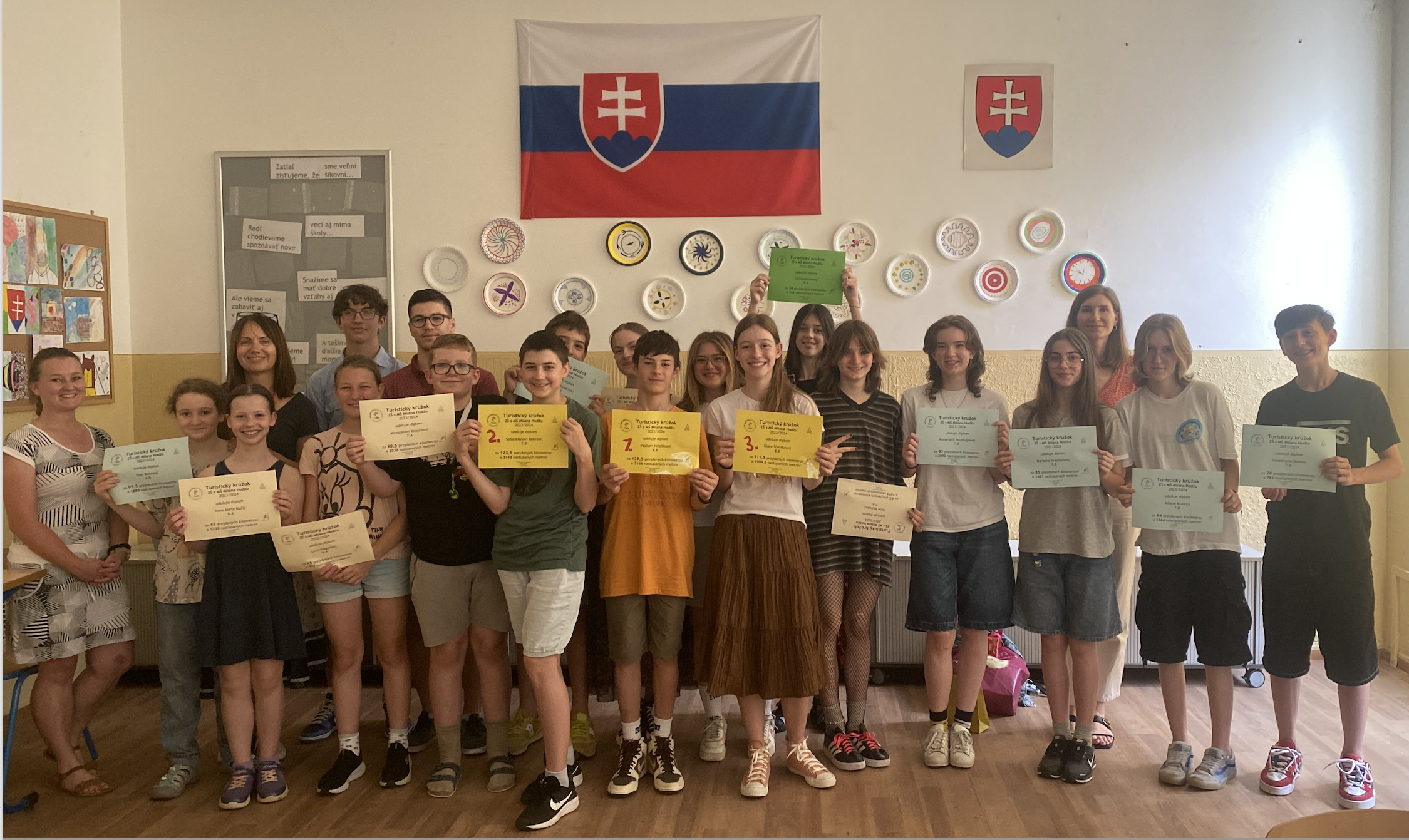 Pospomínali sme na všetky krásne výlety, popozerali fotky a každý člen dostal diplom s vyčíslením počtu kilometrov, ktoré počas školského roka prešiel a metrov, ktoré nastúpal.