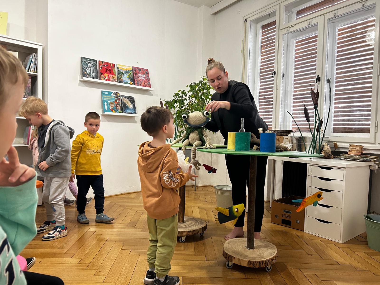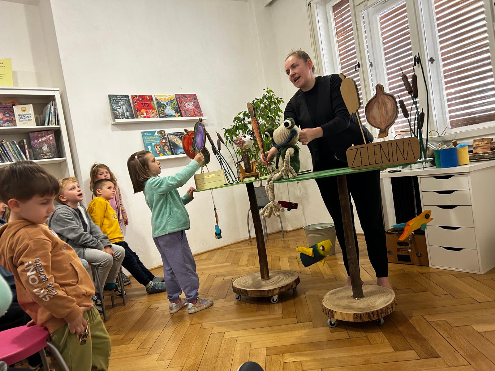 Deti z triedy Sovičiek navštívili Staromestskú knižnicu, kde si pozreli poučne a humorne ladenú bábkovú putovačku s pesničkami od Arnolda Lobela Kvak a Čľup – Stratený gombík. Rozprávka je príbehom o priateľstve zvierat. Jednoduchým spôsobom poukazuje na hodnotu priateľstva a nemateriálnych vecí.