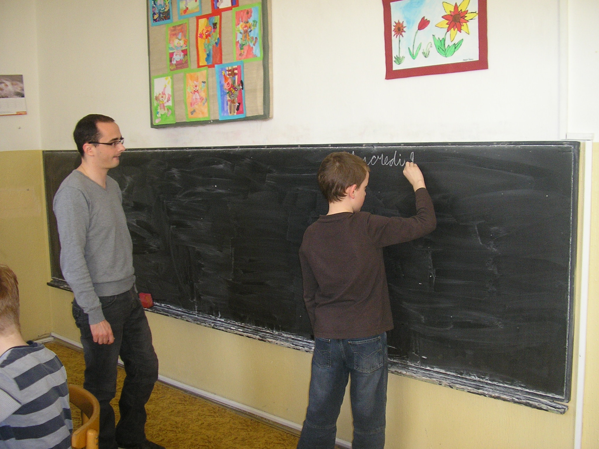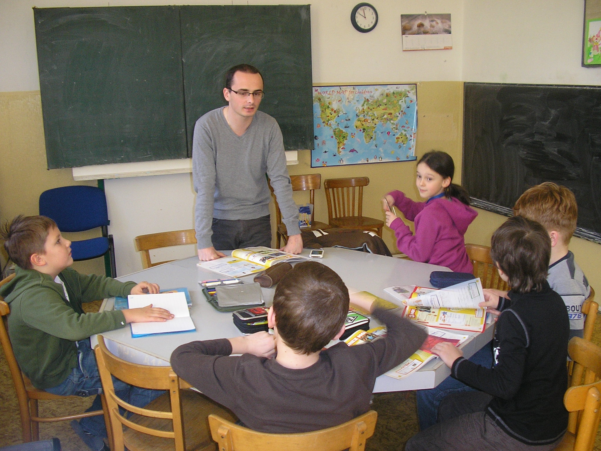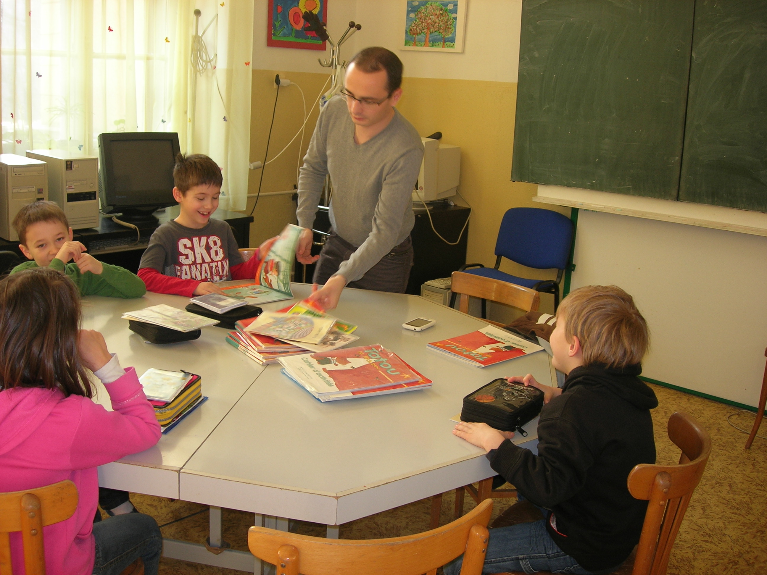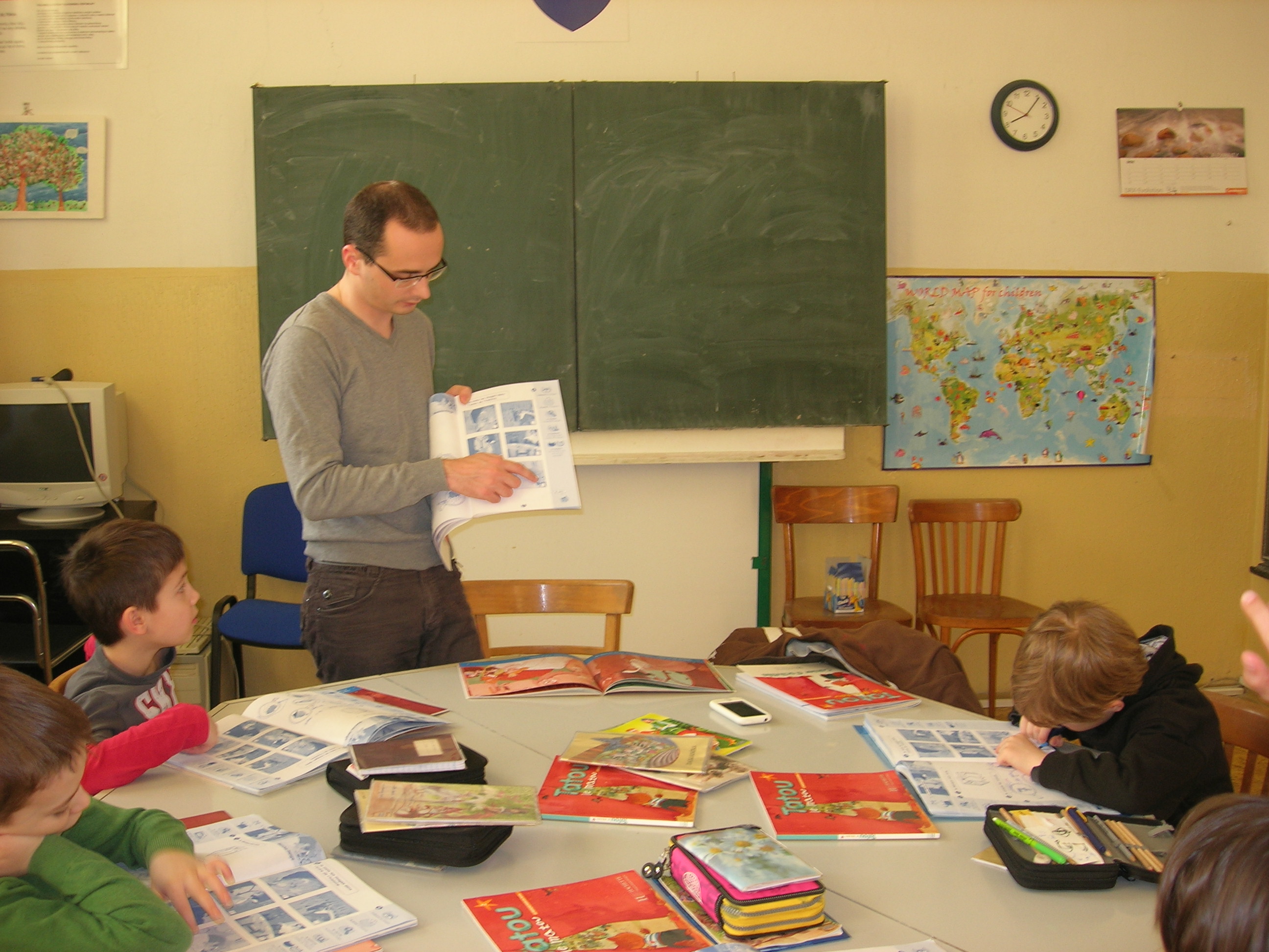 Jérémy je francúzsky študent, študuje na univerzite v Montpellier, je budúci učiteľ pre 3 až 11-ročné deti. Počas dvoch týždňov odučil takmer 30 hodín francúzskeho jazyka na prvom a druhom stupni našej školy. Na úvodných hodinách mali deti možnosť klásť mu otázky. Dozvedeli sa tak o zvykoch a sviatkoch, o tradičných jedlách či o školskom systéme vo Francúzsku. Hneď si viac začali pochvaľovať slovenské školy, keď zistili, že vo Francúzsku sa vyučuje do neskorých popoludňajšich hodín a starší žiaci sú v škole aj v sobotu doobeda. Na ďalších hodinách pokračovali v preberaní učiva alebo nacvičovali modelové situácie v obchode. Jérémyho veľmi zaujímalo, ako sa na Slovensku vyučuje, aké učebnice používame. Bol sa pozrieť aj na hodiny dejepisu a slovenského jazyka. Po návrate do Francúzska nám napísal e-mail. Všetkých pozdravuje a pekne ďakuje za príjemné prijatie. Dúfa, že žiakov jeho prítomnosť motivovala v ďalšom učení. Chcel by sa o pár rokov vrátiť, aby zistil aké pokroky žiaci dosiahli. Takže francúzštinári, snažte sa!