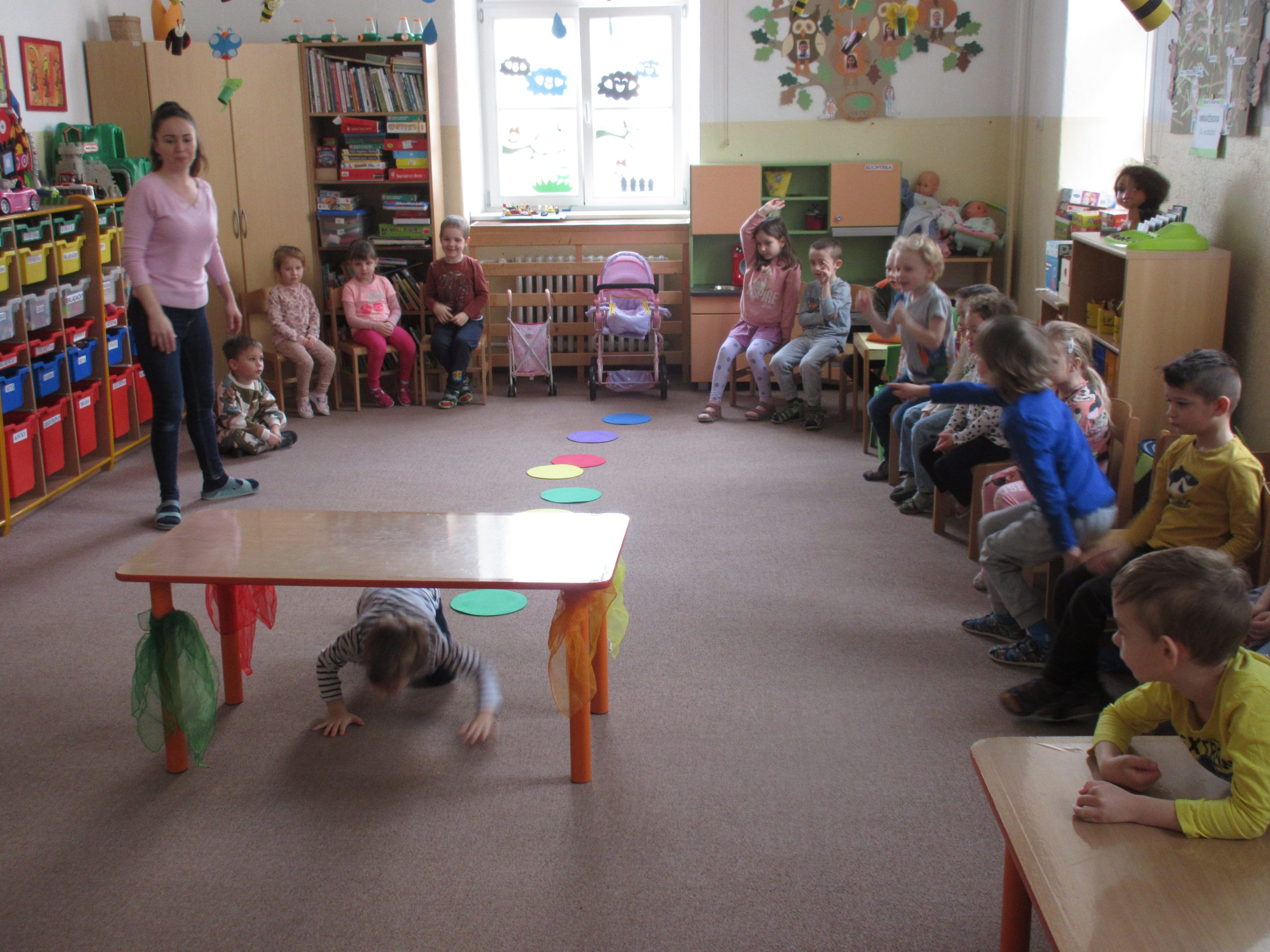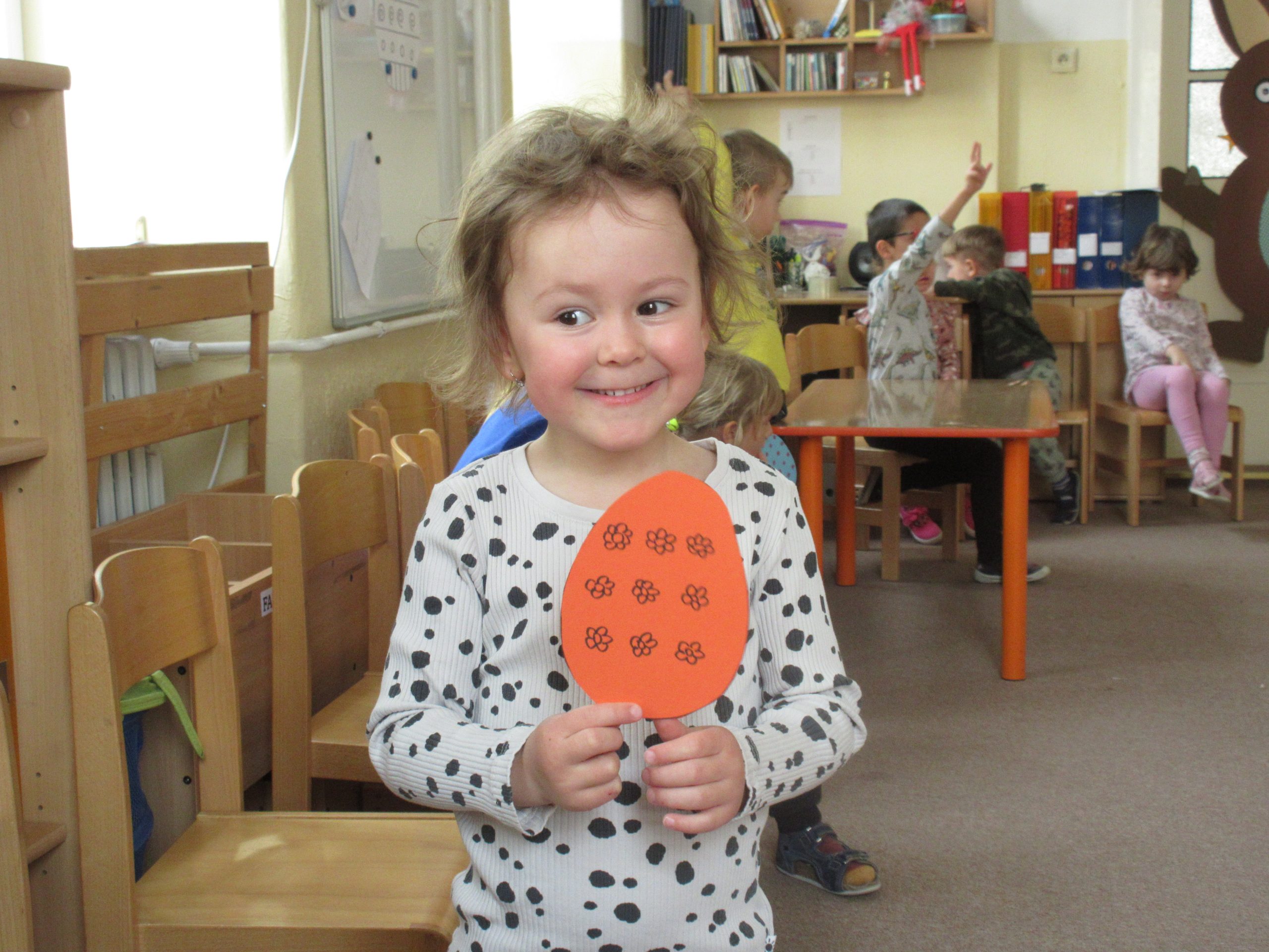 Posledný deň pred veľkonočnými prázdninami čakalo na naše Žabky a Sovičky veľkonočné prekvapenie, počas ktorého s pani učiteľkou Majkou pomohli zajačikovi s hľadaním maľovaných vajíčok. Ešte predtým však bolo treba zdolať prekážkovú dráhu a vybrať si vajíčko, ktoré budú hľadať. Na záver ich zajačik odmenil sladkou čokoládovou odmenou