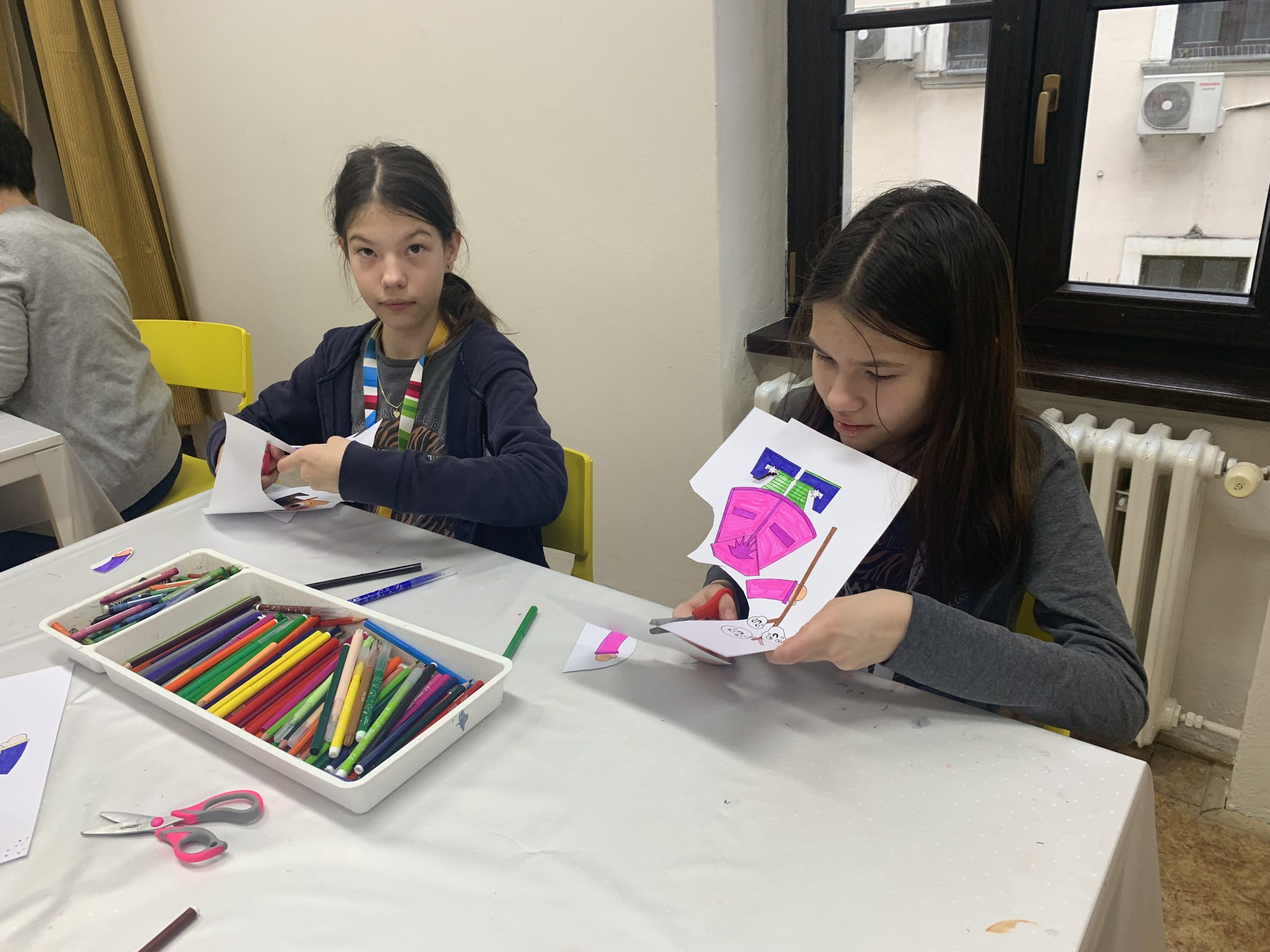 Fašiangové obdobie sme so štvrtákmi stihli vyplniť zábavným workshopom plným stríg a mágie v Bibiane. Podľa knižky Hojdali sa ježibaby od Jozefa Moravčíka si deti pod vedením ilustrátorky knižky Hedvigy Gutierrez vyrobili vlastné pohyblivé ježibaby, ktoré si zatancovali na stoloch plných pasteliek, fixiek, lepidiel a farebných papierov.
