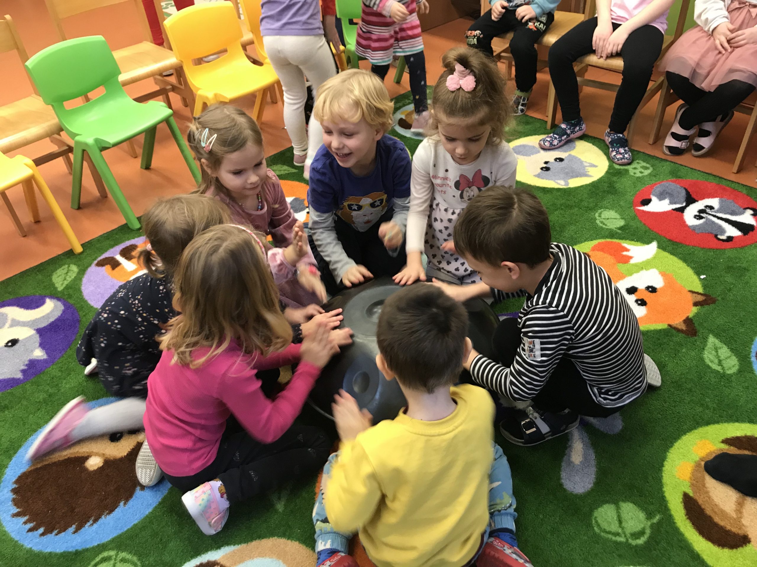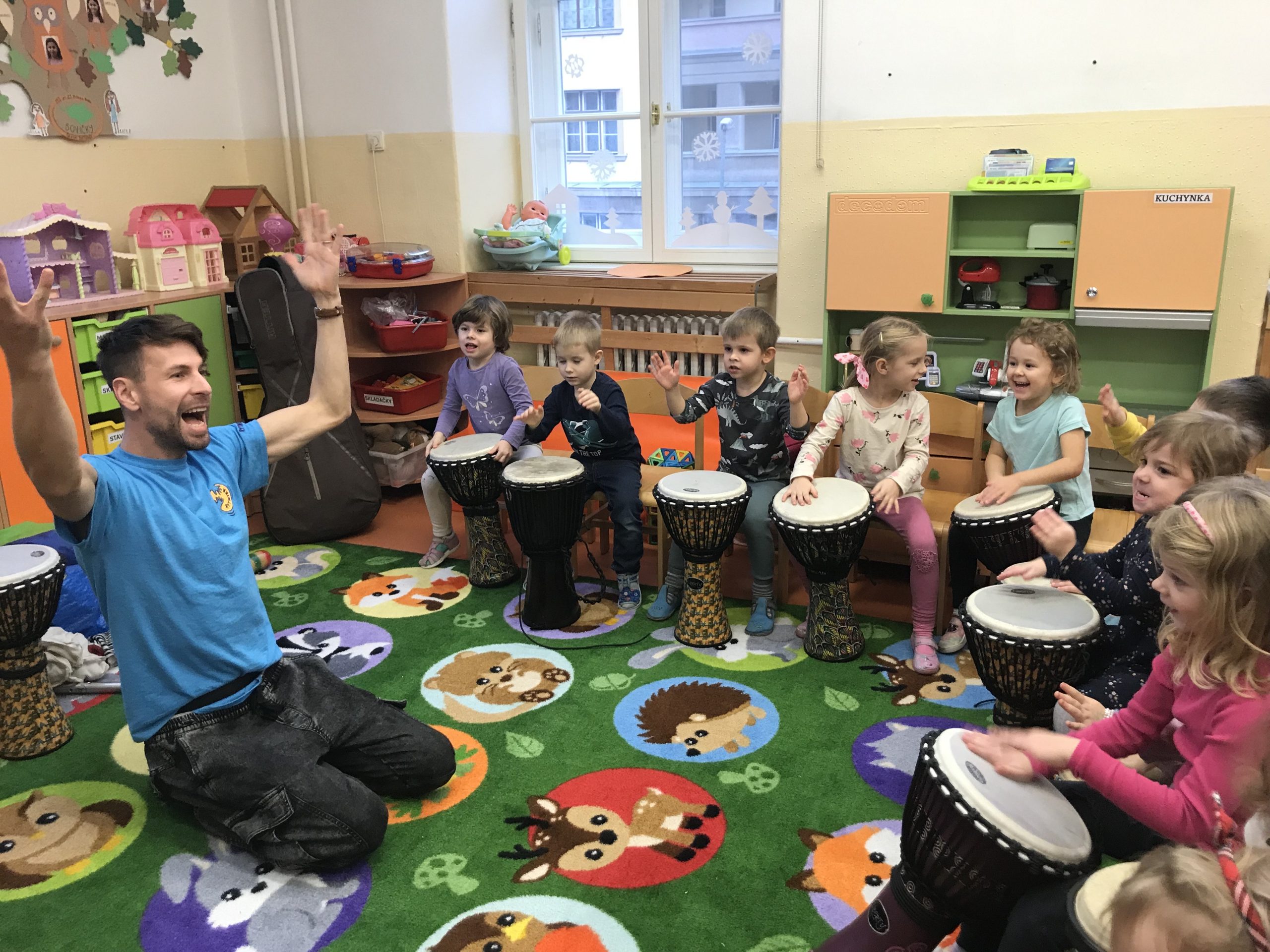 V poslednom týždni pred Vianocami k nám opäť zavítal pán Janko Boldiš z hudobného zoskupenia Rytmika. Deti zoznámil so zebrou Irmou, s ktorou spoznávali netradičné hudobné nástroje, ale si tiež pripomenuli, ktorý hudobný nástroj majú stále so sebou. A čo bolo pre deti najväčším zážitkom? To, že všetko sa dialo prostredníctvom ich vlastnej skúsenosti. Z triedy sa tak všade navôkol ozýval jeden veľký koncert. Už teraz sa tešíme na ďalšie takéto hudobné stretnutie!